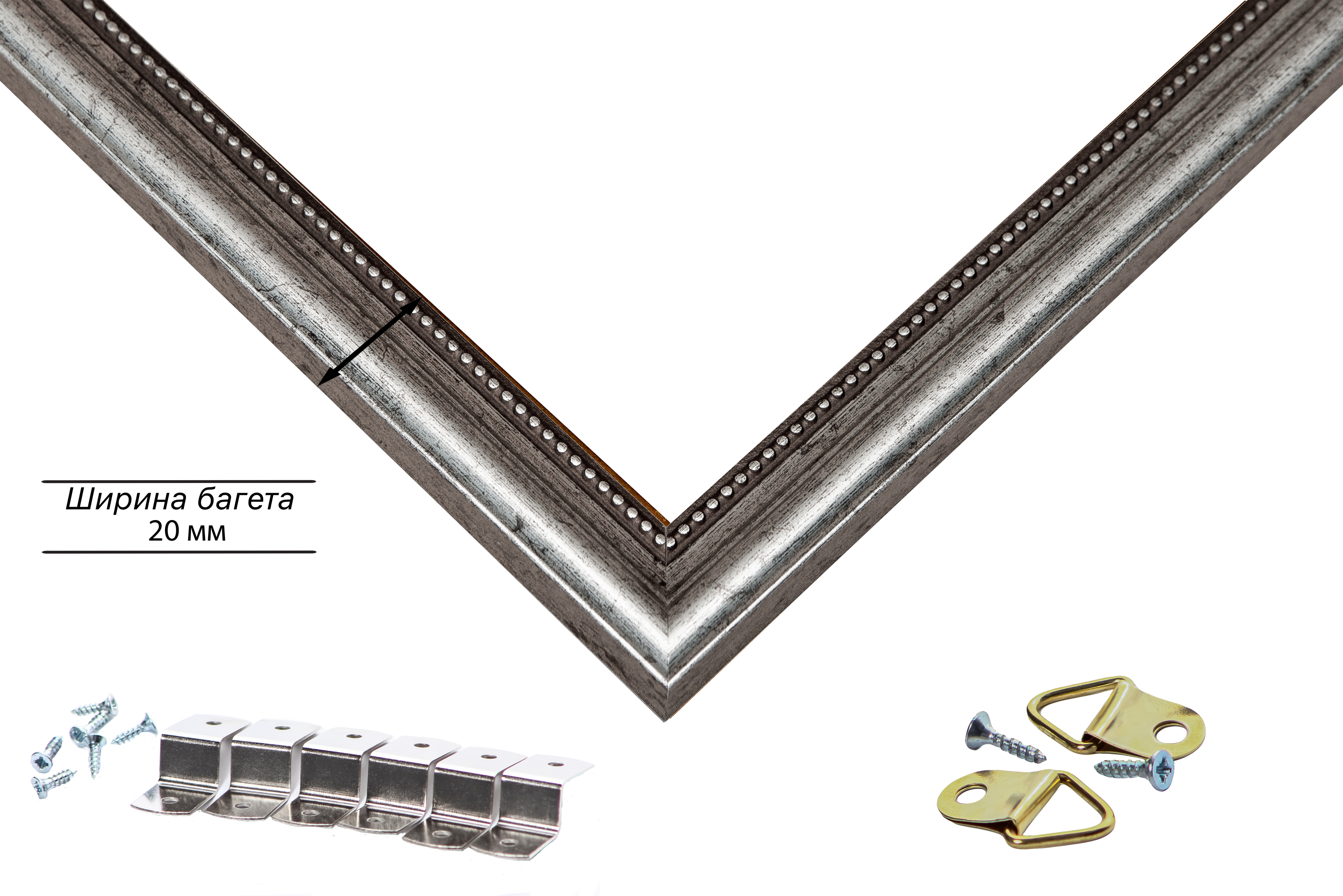 Пластиковая рама 35x40 без стекла и задника Пластиковая рама без стекла и задника изготовлена из безопасного и экологически чистого первичного полистирола высшей категории. Производитель: “ВсеПодрамники”. Для удобства установки к стандартному размеру добавлено 4 мм (по 2 мм с каждой стороны), чтобы ваше изделие легко поместилось в раму. 1. Основные характеристики: - Размеры рамки: 35x40 (по размеру помещаемого изображения) - Габариты изделия: 37.8x42.8 см. - Цвет: серебристый - Профиль: классический - Сечение рамы: 19x20 мм - Ширина четверти: 7 мм - Высота четверти: 10 мм 2. Комплектация: - Подвесная пластина – 2 шт. - Прижимы для подрамника - Винты 3. Назначение: - Подходит для оформления: • Картин, включая картины по номерам • Алмазных мозаик и вышивок крестом • Постеров, фотографий, икон • Паспарту, зеркал • Вышивки бисером и алмазной мозаики • Медалей, орденов, спортивных наград • Старинных часов, ключей, монет или украшений - Используется как настенная или настольная фоторамка (нет подставки) 4. Преимущества: - Универсальность: квадратные и прямоугольные форматы, размеры от 10х10 до 100х100 см - Удобство: можно повесить горизонтально или вертикально - Широкий выбор: разные профили, расцветки, с опцией со стеклом или без - Идеальный подарок: для мамы, папы, бабушки, дедушки, друзей, коллег на день рождения, Новый год, 8 марта, 23 февраля, свадьбу, новоселье или любой другой праздник 5. Применение в интерьере: - Идеально для алмазной вышивки, мозаики, картин на подрамнике - Украшение дома: подходит для изображений цветов, живописи, портретов, натюрмортов, городских пейзажей, природы 6. Производство: - Страна: Россия, Санкт-Петербург - Качество: высококачественные материалы с вниманием к деталям