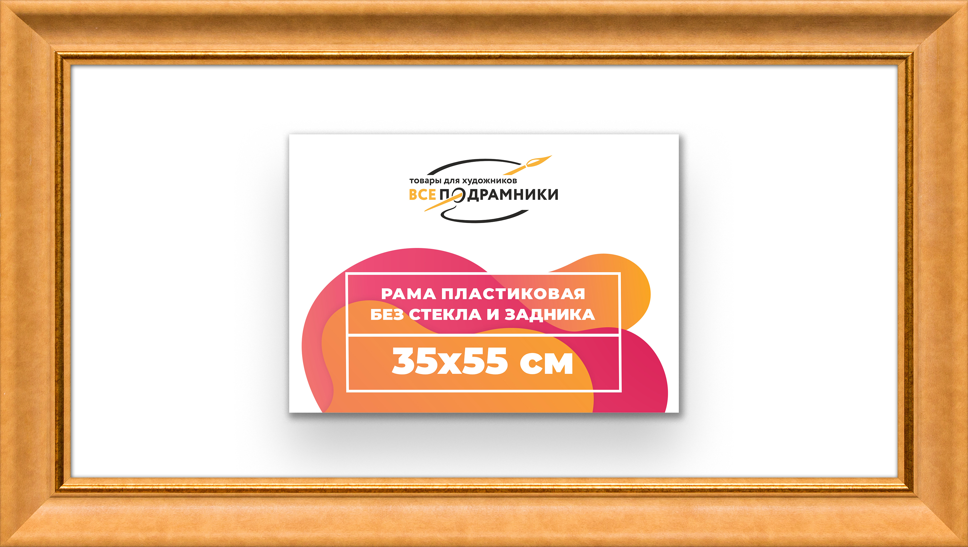 Пластиковая рама 35x55 без стекла и задника Пластиковая рама без стекла и задника изготовлена из безопасного и экологически чистого первичного полистирола высшей категории. Производитель: “ВсеПодрамники”. Для удобства установки к стандартному размеру добавлено 4 мм (по 2 мм с каждой стороны), чтобы ваше изделие легко поместилось в раму. 1. Основные характеристики: - Размеры рамки: 35x55 (по размеру помещаемого изображения) - Габариты изделия: 45.0x65.0 см. - Цвет: кремовый - Профиль: классический - Сечение рамы: 55x35 мм - Ширина четверти: 7 мм - Высота четверти: 10 мм 2. Комплектация: - Подвесная пластина – 2 шт. - Прижимы для подрамника - Винты 3. Назначение: - Подходит для оформления: • Картин, включая картины по номерам • Алмазных мозаик и вышивок крестом • Постеров, фотографий, икон • Паспарту, зеркал • Вышивки бисером и алмазной мозаики • Медалей, орденов, спортивных наград • Старинных часов, ключей, монет или украшений - Используется как настенная или настольная фоторамка (нет подставки) 4. Преимущества: - Универсальность: квадратные и прямоугольные форматы, размеры от 10х10 до 100х100 см - Удобство: можно повесить горизонтально или вертикально - Широкий выбор: разные профили, расцветки, с опцией со стеклом или без - Идеальный подарок: для мамы, папы, бабушки, дедушки, друзей, коллег на день рождения, Новый год, 8 марта, 23 февраля, свадьбу, новоселье или любой другой праздник 5. Применение в интерьере: - Идеально для алмазной вышивки, мозаики, картин на подрамнике - Украшение дома: подходит для изображений цветов, живописи, портретов, натюрмортов, городских пейзажей, природы 6. Производство: - Страна: Россия, Санкт-Петербург - Качество: высококачественные материалы с вниманием к деталям