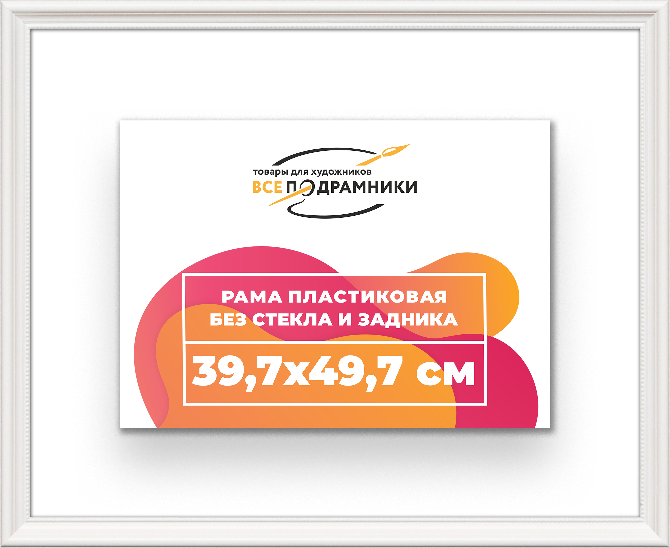 Пластиковая рама 39,7x49,7 без стекла и задника Пластиковая рама без стекла и задника изготовлена из безопасного и экологически чистого первичного полистирола высшей категории. Производитель: “ВсеПодрамники”. Для удобства установки к стандартному размеру добавлено 4 мм (по 2 мм с каждой стороны), чтобы ваше изделие легко поместилось в раму. 1. Основные характеристики: - Размеры рамки: 39,7x49,7 (по размеру помещаемого изображения) - Габариты изделия: 42.5x52.5 см. - Цвет: белый - Профиль: классический - Сечение рамы: 19x20 мм - Ширина четверти: 7 мм - Высота четверти: 10 мм 2. Комплектация: - Подвесная пластина – 2 шт. - Прижимы для подрамника - Винты 3. Назначение: - Подходит для оформления: • Картин, включая картины по номерам • Алмазных мозаик и вышивок крестом • Постеров, фотографий, икон • Паспарту, зеркал • Вышивки бисером и алмазной мозаики • Медалей, орденов, спортивных наград • Старинных часов, ключей, монет или украшений - Используется как настенная или настольная фоторамка (нет подставки) 4. Преимущества: - Универсальность: квадратные и прямоугольные форматы, размеры от 10х10 до 100х100 см - Удобство: можно повесить горизонтально или вертикально - Широкий выбор: разные профили, расцветки, с опцией со стеклом или без - Идеальный подарок: для мамы, папы, бабушки, дедушки, друзей, коллег на день рождения, Новый год, 8 марта, 23 февраля, свадьбу, новоселье или любой другой праздник 5. Применение в интерьере: - Идеально для алмазной вышивки, мозаики, картин на подрамнике - Украшение дома: подходит для изображений цветов, живописи, портретов, натюрмортов, городских пейзажей, природы 6. Производство: - Страна: Россия, Санкт-Петербург - Качество: высококачественные материалы с вниманием к деталям