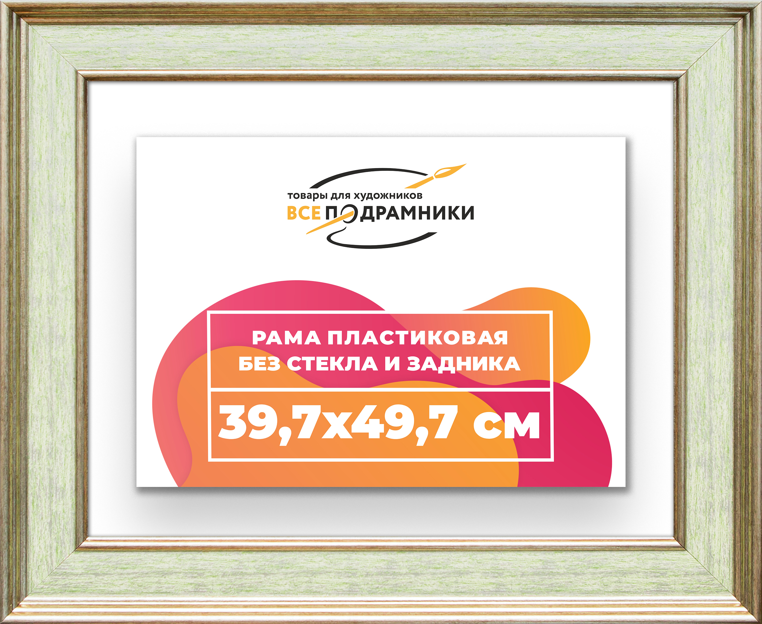 Пластиковая рама 39,7x49,7 без стекла и задника Пластиковая рама без стекла и задника изготовлена из безопасного и экологически чистого первичного полистирола высшей категории. Производитель: “ВсеПодрамники”. Для удобства установки к стандартному размеру добавлено 4 мм (по 2 мм с каждой стороны), чтобы ваше изделие легко поместилось в раму. 1. Основные характеристики: - Размеры рамки: 39,7x49,7 (по размеру помещаемого изображения) - Габариты изделия: 48.7x58.7 см. - Цвет: зеленый - Профиль: классический - Сечение рамы: 50x30 мм - Ширина четверти: 7 мм - Высота четверти: 10 мм 2. Комплектация: - Подвесная пластина – 2 шт. - Прижимы для подрамника - Винты 3. Назначение: - Подходит для оформления: • Картин, включая картины по номерам • Алмазных мозаик и вышивок крестом • Постеров, фотографий, икон • Паспарту, зеркал • Вышивки бисером и алмазной мозаики • Медалей, орденов, спортивных наград • Старинных часов, ключей, монет или украшений - Используется как настенная или настольная фоторамка (нет подставки) 4. Преимущества: - Универсальность: квадратные и прямоугольные форматы, размеры от 10х10 до 100х100 см - Удобство: можно повесить горизонтально или вертикально - Широкий выбор: разные профили, расцветки, с опцией со стеклом или без - Идеальный подарок: для мамы, папы, бабушки, дедушки, друзей, коллег на день рождения, Новый год, 8 марта, 23 февраля, свадьбу, новоселье или любой другой праздник 5. Применение в интерьере: - Идеально для алмазной вышивки, мозаики, картин на подрамнике - Украшение дома: подходит для изображений цветов, живописи, портретов, натюрмортов, городских пейзажей, природы 6. Производство: - Страна: Россия, Санкт-Петербург - Качество: высококачественные материалы с вниманием к деталям
