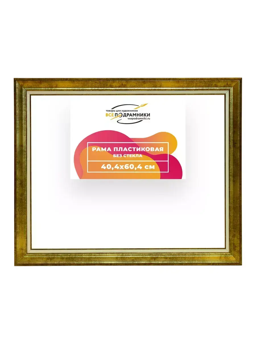 Пластиковая рама 40x60 без стекла и задника Пластиковая рама без стекла и задника изготовлена из безопасного и экологически чистого первичного полистирола высшей категории. Производитель: “ВсеПодрамники”. Для удобства установки к стандартному размеру добавлено 4 мм (по 2 мм с каждой стороны), чтобы ваше изделие легко поместилось в раму. 1. Основные характеристики: - Размеры рамки: 40x60 (по размеру помещаемого изображения) - Габариты изделия: 47.8x67.8 см. - Цвет: золотистый - Профиль: классический - Сечение рамы: 44x25 мм - Ширина четверти: 7 мм - Высота четверти: 10 мм 2. Комплектация: - Подвесная пластина – 2 шт. - Прижимы для подрамника - Винты 3. Назначение: - Подходит для оформления: • Картин, включая картины по номерам • Алмазных мозаик и вышивок крестом • Постеров, фотографий, икон • Паспарту, зеркал • Вышивки бисером и алмазной мозаики • Медалей, орденов, спортивных наград • Старинных часов, ключей, монет или украшений - Используется как настенная или настольная фоторамка (нет подставки) 4. Преимущества: - Универсальность: квадратные и прямоугольные форматы, размеры от 10х10 до 100х100 см - Удобство: можно повесить горизонтально или вертикально - Широкий выбор: разные профили, расцветки, с опцией со стеклом или без - Идеальный подарок: для мамы, папы, бабушки, дедушки, друзей, коллег на день рождения, Новый год, 8 марта, 23 февраля, свадьбу, новоселье или любой другой праздник 5. Применение в интерьере: - Идеально для алмазной вышивки, мозаики, картин на подрамнике - Украшение дома: подходит для изображений цветов, живописи, портретов, натюрмортов, городских пейзажей, природы 6. Производство: - Страна: Россия, Санкт-Петербург - Качество: высококачественные материалы с вниманием к деталям