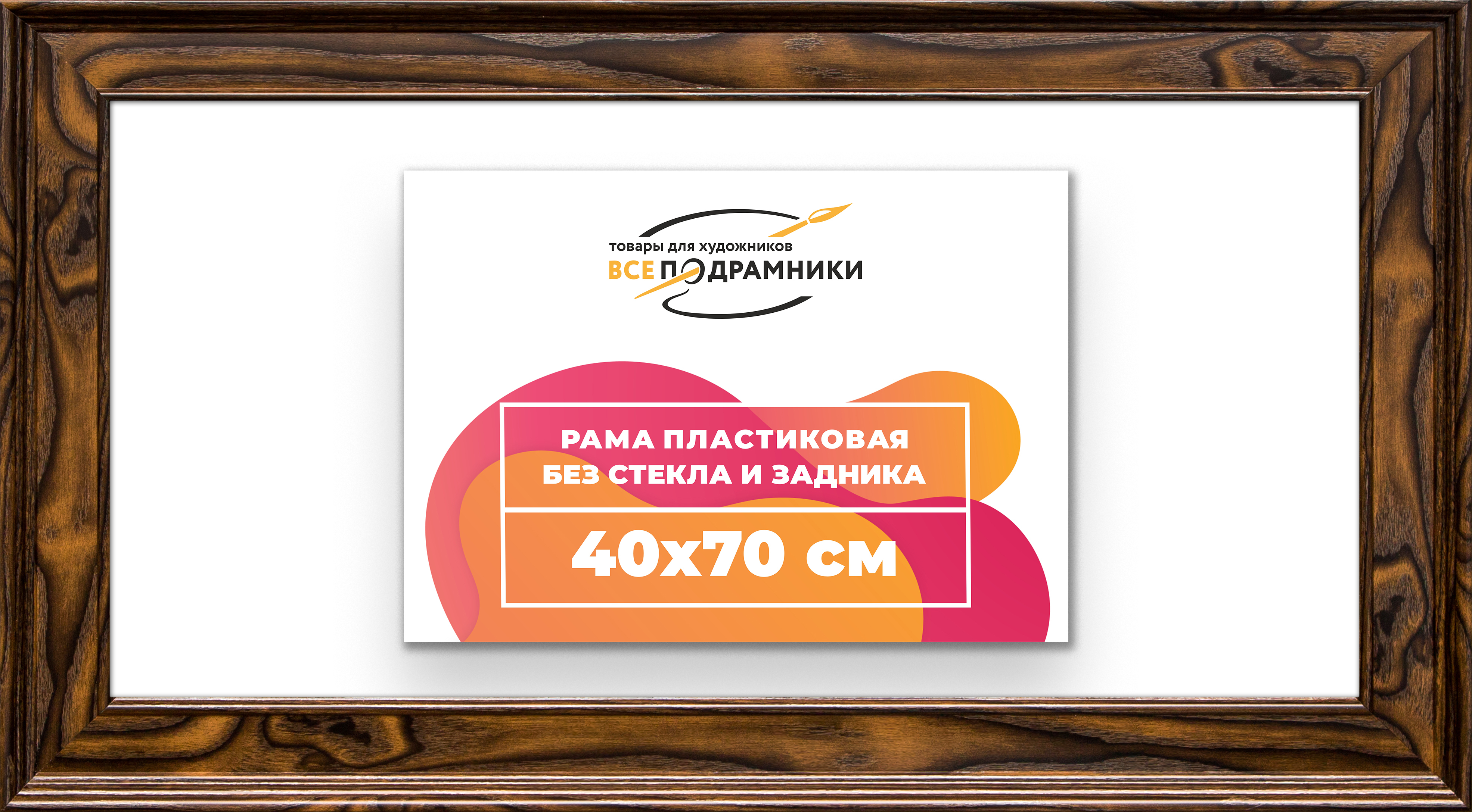 Пластиковая рама 40x70 без стекла и задника Пластиковая рама без стекла и задника изготовлена из безопасного и экологически чистого первичного полистирола высшей категории. Производитель: “ВсеПодрамники”. Для удобства установки к стандартному размеру добавлено 4 мм (по 2 мм с каждой стороны), чтобы ваше изделие легко поместилось в раму. 1. Основные характеристики: - Размеры рамки: 40x70 (по размеру помещаемого изображения) - Габариты изделия: 49.0x79.0 см. - Цвет: коричневый - Профиль: классический - Сечение рамы: 50x30 мм - Ширина четверти: 7 мм - Высота четверти: 10 мм 2. Комплектация: - Подвесная пластина – 2 шт. - Прижимы для подрамника - Винты 3. Назначение: - Подходит для оформления: • Картин, включая картины по номерам • Алмазных мозаик и вышивок крестом • Постеров, фотографий, икон • Паспарту, зеркал • Вышивки бисером и алмазной мозаики • Медалей, орденов, спортивных наград • Старинных часов, ключей, монет или украшений - Используется как настенная или настольная фоторамка (нет подставки) 4. Преимущества: - Универсальность: квадратные и прямоугольные форматы, размеры от 10х10 до 100х100 см - Удобство: можно повесить горизонтально или вертикально - Широкий выбор: разные профили, расцветки, с опцией со стеклом или без - Идеальный подарок: для мамы, папы, бабушки, дедушки, друзей, коллег на день рождения, Новый год, 8 марта, 23 февраля, свадьбу, новоселье или любой другой праздник 5. Применение в интерьере: - Идеально для алмазной вышивки, мозаики, картин на подрамнике - Украшение дома: подходит для изображений цветов, живописи, портретов, натюрмортов, городских пейзажей, природы 6. Производство: - Страна: Россия, Санкт-Петербург - Качество: высококачественные материалы с вниманием к деталям