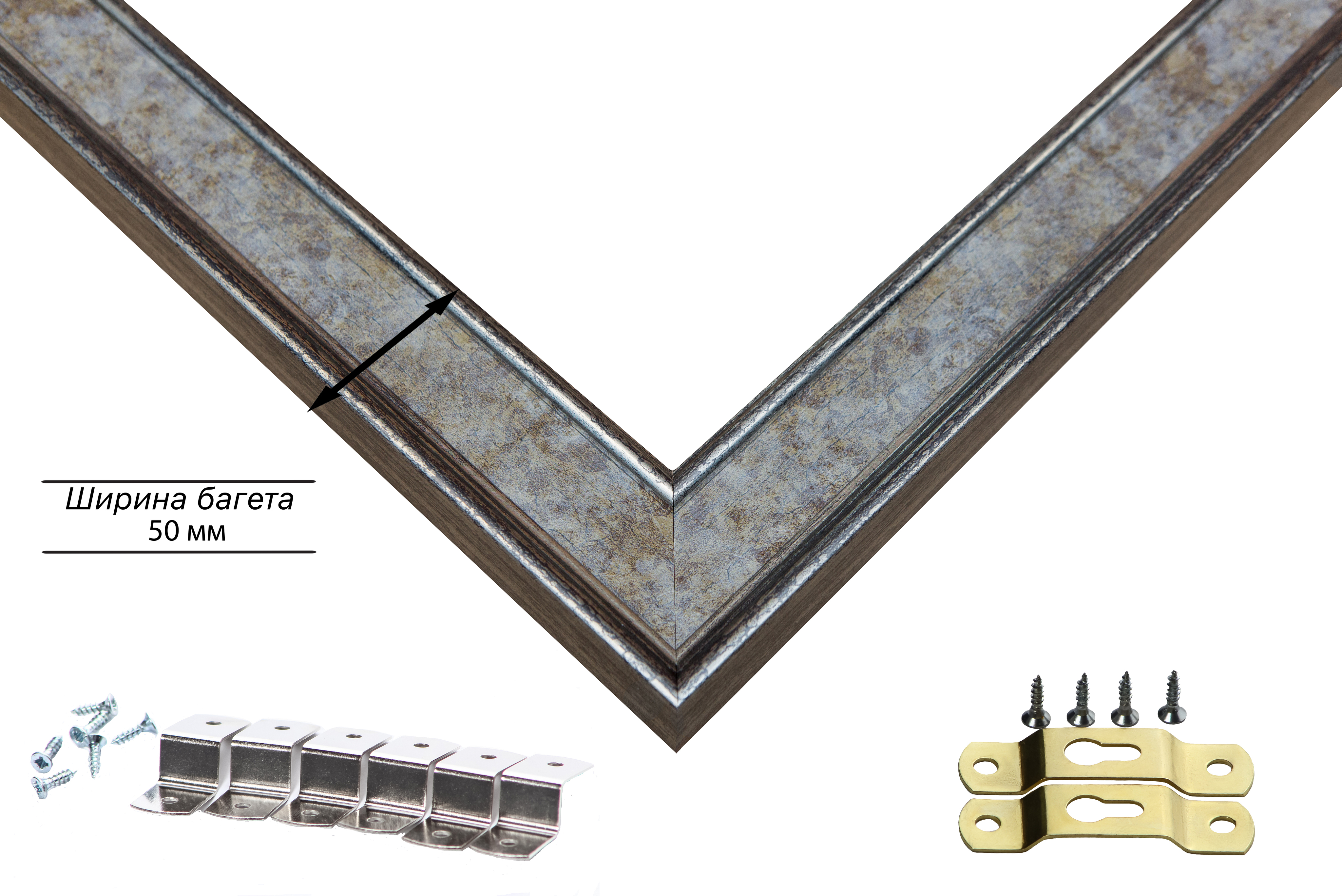 Пластиковая рама 40x75 без стекла и задника Пластиковая рама без стекла и задника изготовлена из безопасного и экологически чистого первичного полистирола высшей категории. Производитель: “ВсеПодрамники”. Для удобства установки к стандартному размеру добавлено 4 мм (по 2 мм с каждой стороны), чтобы ваше изделие легко поместилось в раму. 1. Основные характеристики: - Размеры рамки: 40x75 (по размеру помещаемого изображения) - Габариты изделия: 49.0x84.0 см. - Цвет: серебро - Профиль: классический - Сечение рамы: 50x30 мм - Ширина четверти: 7 мм - Высота четверти: 10 мм 2. Комплектация: - Подвесная пластина – 2 шт. - Прижимы для подрамника - Винты 3. Назначение: - Подходит для оформления: • Картин, включая картины по номерам • Алмазных мозаик и вышивок крестом • Постеров, фотографий, икон • Паспарту, зеркал • Вышивки бисером и алмазной мозаики • Медалей, орденов, спортивных наград • Старинных часов, ключей, монет или украшений - Используется как настенная или настольная фоторамка (нет подставки) 4. Преимущества: - Универсальность: квадратные и прямоугольные форматы, размеры от 10х10 до 100х100 см - Удобство: можно повесить горизонтально или вертикально - Широкий выбор: разные профили, расцветки, с опцией со стеклом или без - Идеальный подарок: для мамы, папы, бабушки, дедушки, друзей, коллег на день рождения, Новый год, 8 марта, 23 февраля, свадьбу, новоселье или любой другой праздник 5. Применение в интерьере: - Идеально для алмазной вышивки, мозаики, картин на подрамнике - Украшение дома: подходит для изображений цветов, живописи, портретов, натюрмортов, городских пейзажей, природы 6. Производство: - Страна: Россия, Санкт-Петербург - Качество: высококачественные материалы с вниманием к деталям
