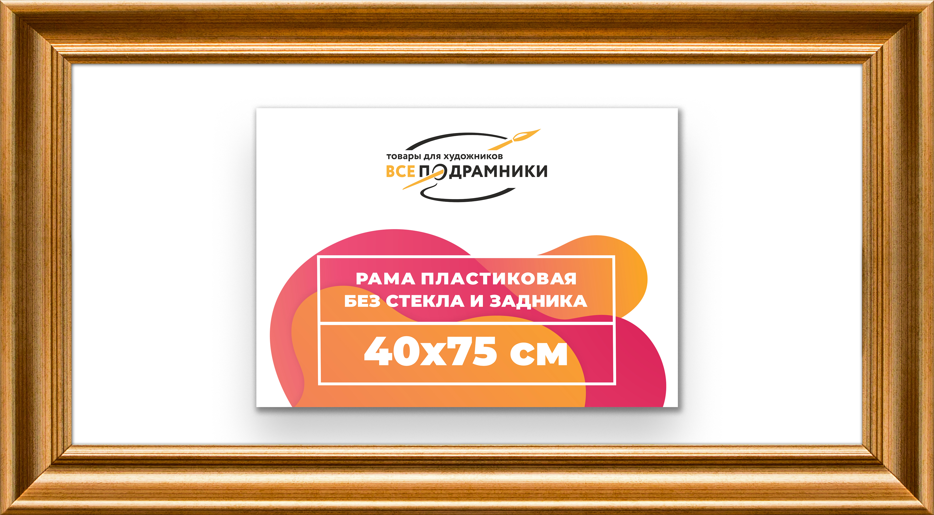 Пластиковая рама 40x75 без стекла и задника Пластиковая рама без стекла и задника изготовлена из безопасного и экологически чистого первичного полистирола высшей категории. Производитель: “ВсеПодрамники”. Для удобства установки к стандартному размеру добавлено 4 мм (по 2 мм с каждой стороны), чтобы ваше изделие легко поместилось в раму. 1. Основные характеристики: - Размеры рамки: 40x75 (по размеру помещаемого изображения) - Габариты изделия: 50.0x85.0 см. - Цвет: бронзовый - Профиль: классический - Сечение рамы: 55x35 мм - Ширина четверти: 7 мм - Высота четверти: 10 мм 2. Комплектация: - Подвесная пластина – 2 шт. - Прижимы для подрамника - Винты 3. Назначение: - Подходит для оформления: • Картин, включая картины по номерам • Алмазных мозаик и вышивок крестом • Постеров, фотографий, икон • Паспарту, зеркал • Вышивки бисером и алмазной мозаики • Медалей, орденов, спортивных наград • Старинных часов, ключей, монет или украшений - Используется как настенная или настольная фоторамка (нет подставки) 4. Преимущества: - Универсальность: квадратные и прямоугольные форматы, размеры от 10х10 до 100х100 см - Удобство: можно повесить горизонтально или вертикально - Широкий выбор: разные профили, расцветки, с опцией со стеклом или без - Идеальный подарок: для мамы, папы, бабушки, дедушки, друзей, коллег на день рождения, Новый год, 8 марта, 23 февраля, свадьбу, новоселье или любой другой праздник 5. Применение в интерьере: - Идеально для алмазной вышивки, мозаики, картин на подрамнике - Украшение дома: подходит для изображений цветов, живописи, портретов, натюрмортов, городских пейзажей, природы 6. Производство: - Страна: Россия, Санкт-Петербург - Качество: высококачественные материалы с вниманием к деталям