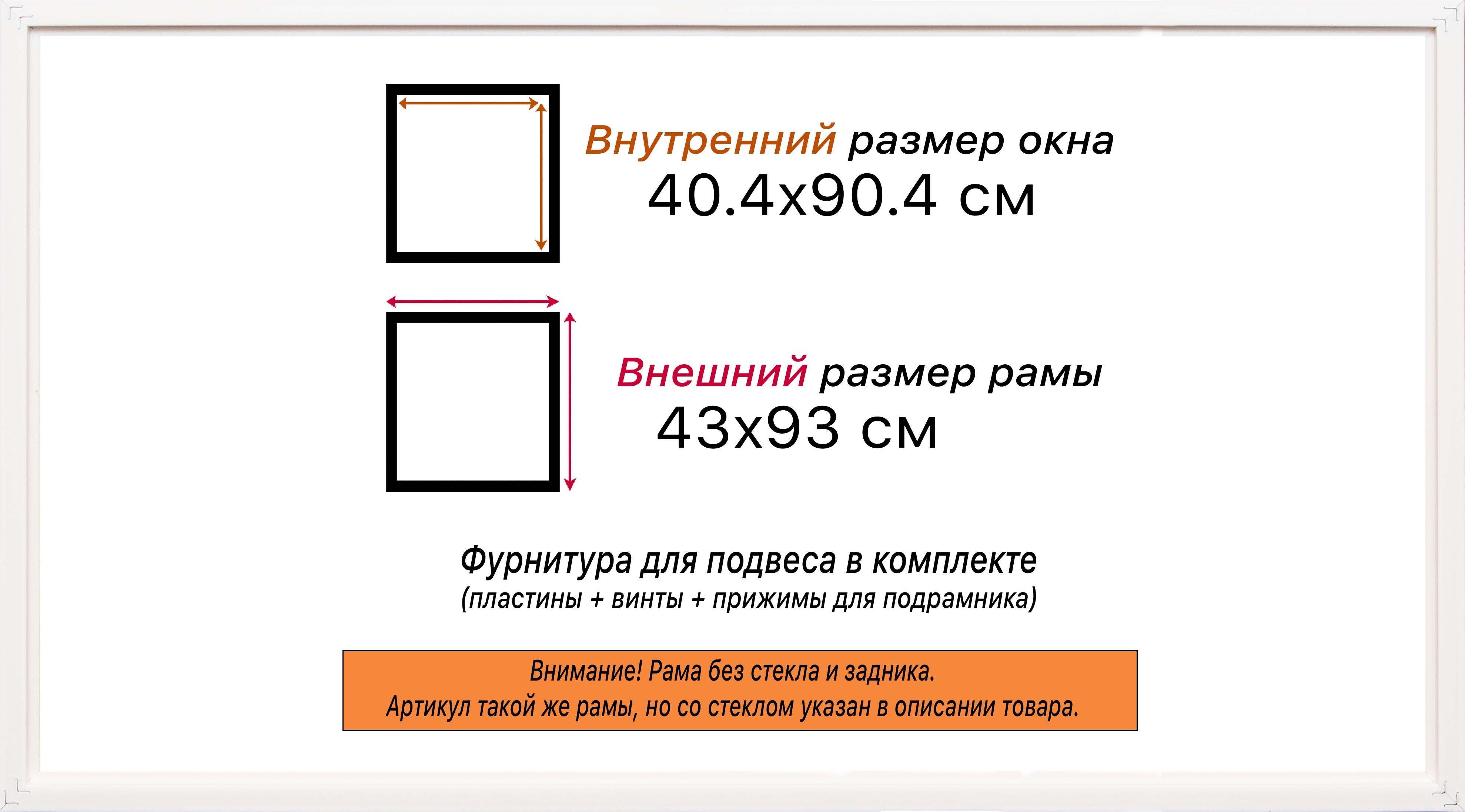 Пластиковая рама 40x90 без стекла и задника Пластиковая рама без стекла и задника изготовлена из безопасного и экологически чистого первичного полистирола высшей категории. Производитель: “ВсеПодрамники”. Для удобства установки к стандартному размеру добавлено 4 мм (по 2 мм с каждой стороны), чтобы ваше изделие легко поместилось в раму. 1. Основные характеристики: - Размеры рамки: 40x90 (по размеру помещаемого изображения) - Габариты изделия: 42.8x92.8 см. - Цвет: кремовый - Профиль: классический - Сечение рамы: 19x20 мм - Ширина четверти: 7 мм - Высота четверти: 10 мм 2. Комплектация: - Подвесная пластина – 2 шт. - Прижимы для подрамника - Винты 3. Назначение: - Подходит для оформления: • Картин, включая картины по номерам • Алмазных мозаик и вышивок крестом • Постеров, фотографий, икон • Паспарту, зеркал • Вышивки бисером и алмазной мозаики • Медалей, орденов, спортивных наград • Старинных часов, ключей, монет или украшений - Используется как настенная или настольная фоторамка (нет подставки) 4. Преимущества: - Универсальность: квадратные и прямоугольные форматы, размеры от 10х10 до 100х100 см - Удобство: можно повесить горизонтально или вертикально - Широкий выбор: разные профили, расцветки, с опцией со стеклом или без - Идеальный подарок: для мамы, папы, бабушки, дедушки, друзей, коллег на день рождения, Новый год, 8 марта, 23 февраля, свадьбу, новоселье или любой другой праздник 5. Применение в интерьере: - Идеально для алмазной вышивки, мозаики, картин на подрамнике - Украшение дома: подходит для изображений цветов, живописи, портретов, натюрмортов, городских пейзажей, природы 6. Производство: - Страна: Россия, Санкт-Петербург - Качество: высококачественные материалы с вниманием к деталям