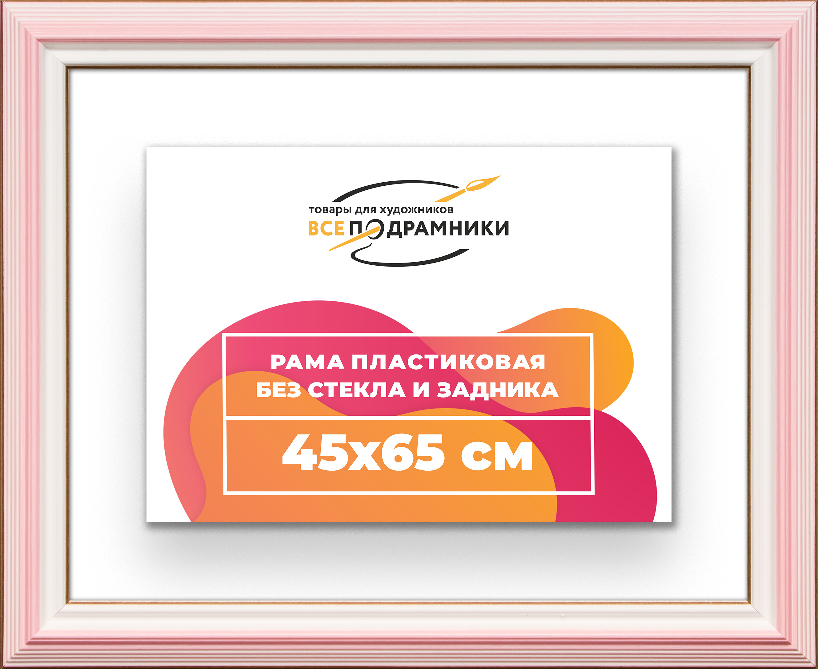 Пластиковая рама 45x65 без стекла и задника Пластиковая рама без стекла и задника изготовлена из безопасного и экологически чистого первичного полистирола высшей категории. Производитель: “ВсеПодрамники”. Для удобства установки к стандартному размеру добавлено 4 мм (по 2 мм с каждой стороны), чтобы ваше изделие легко поместилось в раму. 1. Основные характеристики: - Размеры рамки: 45x65 (по размеру помещаемого изображения) - Габариты изделия: 51.8x71.8 см. - Цвет: светло-розовый - Профиль: классический - Сечение рамы: 39x22 мм - Ширина четверти: 7 мм - Высота четверти: 10 мм 2. Комплектация: - Подвесная пластина – 2 шт. - Прижимы для подрамника - Винты 3. Назначение: - Подходит для оформления: • Картин, включая картины по номерам • Алмазных мозаик и вышивок крестом • Постеров, фотографий, икон • Паспарту, зеркал • Вышивки бисером и алмазной мозаики • Медалей, орденов, спортивных наград • Старинных часов, ключей, монет или украшений - Используется как настенная или настольная фоторамка (нет подставки) 4. Преимущества: - Универсальность: квадратные и прямоугольные форматы, размеры от 10х10 до 100х100 см - Удобство: можно повесить горизонтально или вертикально - Широкий выбор: разные профили, расцветки, с опцией со стеклом или без - Идеальный подарок: для мамы, папы, бабушки, дедушки, друзей, коллег на день рождения, Новый год, 8 марта, 23 февраля, свадьбу, новоселье или любой другой праздник 5. Применение в интерьере: - Идеально для алмазной вышивки, мозаики, картин на подрамнике - Украшение дома: подходит для изображений цветов, живописи, портретов, натюрмортов, городских пейзажей, природы 6. Производство: - Страна: Россия, Санкт-Петербург - Качество: высококачественные материалы с вниманием к деталям