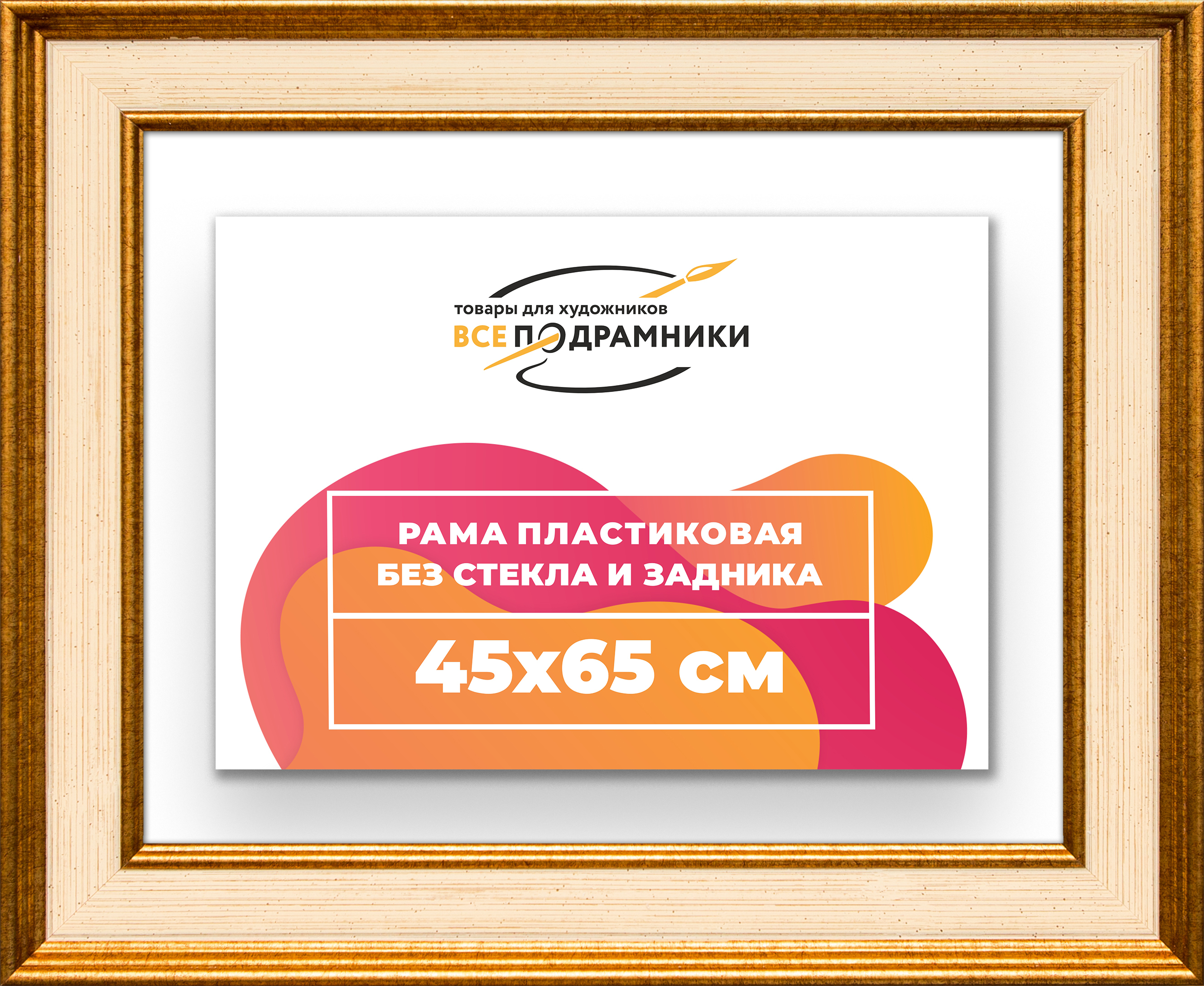 Пластиковая рама 45x65 без стекла и задника Пластиковая рама без стекла и задника изготовлена из безопасного и экологически чистого первичного полистирола высшей категории. Производитель: “ВсеПодрамники”. Для удобства установки к стандартному размеру добавлено 4 мм (по 2 мм с каждой стороны), чтобы ваше изделие легко поместилось в раму. 1. Основные характеристики: - Размеры рамки: 45x65 (по размеру помещаемого изображения) - Габариты изделия: 54.0x74.0 см. - Цвет: кремовый - Профиль: классический - Сечение рамы: 50x30 мм - Ширина четверти: 7 мм - Высота четверти: 10 мм 2. Комплектация: - Подвесная пластина – 2 шт. - Прижимы для подрамника - Винты 3. Назначение: - Подходит для оформления: • Картин, включая картины по номерам • Алмазных мозаик и вышивок крестом • Постеров, фотографий, икон • Паспарту, зеркал • Вышивки бисером и алмазной мозаики • Медалей, орденов, спортивных наград • Старинных часов, ключей, монет или украшений - Используется как настенная или настольная фоторамка (нет подставки) 4. Преимущества: - Универсальность: квадратные и прямоугольные форматы, размеры от 10х10 до 100х100 см - Удобство: можно повесить горизонтально или вертикально - Широкий выбор: разные профили, расцветки, с опцией со стеклом или без - Идеальный подарок: для мамы, папы, бабушки, дедушки, друзей, коллег на день рождения, Новый год, 8 марта, 23 февраля, свадьбу, новоселье или любой другой праздник 5. Применение в интерьере: - Идеально для алмазной вышивки, мозаики, картин на подрамнике - Украшение дома: подходит для изображений цветов, живописи, портретов, натюрмортов, городских пейзажей, природы 6. Производство: - Страна: Россия, Санкт-Петербург - Качество: высококачественные материалы с вниманием к деталям