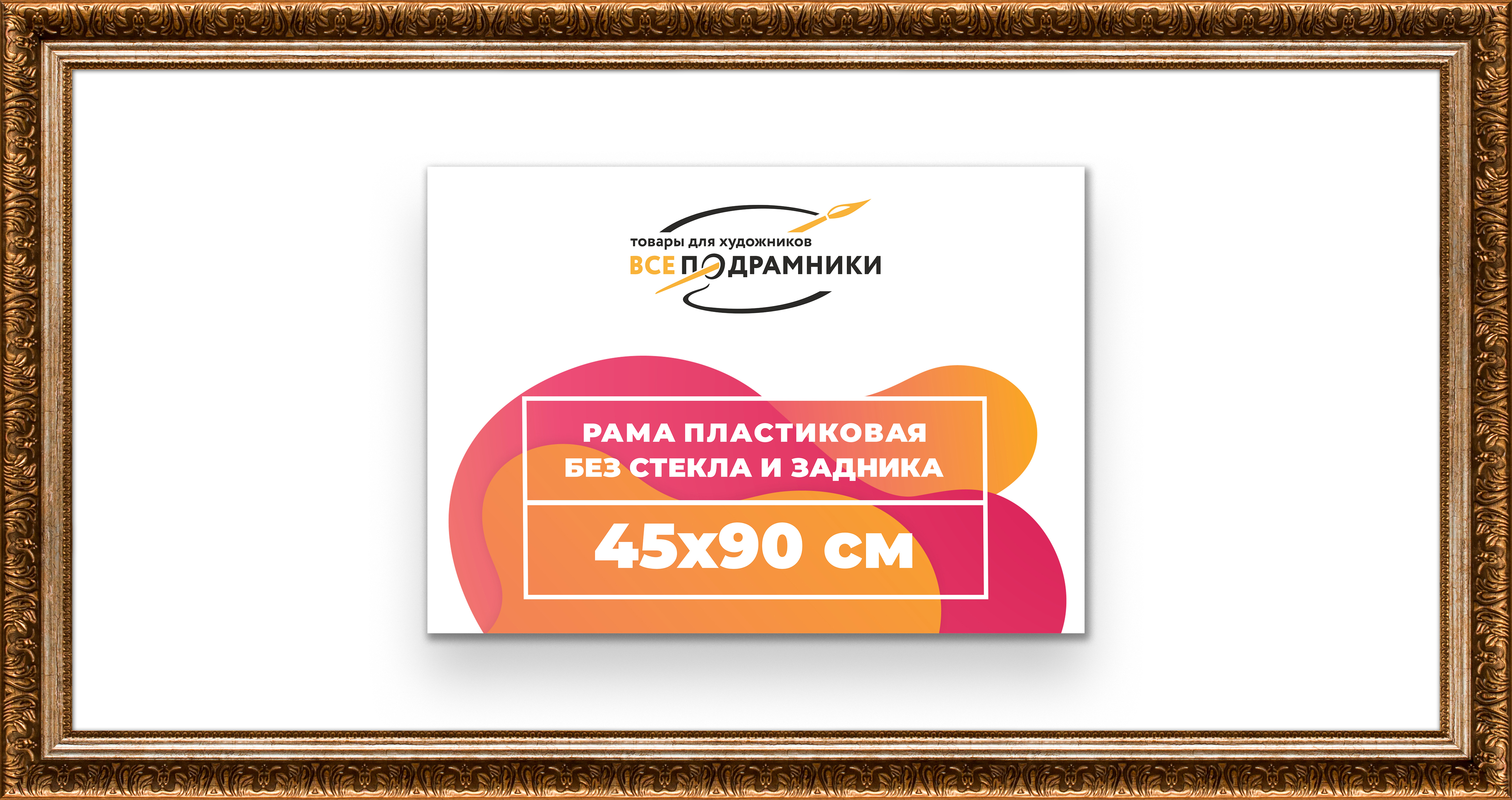 Пластиковая рама 45x90 без стекла и задника Пластиковая рама без стекла и задника изготовлена из безопасного и экологически чистого первичного полистирола высшей категории. Производитель: “ВсеПодрамники”. Для удобства установки к стандартному размеру добавлено 4 мм (по 2 мм с каждой стороны), чтобы ваше изделие легко поместилось в раму. 1. Основные характеристики: - Размеры рамки: 45x90 (по размеру помещаемого изображения) - Габариты изделия: 55.0x100.0 см. - Цвет: золотистый - Профиль: классический - Сечение рамы: 55x36 мм - Ширина четверти: 7 мм - Высота четверти: 10 мм 2. Комплектация: - Подвесная пластина – 2 шт. - Прижимы для подрамника - Винты 3. Назначение: - Подходит для оформления: • Картин, включая картины по номерам • Алмазных мозаик и вышивок крестом • Постеров, фотографий, икон • Паспарту, зеркал • Вышивки бисером и алмазной мозаики • Медалей, орденов, спортивных наград • Старинных часов, ключей, монет или украшений - Используется как настенная или настольная фоторамка (нет подставки) 4. Преимущества: - Универсальность: квадратные и прямоугольные форматы, размеры от 10х10 до 100х100 см - Удобство: можно повесить горизонтально или вертикально - Широкий выбор: разные профили, расцветки, с опцией со стеклом или без - Идеальный подарок: для мамы, папы, бабушки, дедушки, друзей, коллег на день рождения, Новый год, 8 марта, 23 февраля, свадьбу, новоселье или любой другой праздник 5. Применение в интерьере: - Идеально для алмазной вышивки, мозаики, картин на подрамнике - Украшение дома: подходит для изображений цветов, живописи, портретов, натюрмортов, городских пейзажей, природы 6. Производство: - Страна: Россия, Санкт-Петербург - Качество: высококачественные материалы с вниманием к деталям