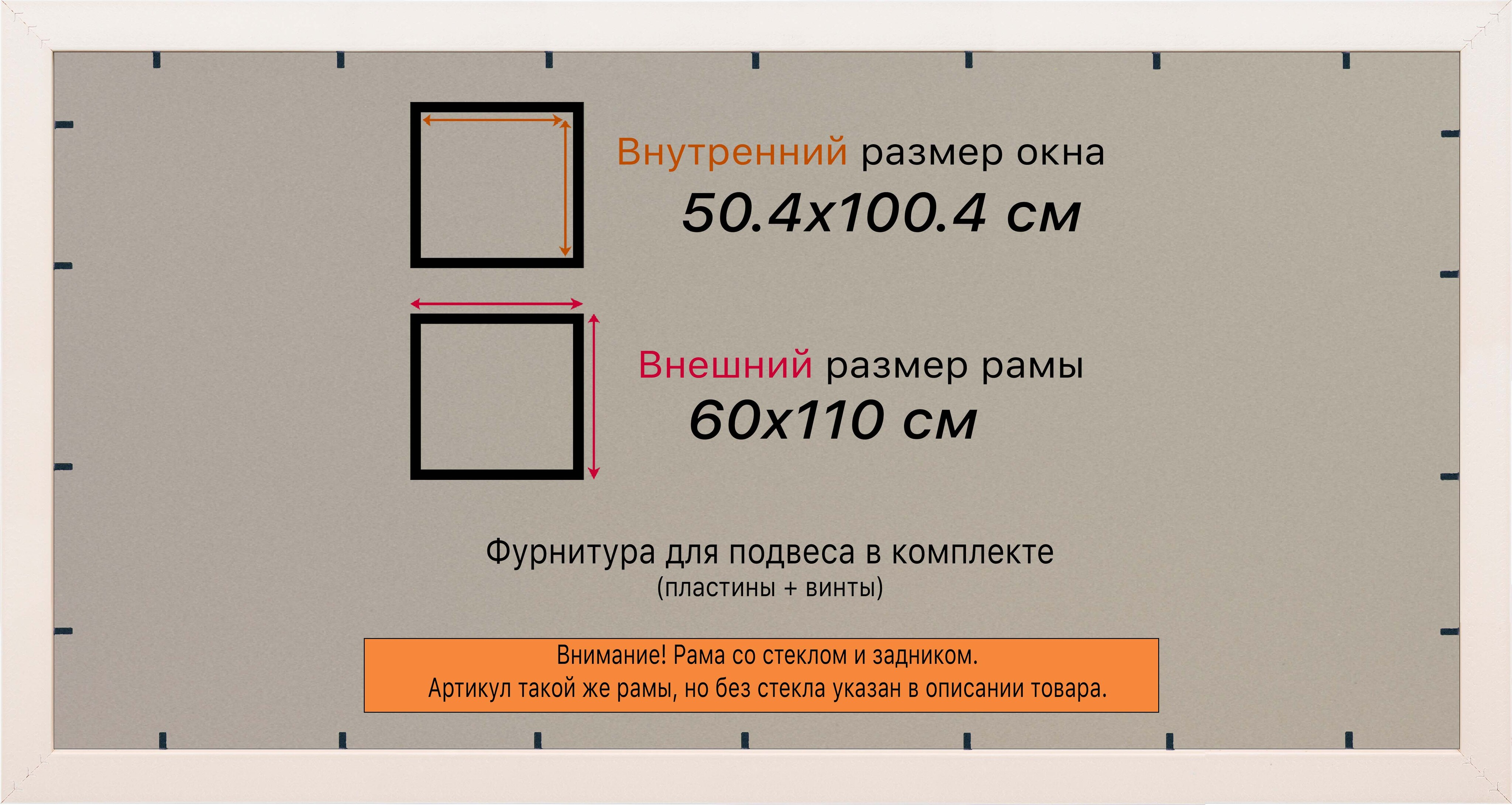 Пластиковая рама 50x100 без стекла и задника Пластиковая рама без стекла и задника изготовлена из безопасного и экологически чистого первичного полистирола высшей категории. Производитель: “ВсеПодрамники”. Для удобства установки к стандартному размеру добавлено 4 мм (по 2 мм с каждой стороны), чтобы ваше изделие легко поместилось в раму. 1. Основные характеристики: - Размеры рамки: 50x100 (по размеру помещаемого изображения) - Габариты изделия: 60.0x110.0 см. - Цвет: черный - Профиль: классический - Сечение рамы: 55x36 мм - Ширина четверти: 7 мм - Высота четверти: 10 мм 2. Комплектация: - Подвесная пластина – 2 шт. - Прижимы для подрамника - Винты 3. Назначение: - Подходит для оформления: • Картин, включая картины по номерам • Алмазных мозаик и вышивок крестом • Постеров, фотографий, икон • Паспарту, зеркал • Вышивки бисером и алмазной мозаики • Медалей, орденов, спортивных наград • Старинных часов, ключей, монет или украшений - Используется как настенная или настольная фоторамка (нет подставки) 4. Преимущества: - Универсальность: квадратные и прямоугольные форматы, размеры от 10х10 до 100х100 см - Удобство: можно повесить горизонтально или вертикально - Широкий выбор: разные профили, расцветки, с опцией со стеклом или без - Идеальный подарок: для мамы, папы, бабушки, дедушки, друзей, коллег на день рождения, Новый год, 8 марта, 23 февраля, свадьбу, новоселье или любой другой праздник 5. Применение в интерьере: - Идеально для алмазной вышивки, мозаики, картин на подрамнике - Украшение дома: подходит для изображений цветов, живописи, портретов, натюрмортов, городских пейзажей, природы 6. Производство: - Страна: Россия, Санкт-Петербург - Качество: высококачественные материалы с вниманием к деталям
