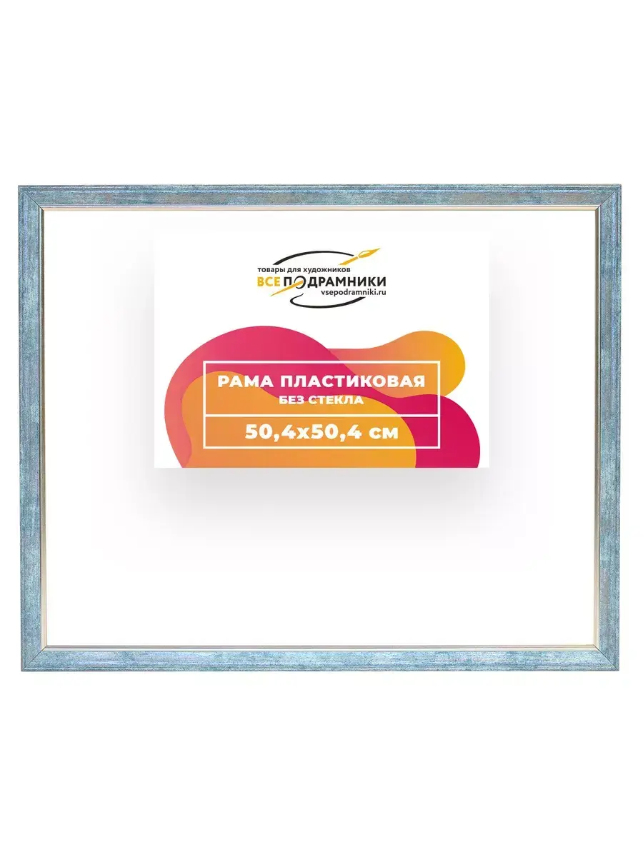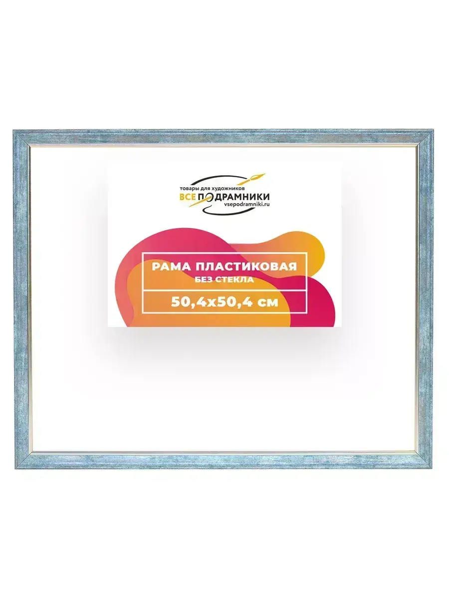 Пластиковая рама 50x50 без стекла и задника Пластиковая рама без стекла и задника изготовлена из безопасного и экологически чистого первичного полистирола высшей категории. Производитель: “ВсеПодрамники”. Для удобства установки к стандартному размеру добавлено 4 мм (по 2 мм с каждой стороны), чтобы ваше изделие легко поместилось в раму. 1. Основные характеристики: - Размеры рамки: 50x50 (по размеру помещаемого изображения) - Габариты изделия: 53.8x53.8 см. - Цвет: синий - Профиль: классический - Сечение рамы: 24x20 мм - Ширина четверти: 7 мм - Высота четверти: 10 мм 2. Комплектация: - Подвесная пластина – 2 шт. - Прижимы для подрамника - Винты 3. Назначение: - Подходит для оформления: • Картин, включая картины по номерам • Алмазных мозаик и вышивок крестом • Постеров, фотографий, икон • Паспарту, зеркал • Вышивки бисером и алмазной мозаики • Медалей, орденов, спортивных наград • Старинных часов, ключей, монет или украшений - Используется как настенная или настольная фоторамка (нет подставки) 4. Преимущества: - Универсальность: квадратные и прямоугольные форматы, размеры от 10х10 до 100х100 см - Удобство: можно повесить горизонтально или вертикально - Широкий выбор: разные профили, расцветки, с опцией со стеклом или без - Идеальный подарок: для мамы, папы, бабушки, дедушки, друзей, коллег на день рождения, Новый год, 8 марта, 23 февраля, свадьбу, новоселье или любой другой праздник 5. Применение в интерьере: - Идеально для алмазной вышивки, мозаики, картин на подрамнике - Украшение дома: подходит для изображений цветов, живописи, портретов, натюрмортов, городских пейзажей, природы 6. Производство: - Страна: Россия, Санкт-Петербург - Качество: высококачественные материалы с вниманием к деталям