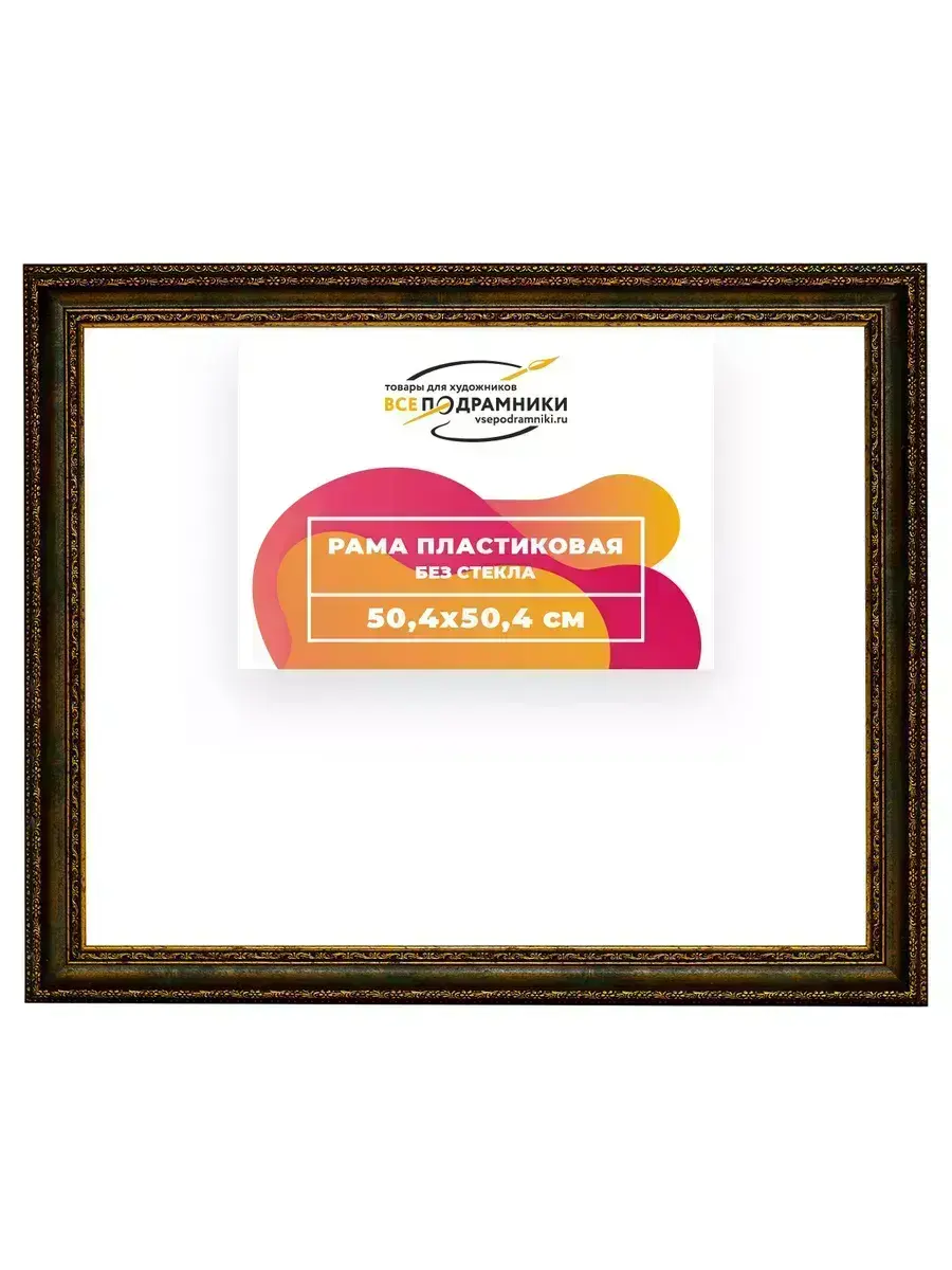 Пластиковая рама 50x50 без стекла и задника Пластиковая рама без стекла и задника изготовлена из безопасного и экологически чистого первичного полистирола высшей категории. Производитель: “ВсеПодрамники”. Для удобства установки к стандартному размеру добавлено 4 мм (по 2 мм с каждой стороны), чтобы ваше изделие легко поместилось в раму. 1. Основные характеристики: - Размеры рамки: 50x50 (по размеру помещаемого изображения) - Габариты изделия: 56.8x56.8 см. - Цвет: зеленый - Профиль: классический - Сечение рамы: 39x29 мм - Ширина четверти: 7 мм - Высота четверти: 10 мм 2. Комплектация: - Подвесная пластина – 2 шт. - Прижимы для подрамника - Винты 3. Назначение: - Подходит для оформления: • Картин, включая картины по номерам • Алмазных мозаик и вышивок крестом • Постеров, фотографий, икон • Паспарту, зеркал • Вышивки бисером и алмазной мозаики • Медалей, орденов, спортивных наград • Старинных часов, ключей, монет или украшений - Используется как настенная или настольная фоторамка (нет подставки) 4. Преимущества: - Универсальность: квадратные и прямоугольные форматы, размеры от 10х10 до 100х100 см - Удобство: можно повесить горизонтально или вертикально - Широкий выбор: разные профили, расцветки, с опцией со стеклом или без - Идеальный подарок: для мамы, папы, бабушки, дедушки, друзей, коллег на день рождения, Новый год, 8 марта, 23 февраля, свадьбу, новоселье или любой другой праздник 5. Применение в интерьере: - Идеально для алмазной вышивки, мозаики, картин на подрамнике - Украшение дома: подходит для изображений цветов, живописи, портретов, натюрмортов, городских пейзажей, природы 6. Производство: - Страна: Россия, Санкт-Петербург - Качество: высококачественные материалы с вниманием к деталям