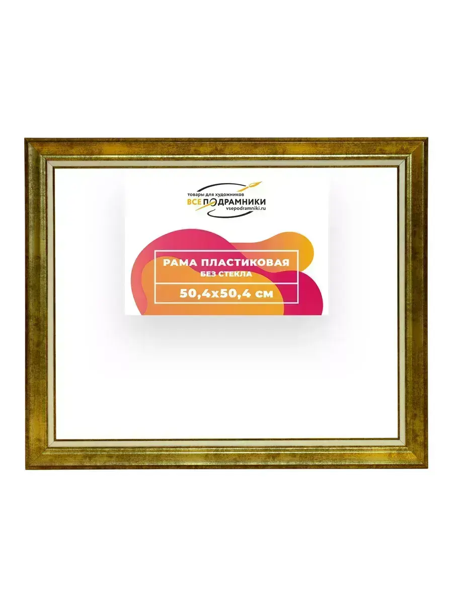 Пластиковая рама 50x50 без стекла и задника Пластиковая рама без стекла и задника изготовлена из безопасного и экологически чистого первичного полистирола высшей категории. Производитель: “ВсеПодрамники”. Для удобства установки к стандартному размеру добавлено 4 мм (по 2 мм с каждой стороны), чтобы ваше изделие легко поместилось в раму. 1. Основные характеристики: - Размеры рамки: 50x50 (по размеру помещаемого изображения) - Габариты изделия: 57.8x57.8 см. - Цвет: золотистый - Профиль: классический - Сечение рамы: 44x25 мм - Ширина четверти: 7 мм - Высота четверти: 10 мм 2. Комплектация: - Подвесная пластина – 2 шт. - Прижимы для подрамника - Винты 3. Назначение: - Подходит для оформления: • Картин, включая картины по номерам • Алмазных мозаик и вышивок крестом • Постеров, фотографий, икон • Паспарту, зеркал • Вышивки бисером и алмазной мозаики • Медалей, орденов, спортивных наград • Старинных часов, ключей, монет или украшений - Используется как настенная или настольная фоторамка (нет подставки) 4. Преимущества: - Универсальность: квадратные и прямоугольные форматы, размеры от 10х10 до 100х100 см - Удобство: можно повесить горизонтально или вертикально - Широкий выбор: разные профили, расцветки, с опцией со стеклом или без - Идеальный подарок: для мамы, папы, бабушки, дедушки, друзей, коллег на день рождения, Новый год, 8 марта, 23 февраля, свадьбу, новоселье или любой другой праздник 5. Применение в интерьере: - Идеально для алмазной вышивки, мозаики, картин на подрамнике - Украшение дома: подходит для изображений цветов, живописи, портретов, натюрмортов, городских пейзажей, природы 6. Производство: - Страна: Россия, Санкт-Петербург - Качество: высококачественные материалы с вниманием к деталям