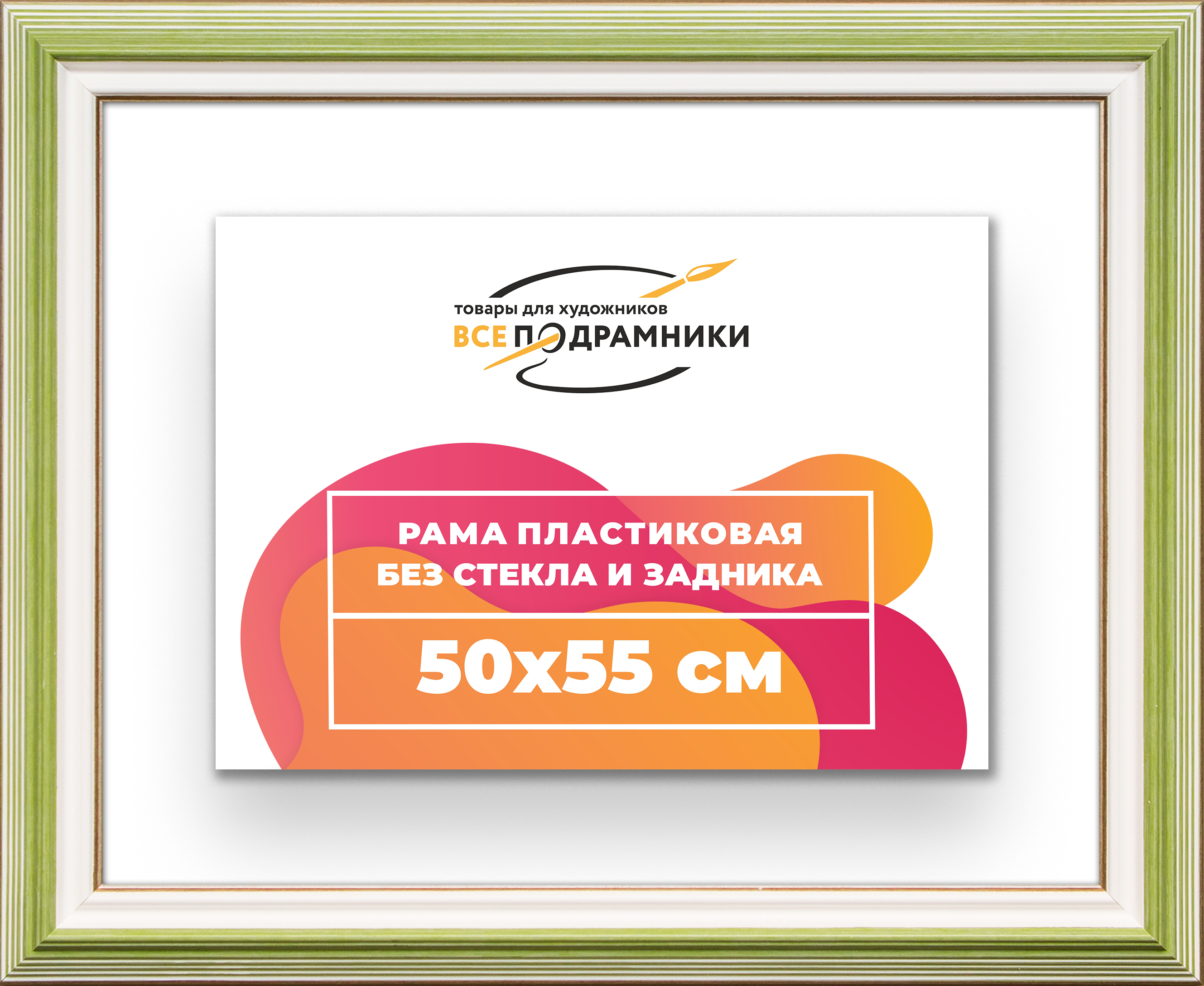 Пластиковая рама 50x55 без стекла и задника Пластиковая рама без стекла и задника изготовлена из безопасного и экологически чистого первичного полистирола высшей категории. Производитель: “ВсеПодрамники”. Для удобства установки к стандартному размеру добавлено 4 мм (по 2 мм с каждой стороны), чтобы ваше изделие легко поместилось в раму. 1. Основные характеристики: - Размеры рамки: 50x55 (по размеру помещаемого изображения) - Габариты изделия: 56.8x61.8 см. - Цвет: оливковый - Профиль: классический - Сечение рамы: 39x22 мм - Ширина четверти: 7 мм - Высота четверти: 10 мм 2. Комплектация: - Подвесная пластина – 2 шт. - Прижимы для подрамника - Винты 3. Назначение: - Подходит для оформления: • Картин, включая картины по номерам • Алмазных мозаик и вышивок крестом • Постеров, фотографий, икон • Паспарту, зеркал • Вышивки бисером и алмазной мозаики • Медалей, орденов, спортивных наград • Старинных часов, ключей, монет или украшений - Используется как настенная или настольная фоторамка (нет подставки) 4. Преимущества: - Универсальность: квадратные и прямоугольные форматы, размеры от 10х10 до 100х100 см - Удобство: можно повесить горизонтально или вертикально - Широкий выбор: разные профили, расцветки, с опцией со стеклом или без - Идеальный подарок: для мамы, папы, бабушки, дедушки, друзей, коллег на день рождения, Новый год, 8 марта, 23 февраля, свадьбу, новоселье или любой другой праздник 5. Применение в интерьере: - Идеально для алмазной вышивки, мозаики, картин на подрамнике - Украшение дома: подходит для изображений цветов, живописи, портретов, натюрмортов, городских пейзажей, природы 6. Производство: - Страна: Россия, Санкт-Петербург - Качество: высококачественные материалы с вниманием к деталям