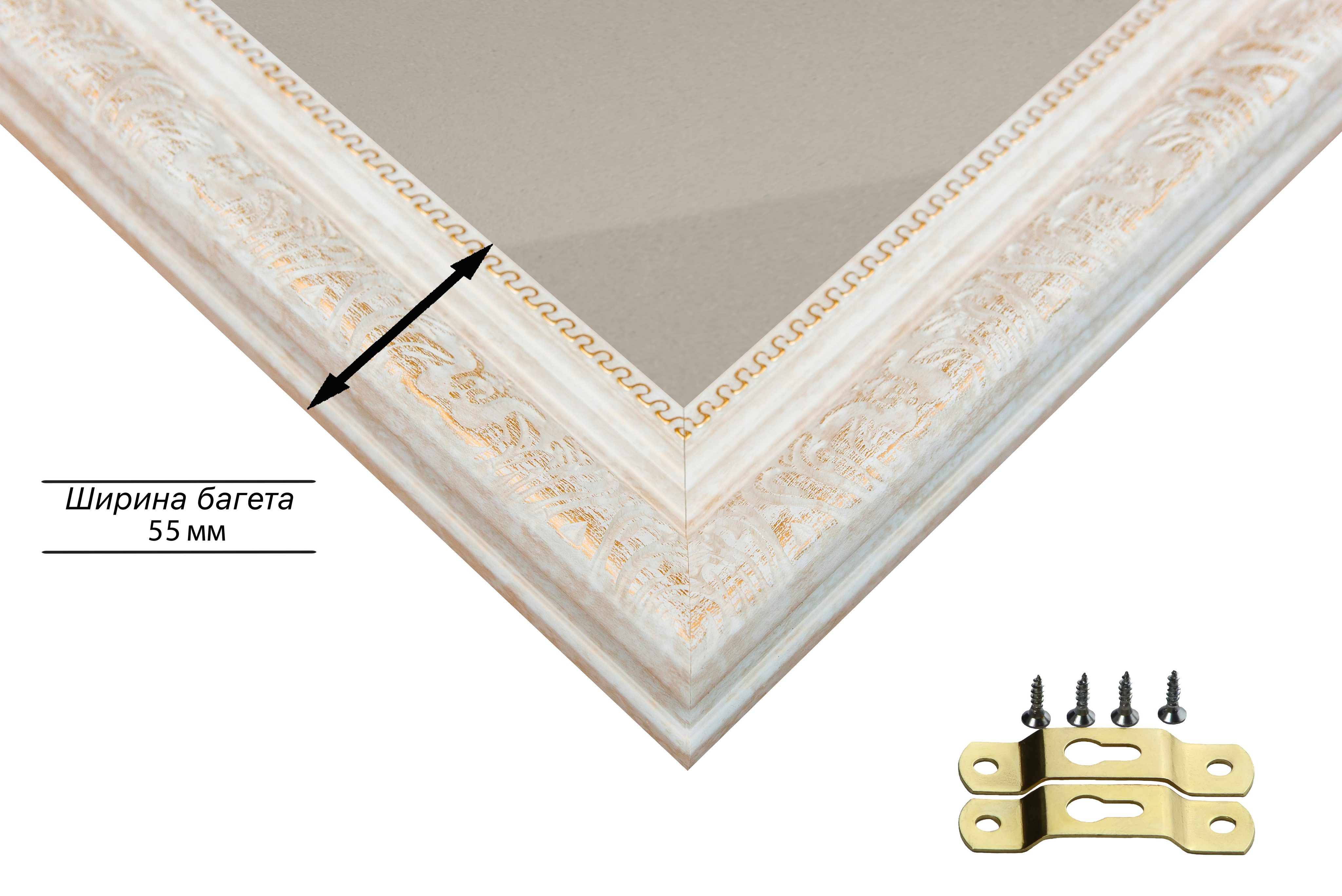 Пластиковая рама 55x60 без стекла и задника Пластиковая рама без стекла и задника изготовлена из безопасного и экологически чистого первичного полистирола высшей категории. Производитель: “ВсеПодрамники”. Для удобства установки к стандартному размеру добавлено 4 мм (по 2 мм с каждой стороны), чтобы ваше изделие легко поместилось в раму. 1. Основные характеристики: - Размеры рамки: 55x60 (по размеру помещаемого изображения) - Габариты изделия: 65.0x70.0 см. - Цвет: кремовый - Профиль: классический - Сечение рамы: 55x36 мм - Ширина четверти: 7 мм - Высота четверти: 10 мм 2. Комплектация: - Подвесная пластина – 2 шт. - Прижимы для подрамника - Винты 3. Назначение: - Подходит для оформления: • Картин, включая картины по номерам • Алмазных мозаик и вышивок крестом • Постеров, фотографий, икон • Паспарту, зеркал • Вышивки бисером и алмазной мозаики • Медалей, орденов, спортивных наград • Старинных часов, ключей, монет или украшений - Используется как настенная или настольная фоторамка (нет подставки) 4. Преимущества: - Универсальность: квадратные и прямоугольные форматы, размеры от 10х10 до 100х100 см - Удобство: можно повесить горизонтально или вертикально - Широкий выбор: разные профили, расцветки, с опцией со стеклом или без - Идеальный подарок: для мамы, папы, бабушки, дедушки, друзей, коллег на день рождения, Новый год, 8 марта, 23 февраля, свадьбу, новоселье или любой другой праздник 5. Применение в интерьере: - Идеально для алмазной вышивки, мозаики, картин на подрамнике - Украшение дома: подходит для изображений цветов, живописи, портретов, натюрмортов, городских пейзажей, природы 6. Производство: - Страна: Россия, Санкт-Петербург - Качество: высококачественные материалы с вниманием к деталям