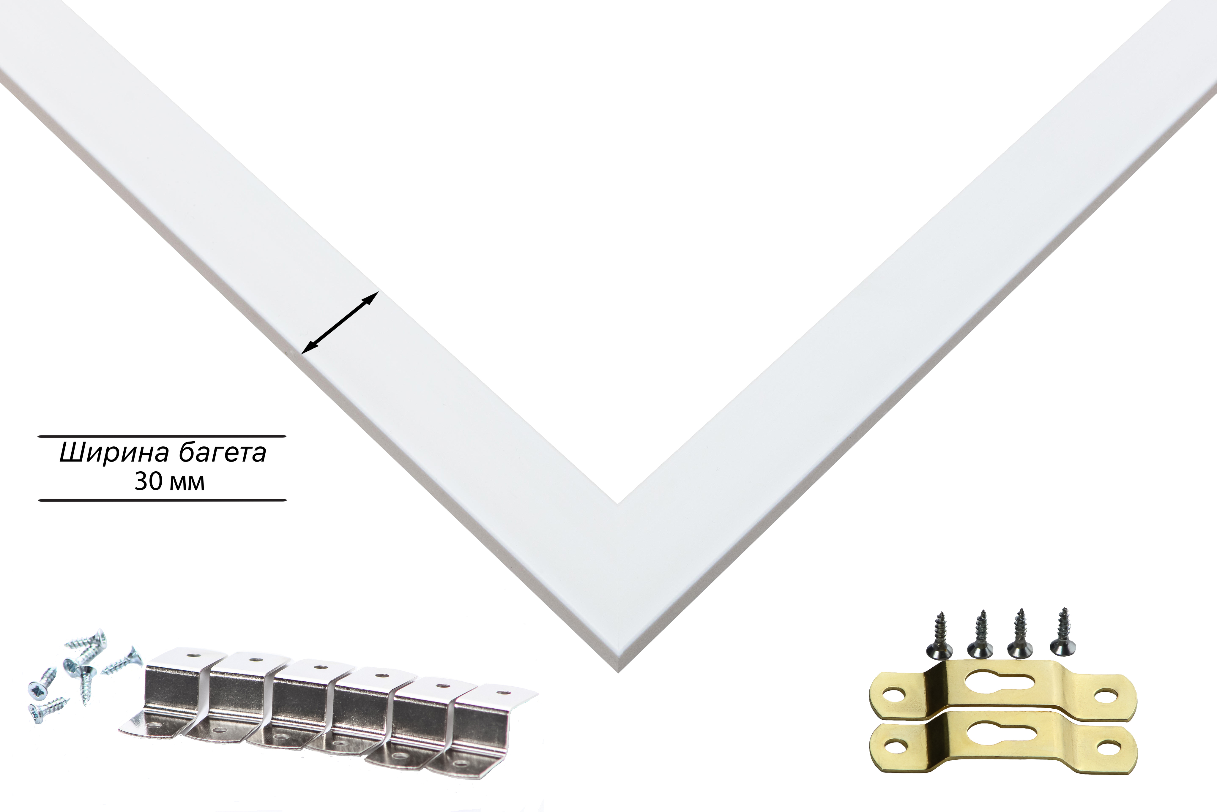 Пластиковая рама 55x90 без стекла и задника Пластиковая рама без стекла и задника изготовлена из безопасного и экологически чистого первичного полистирола высшей категории. Производитель: “ВсеПодрамники”. Для удобства установки к стандартному размеру добавлено 4 мм (по 2 мм с каждой стороны), чтобы ваше изделие легко поместилось в раму. 1. Основные характеристики: - Размеры рамки: 55x90 (по размеру помещаемого изображения) - Габариты изделия: 60.0x95.0 см. - Цвет: белый - Профиль: классический - Сечение рамы: 30x16 мм - Ширина четверти: 7 мм - Высота четверти: 10 мм 2. Комплектация: - Подвесная пластина – 2 шт. - Прижимы для подрамника - Винты 3. Назначение: - Подходит для оформления: • Картин, включая картины по номерам • Алмазных мозаик и вышивок крестом • Постеров, фотографий, икон • Паспарту, зеркал • Вышивки бисером и алмазной мозаики • Медалей, орденов, спортивных наград • Старинных часов, ключей, монет или украшений - Используется как настенная или настольная фоторамка (нет подставки) 4. Преимущества: - Универсальность: квадратные и прямоугольные форматы, размеры от 10х10 до 100х100 см - Удобство: можно повесить горизонтально или вертикально - Широкий выбор: разные профили, расцветки, с опцией со стеклом или без - Идеальный подарок: для мамы, папы, бабушки, дедушки, друзей, коллег на день рождения, Новый год, 8 марта, 23 февраля, свадьбу, новоселье или любой другой праздник 5. Применение в интерьере: - Идеально для алмазной вышивки, мозаики, картин на подрамнике - Украшение дома: подходит для изображений цветов, живописи, портретов, натюрмортов, городских пейзажей, природы 6. Производство: - Страна: Россия, Санкт-Петербург - Качество: высококачественные материалы с вниманием к деталям