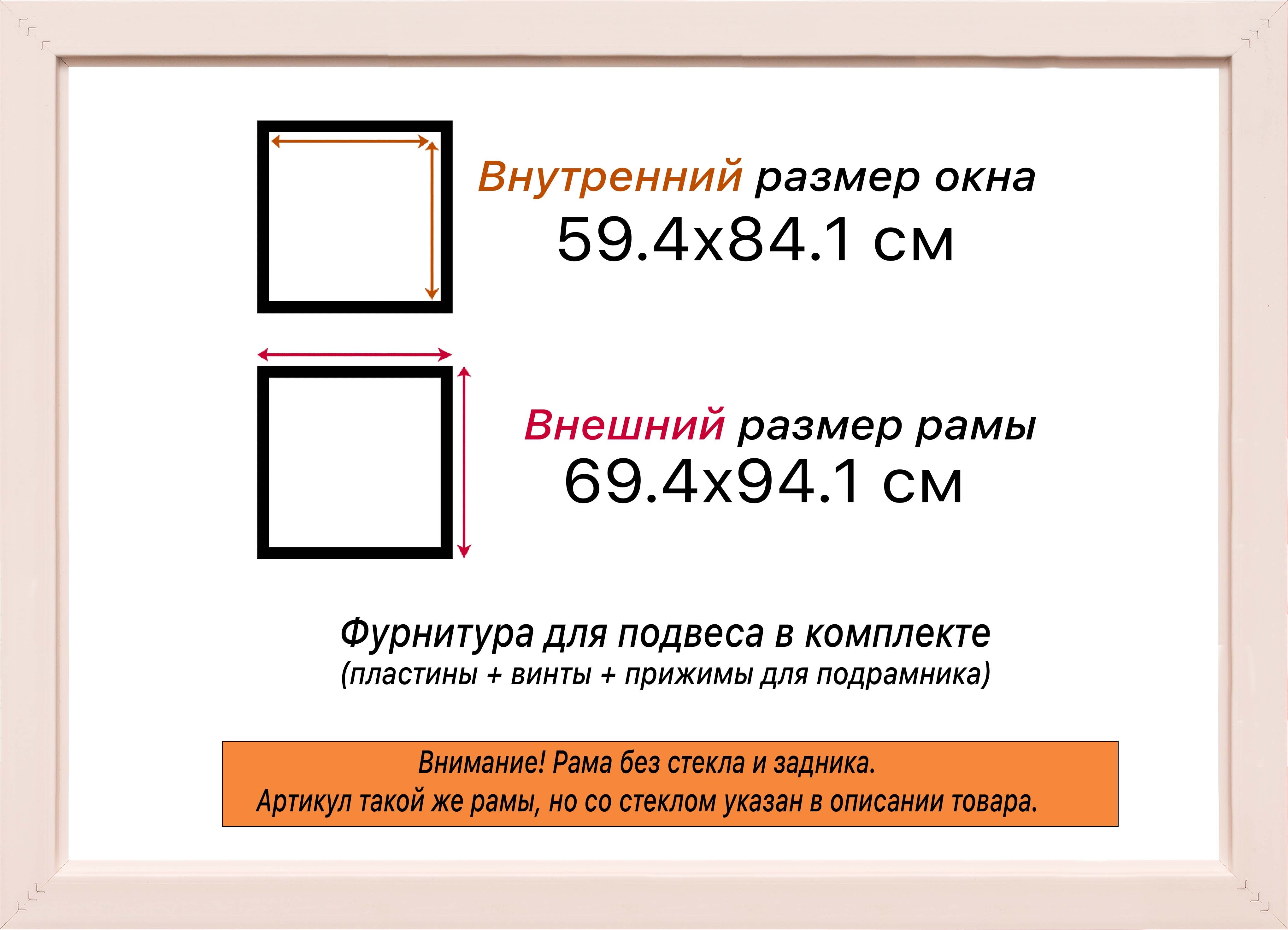 Пластиковая рама 59,4x84,1 без стекла и задника Пластиковая рама без стекла и задника изготовлена из безопасного и экологически чистого первичного полистирола высшей категории. Производитель: “ВсеПодрамники”. Для удобства установки к стандартному размеру добавлено 4 мм (по 2 мм с каждой стороны), чтобы ваше изделие легко поместилось в раму. 1. Основные характеристики: - Размеры рамки: 59,4x84,1 (по размеру помещаемого изображения) - Габариты изделия: 69.4x94.1 см. - Цвет: бронзовый - Профиль: классический - Сечение рамы: 55x35 мм - Ширина четверти: 7 мм - Высота четверти: 10 мм 2. Комплектация: - Подвесная пластина – 2 шт. - Прижимы для подрамника - Винты 3. Назначение: - Подходит для оформления: • Картин, включая картины по номерам • Алмазных мозаик и вышивок крестом • Постеров, фотографий, икон • Паспарту, зеркал • Вышивки бисером и алмазной мозаики • Медалей, орденов, спортивных наград • Старинных часов, ключей, монет или украшений - Используется как настенная или настольная фоторамка (нет подставки) 4. Преимущества: - Универсальность: квадратные и прямоугольные форматы, размеры от 10х10 до 100х100 см - Удобство: можно повесить горизонтально или вертикально - Широкий выбор: разные профили, расцветки, с опцией со стеклом или без - Идеальный подарок: для мамы, папы, бабушки, дедушки, друзей, коллег на день рождения, Новый год, 8 марта, 23 февраля, свадьбу, новоселье или любой другой праздник 5. Применение в интерьере: - Идеально для алмазной вышивки, мозаики, картин на подрамнике - Украшение дома: подходит для изображений цветов, живописи, портретов, натюрмортов, городских пейзажей, природы 6. Производство: - Страна: Россия, Санкт-Петербург - Качество: высококачественные материалы с вниманием к деталям