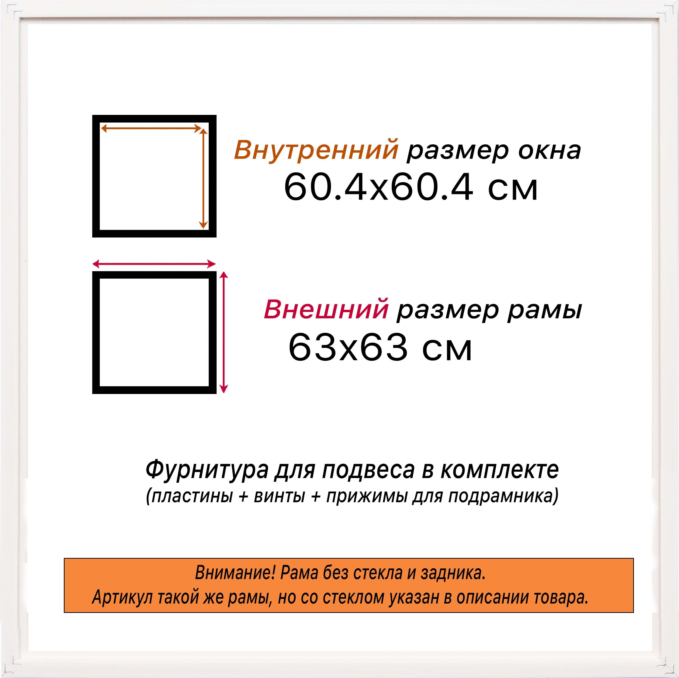 Пластиковая рама 60x60 без стекла и задника Пластиковая рама без стекла и задника изготовлена из безопасного и экологически чистого первичного полистирола высшей категории. Производитель: “ВсеПодрамники”. Для удобства установки к стандартному размеру добавлено 4 мм (по 2 мм с каждой стороны), чтобы ваше изделие легко поместилось в раму. 1. Основные характеристики: - Размеры рамки: 60x60 (по размеру помещаемого изображения) - Габариты изделия: 62.8x62.8 см. - Цвет: кремовый - Профиль: классический - Сечение рамы: 19x20 мм - Ширина четверти: 7 мм - Высота четверти: 10 мм 2. Комплектация: - Подвесная пластина – 2 шт. - Прижимы для подрамника - Винты 3. Назначение: - Подходит для оформления: • Картин, включая картины по номерам • Алмазных мозаик и вышивок крестом • Постеров, фотографий, икон • Паспарту, зеркал • Вышивки бисером и алмазной мозаики • Медалей, орденов, спортивных наград • Старинных часов, ключей, монет или украшений - Используется как настенная или настольная фоторамка (нет подставки) 4. Преимущества: - Универсальность: квадратные и прямоугольные форматы, размеры от 10х10 до 100х100 см - Удобство: можно повесить горизонтально или вертикально - Широкий выбор: разные профили, расцветки, с опцией со стеклом или без - Идеальный подарок: для мамы, папы, бабушки, дедушки, друзей, коллег на день рождения, Новый год, 8 марта, 23 февраля, свадьбу, новоселье или любой другой праздник 5. Применение в интерьере: - Идеально для алмазной вышивки, мозаики, картин на подрамнике - Украшение дома: подходит для изображений цветов, живописи, портретов, натюрмортов, городских пейзажей, природы 6. Производство: - Страна: Россия, Санкт-Петербург - Качество: высококачественные материалы с вниманием к деталям