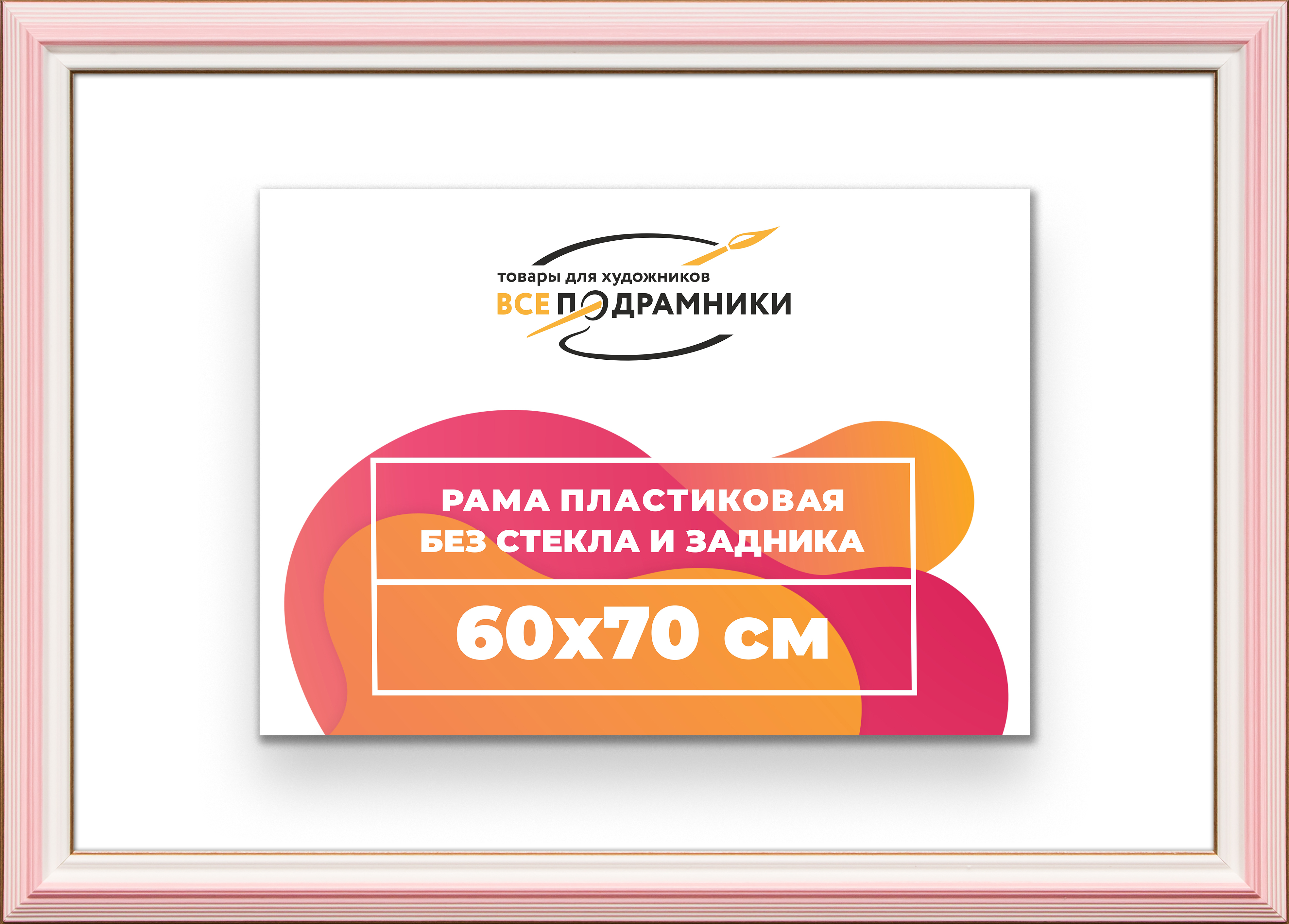 Пластиковая рама 60x70 без стекла и задника Пластиковая рама без стекла и задника изготовлена из безопасного и экологически чистого первичного полистирола высшей категории. Производитель: “ВсеПодрамники”. Для удобства установки к стандартному размеру добавлено 4 мм (по 2 мм с каждой стороны), чтобы ваше изделие легко поместилось в раму. 1. Основные характеристики: - Размеры рамки: 60x70 (по размеру помещаемого изображения) - Габариты изделия: 66.8x76.8 см. - Цвет: светло-розовый - Профиль: классический - Сечение рамы: 39x22 мм - Ширина четверти: 7 мм - Высота четверти: 10 мм 2. Комплектация: - Подвесная пластина – 2 шт. - Прижимы для подрамника - Винты 3. Назначение: - Подходит для оформления: • Картин, включая картины по номерам • Алмазных мозаик и вышивок крестом • Постеров, фотографий, икон • Паспарту, зеркал • Вышивки бисером и алмазной мозаики • Медалей, орденов, спортивных наград • Старинных часов, ключей, монет или украшений - Используется как настенная или настольная фоторамка (нет подставки) 4. Преимущества: - Универсальность: квадратные и прямоугольные форматы, размеры от 10х10 до 100х100 см - Удобство: можно повесить горизонтально или вертикально - Широкий выбор: разные профили, расцветки, с опцией со стеклом или без - Идеальный подарок: для мамы, папы, бабушки, дедушки, друзей, коллег на день рождения, Новый год, 8 марта, 23 февраля, свадьбу, новоселье или любой другой праздник 5. Применение в интерьере: - Идеально для алмазной вышивки, мозаики, картин на подрамнике - Украшение дома: подходит для изображений цветов, живописи, портретов, натюрмортов, городских пейзажей, природы 6. Производство: - Страна: Россия, Санкт-Петербург - Качество: высококачественные материалы с вниманием к деталям