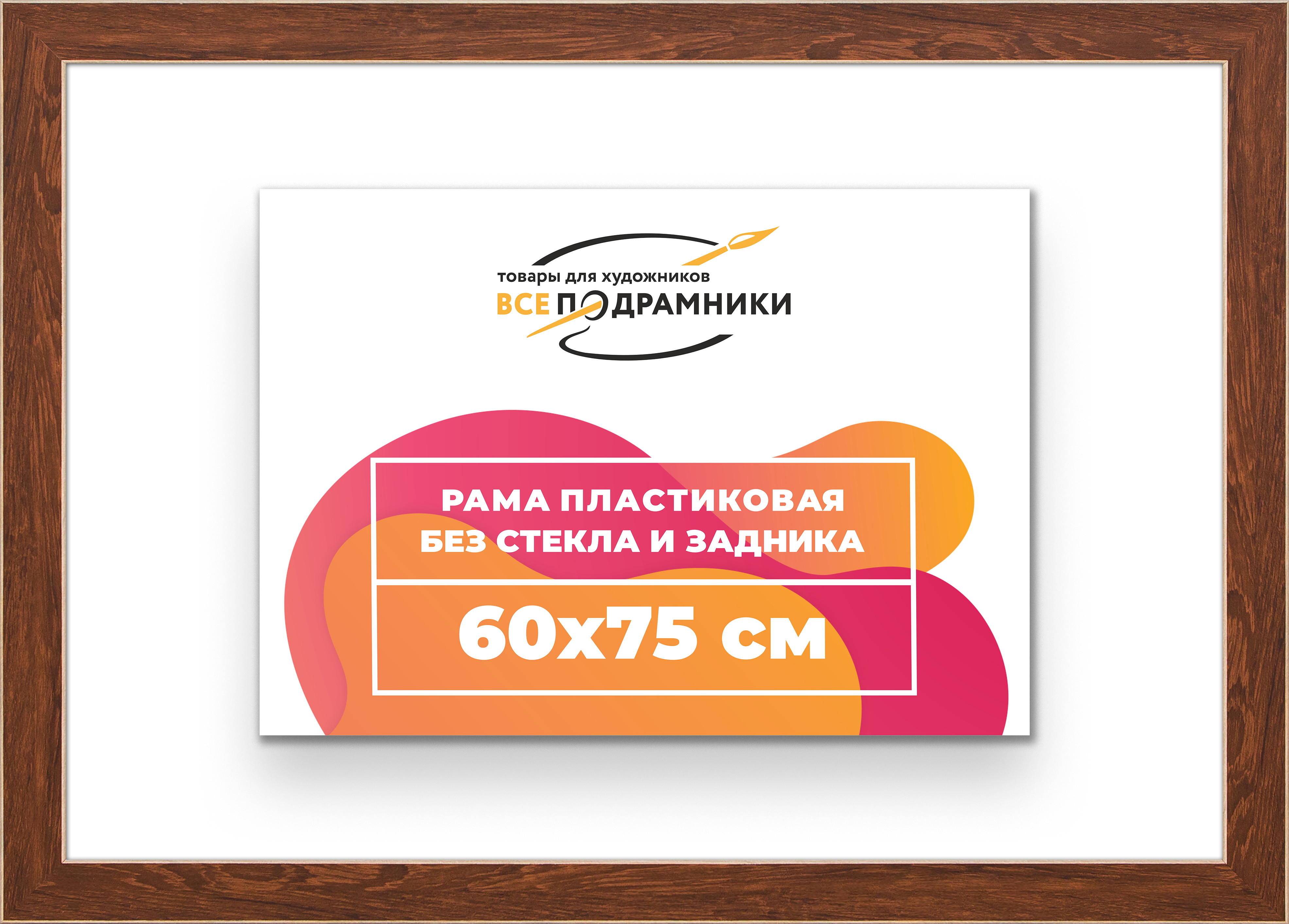 Пластиковая рама 60x75 без стекла и задника Пластиковая рама без стекла и задника изготовлена из безопасного и экологически чистого первичного полистирола высшей категории. Производитель: “ВсеПодрамники”. Для удобства установки к стандартному размеру добавлено 4 мм (по 2 мм с каждой стороны), чтобы ваше изделие легко поместилось в раму. 1. Основные характеристики: - Размеры рамки: 60x75 (по размеру помещаемого изображения) - Габариты изделия: 65.8x80.8 см. - Цвет: коричневый - Профиль: классический - Сечение рамы: 34x24 мм - Ширина четверти: 7 мм - Высота четверти: 10 мм 2. Комплектация: - Подвесная пластина – 2 шт. - Прижимы для подрамника - Винты 3. Назначение: - Подходит для оформления: • Картин, включая картины по номерам • Алмазных мозаик и вышивок крестом • Постеров, фотографий, икон • Паспарту, зеркал • Вышивки бисером и алмазной мозаики • Медалей, орденов, спортивных наград • Старинных часов, ключей, монет или украшений - Используется как настенная или настольная фоторамка (нет подставки) 4. Преимущества: - Универсальность: квадратные и прямоугольные форматы, размеры от 10х10 до 100х100 см - Удобство: можно повесить горизонтально или вертикально - Широкий выбор: разные профили, расцветки, с опцией со стеклом или без - Идеальный подарок: для мамы, папы, бабушки, дедушки, друзей, коллег на день рождения, Новый год, 8 марта, 23 февраля, свадьбу, новоселье или любой другой праздник 5. Применение в интерьере: - Идеально для алмазной вышивки, мозаики, картин на подрамнике - Украшение дома: подходит для изображений цветов, живописи, портретов, натюрмортов, городских пейзажей, природы 6. Производство: - Страна: Россия, Санкт-Петербург - Качество: высококачественные материалы с вниманием к деталям
