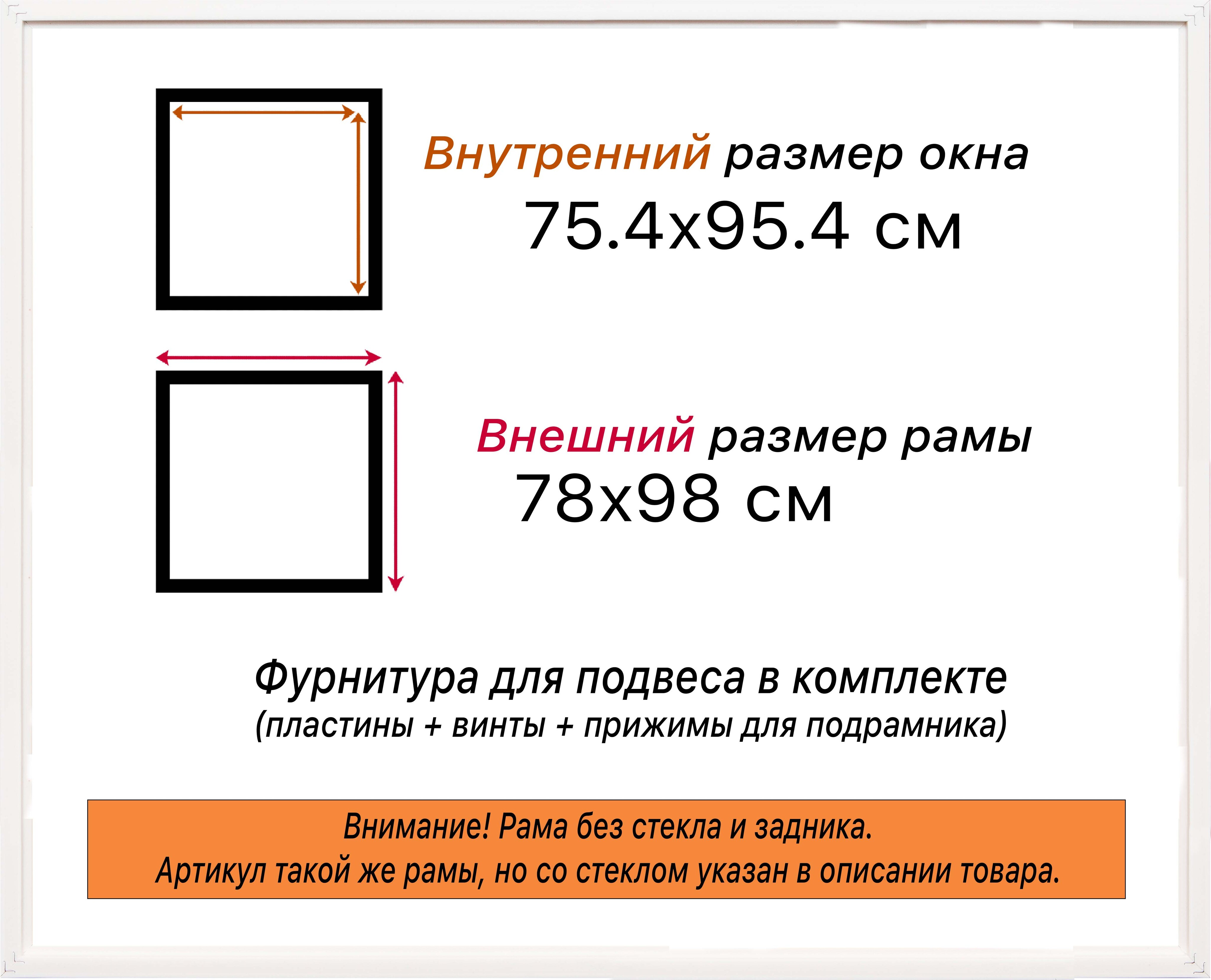 Пластиковая рама 75x95 без стекла и задника Пластиковая рама без стекла и задника изготовлена из безопасного и экологически чистого первичного полистирола высшей категории. Производитель: “ВсеПодрамники”. Для удобства установки к стандартному размеру добавлено 4 мм (по 2 мм с каждой стороны), чтобы ваше изделие легко поместилось в раму. 1. Основные характеристики: - Размеры рамки: 75x95 (по размеру помещаемого изображения) - Габариты изделия: 77.8x97.8 см. - Цвет: кремовый - Профиль: классический - Сечение рамы: 19x20 мм - Ширина четверти: 7 мм - Высота четверти: 10 мм 2. Комплектация: - Подвесная пластина – 2 шт. - Прижимы для подрамника - Винты 3. Назначение: - Подходит для оформления: • Картин, включая картины по номерам • Алмазных мозаик и вышивок крестом • Постеров, фотографий, икон • Паспарту, зеркал • Вышивки бисером и алмазной мозаики • Медалей, орденов, спортивных наград • Старинных часов, ключей, монет или украшений - Используется как настенная или настольная фоторамка (нет подставки) 4. Преимущества: - Универсальность: квадратные и прямоугольные форматы, размеры от 10х10 до 100х100 см - Удобство: можно повесить горизонтально или вертикально - Широкий выбор: разные профили, расцветки, с опцией со стеклом или без - Идеальный подарок: для мамы, папы, бабушки, дедушки, друзей, коллег на день рождения, Новый год, 8 марта, 23 февраля, свадьбу, новоселье или любой другой праздник 5. Применение в интерьере: - Идеально для алмазной вышивки, мозаики, картин на подрамнике - Украшение дома: подходит для изображений цветов, живописи, портретов, натюрмортов, городских пейзажей, природы 6. Производство: - Страна: Россия, Санкт-Петербург - Качество: высококачественные материалы с вниманием к деталям