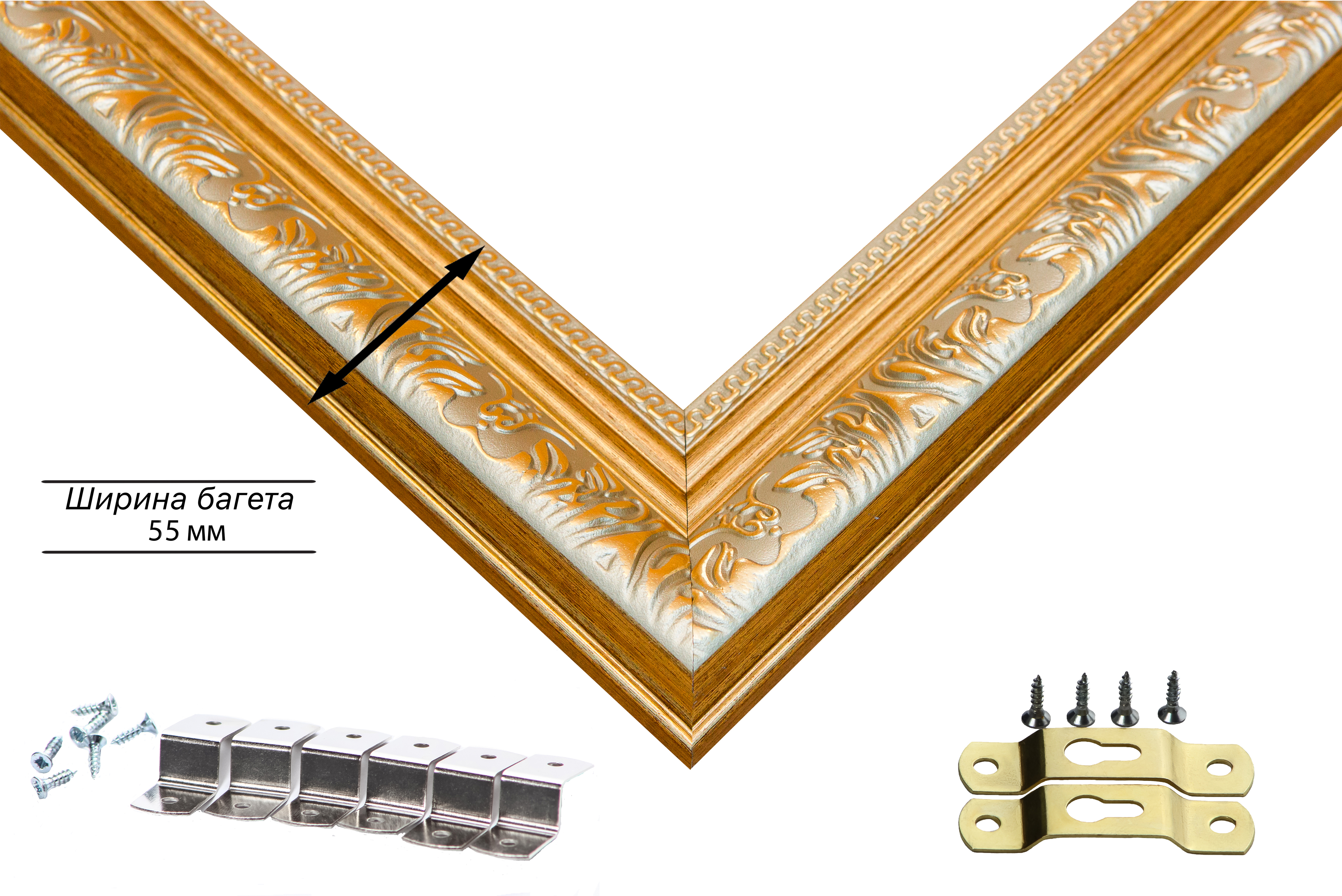 Пластиковая рама 95x95 без стекла и задника Пластиковая рама без стекла и задника изготовлена из безопасного и экологически чистого первичного полистирола высшей категории. Производитель: “ВсеПодрамники”. Для удобства установки к стандартному размеру добавлено 4 мм (по 2 мм с каждой стороны), чтобы ваше изделие легко поместилось в раму. 1. Основные характеристики: - Размеры рамки: 95x95 (по размеру помещаемого изображения) - Габариты изделия: 105.0x105.0 см. - Цвет: золотистый - Профиль: классический - Сечение рамы: 55x36 мм - Ширина четверти: 7 мм - Высота четверти: 10 мм 2. Комплектация: - Подвесная пластина – 2 шт. - Прижимы для подрамника - Винты 3. Назначение: - Подходит для оформления: • Картин, включая картины по номерам • Алмазных мозаик и вышивок крестом • Постеров, фотографий, икон • Паспарту, зеркал • Вышивки бисером и алмазной мозаики • Медалей, орденов, спортивных наград • Старинных часов, ключей, монет или украшений - Используется как настенная или настольная фоторамка (нет подставки) 4. Преимущества: - Универсальность: квадратные и прямоугольные форматы, размеры от 10х10 до 100х100 см - Удобство: можно повесить горизонтально или вертикально - Широкий выбор: разные профили, расцветки, с опцией со стеклом или без - Идеальный подарок: для мамы, папы, бабушки, дедушки, друзей, коллег на день рождения, Новый год, 8 марта, 23 февраля, свадьбу, новоселье или любой другой праздник 5. Применение в интерьере: - Идеально для алмазной вышивки, мозаики, картин на подрамнике - Украшение дома: подходит для изображений цветов, живописи, портретов, натюрмортов, городских пейзажей, природы 6. Производство: - Страна: Россия, Санкт-Петербург - Качество: высококачественные материалы с вниманием к деталям