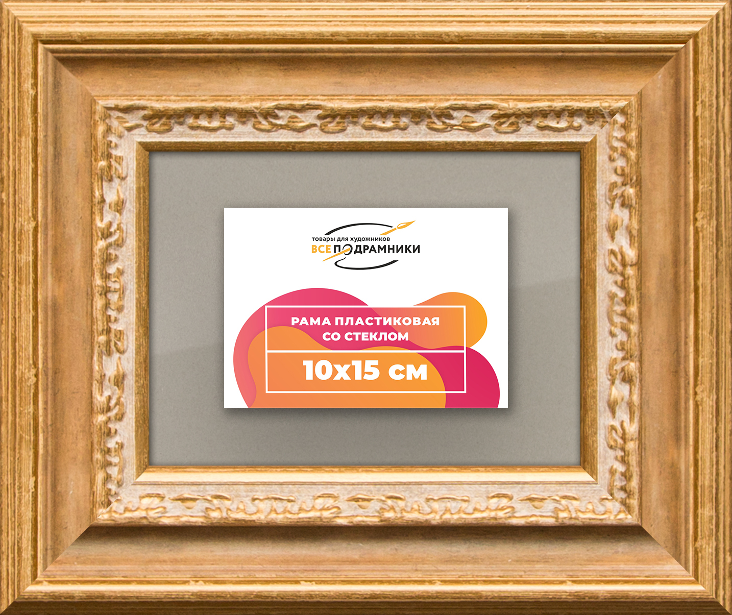 Пластиковая рама 10x15 со стеклом и задником Пластиковая рама со стеклом и задником изготовлена из безопасного и экологически чистого первичного полистирола высшей категории. Производитель: “ВсеПодрамники”. Для удобства установки к стандартному размеру добавлено 4 мм (по 2 мм с каждой стороны), чтобы ваше изделие легко поместилось в раму. 1. Основные характеристики: - Размеры рамки: 10x15 (по размеру помещаемого изображения) - Габариты изделия: 19.6x24.6 см. - Цвет: бежевый - Профиль: классический - Сечение рамы: 53x32 мм - Ширина четверти: 7 мм - Высота четверти: 10 мм 2. Комплектация: - Стекло 2мм (обычное) - Задник - Подвесная пластина – 2 шт. - Винты - Прижимы для фиксации задника 3. Назначение: - Подходит для оформления: • Картин, включая картины по номерам • Алмазных мозаик и вышивок крестом • Постеров, фотографий, икон • Паспарту, зеркал • Вышивки бисером и алмазной мозаики • Медалей, орденов, спортивных наград • Старинных часов, ключей, монет или украшений - Используется как настенная или настольная фоторамка (нет подставки) 4. Преимущества: - Универсальность: квадратные и прямоугольные форматы, размеры от 10х10 до 100х100 см - Удобство: можно повесить горизонтально или вертикально - Широкий выбор: разные профили, расцветки, с опцией со стеклом или без - Идеальный подарок: для мамы, папы, бабушки, дедушки, друзей, коллег на день рождения, Новый год, 8 марта, 23 февраля, свадьбу, новоселье или любой другой праздник 5. Применение в интерьере: - Украшение дома: подходит для изображений цветов, живописи, портретов, натюрмортов, городских пейзажей, природы - Идеально для алмазной вышивки, мозаики, фотографий или постера 6. Производство: - Страна: Россия, Санкт-Петербург - Качество: высококачественные материалы с вниманием к деталям