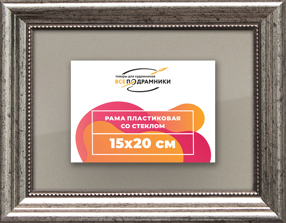 Пластиковая рама 15x20 со стеклом и задником Пластиковая рама со стеклом и задником изготовлена из безопасного и экологически чистого первичного полистирола высшей категории. Производитель: “ВсеПодрамники”. Для удобства установки к стандартному размеру добавлено 4 мм (по 2 мм с каждой стороны), чтобы ваше изделие легко поместилось в раму. 1. Основные характеристики: - Размеры рамки: 15x20 (по размеру помещаемого изображения) - Габариты изделия: 17.8x22.8 см. - Цвет: серебристый - Профиль: классический - Сечение рамы: 19x20 мм - Ширина четверти: 7 мм - Высота четверти: 10 мм 2. Комплектация: - Стекло 2мм (обычное) - Задник - Подвесная пластина – 2 шт. - Винты - Прижимы для фиксации задника 3. Назначение: - Подходит для оформления: • Картин, включая картины по номерам • Алмазных мозаик и вышивок крестом • Постеров, фотографий, икон • Паспарту, зеркал • Вышивки бисером и алмазной мозаики • Медалей, орденов, спортивных наград • Старинных часов, ключей, монет или украшений - Используется как настенная или настольная фоторамка (нет подставки) 4. Преимущества: - Универсальность: квадратные и прямоугольные форматы, размеры от 10х10 до 100х100 см - Удобство: можно повесить горизонтально или вертикально - Широкий выбор: разные профили, расцветки, с опцией со стеклом или без - Идеальный подарок: для мамы, папы, бабушки, дедушки, друзей, коллег на день рождения, Новый год, 8 марта, 23 февраля, свадьбу, новоселье или любой другой праздник 5. Применение в интерьере: - Украшение дома: подходит для изображений цветов, живописи, портретов, натюрмортов, городских пейзажей, природы - Идеально для алмазной вышивки, мозаики, фотографий или постера 6. Производство: - Страна: Россия, Санкт-Петербург - Качество: высококачественные материалы с вниманием к деталям