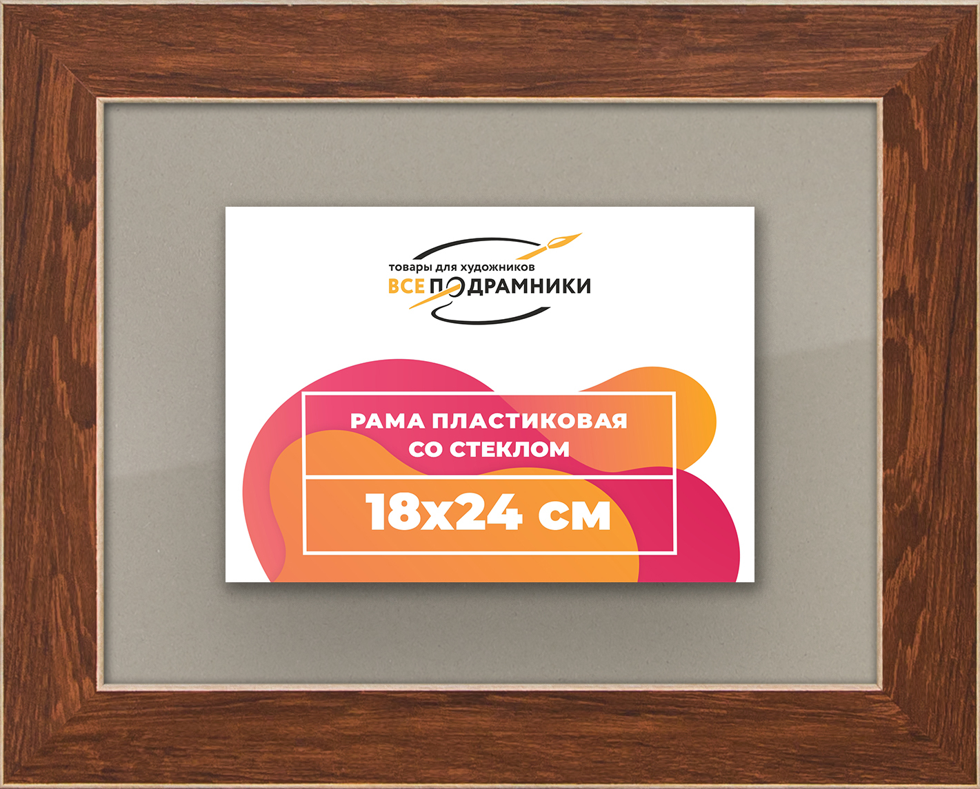 Пластиковая рама 18x24 со стеклом и задником Пластиковая рама со стеклом и задником изготовлена из безопасного и экологически чистого первичного полистирола высшей категории. Производитель: “ВсеПодрамники”. Для удобства установки к стандартному размеру добавлено 4 мм (по 2 мм с каждой стороны), чтобы ваше изделие легко поместилось в раму. 1. Основные характеристики: - Размеры рамки: 18x24 (по размеру помещаемого изображения) - Габариты изделия: 23.8x29.8 см. - Цвет: коричневый - Профиль: классический - Сечение рамы: 34x24 мм - Ширина четверти: 7 мм - Высота четверти: 10 мм 2. Комплектация: - Стекло 2мм (обычное) - Задник - Подвесная пластина – 2 шт. - Винты - Прижимы для фиксации задника 3. Назначение: - Подходит для оформления: • Картин, включая картины по номерам • Алмазных мозаик и вышивок крестом • Постеров, фотографий, икон • Паспарту, зеркал • Вышивки бисером и алмазной мозаики • Медалей, орденов, спортивных наград • Старинных часов, ключей, монет или украшений - Используется как настенная или настольная фоторамка (нет подставки) 4. Преимущества: - Универсальность: квадратные и прямоугольные форматы, размеры от 10х10 до 100х100 см - Удобство: можно повесить горизонтально или вертикально - Широкий выбор: разные профили, расцветки, с опцией со стеклом или без - Идеальный подарок: для мамы, папы, бабушки, дедушки, друзей, коллег на день рождения, Новый год, 8 марта, 23 февраля, свадьбу, новоселье или любой другой праздник 5. Применение в интерьере: - Украшение дома: подходит для изображений цветов, живописи, портретов, натюрмортов, городских пейзажей, природы - Идеально для алмазной вышивки, мозаики, фотографий или постера 6. Производство: - Страна: Россия, Санкт-Петербург - Качество: высококачественные материалы с вниманием к деталям