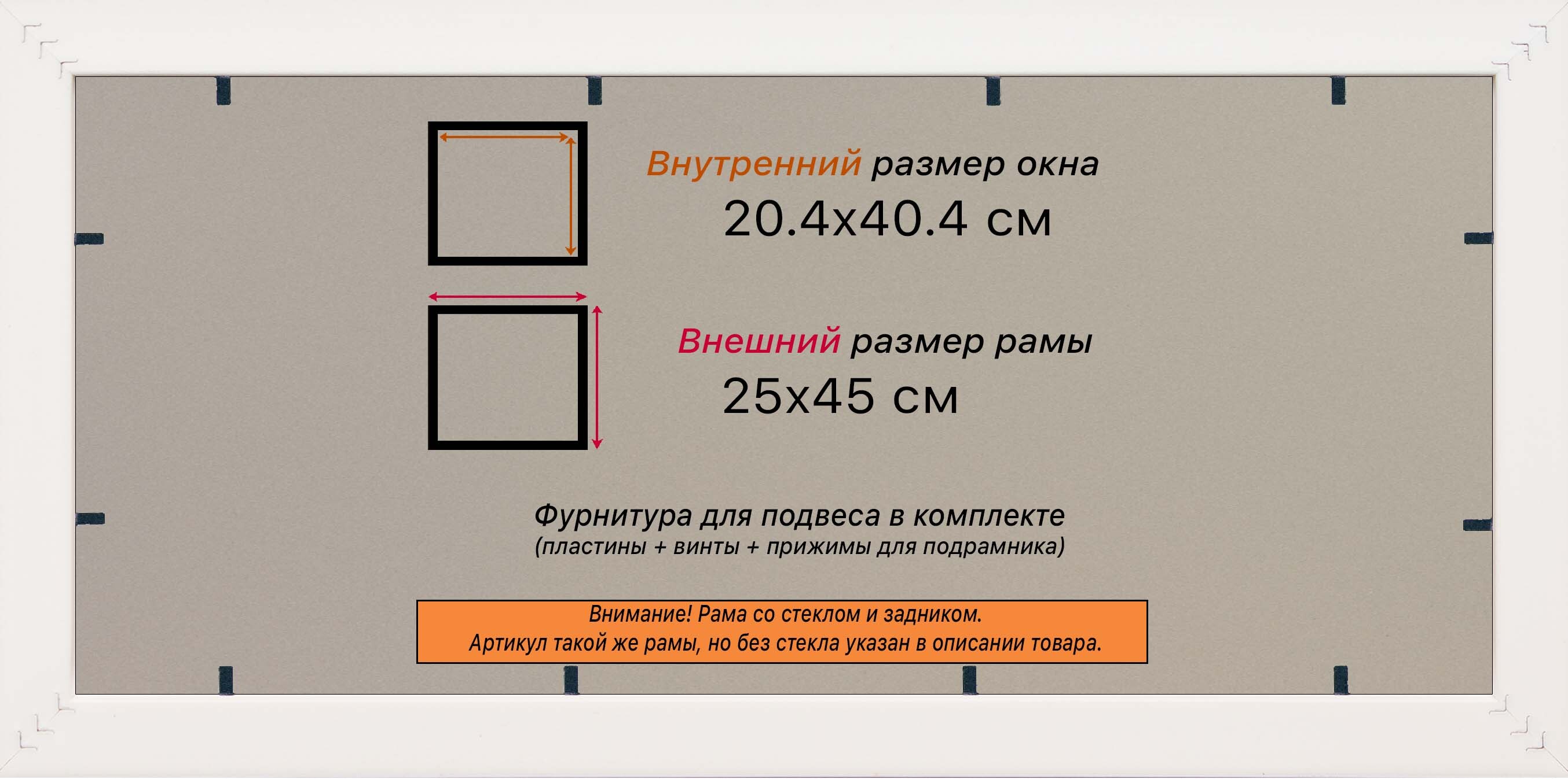 Пластиковая рама 20x40 со стеклом и задником Пластиковая рама со стеклом и задником изготовлена из безопасного и экологически чистого первичного полистирола высшей категории. Производитель: “ВсеПодрамники”. Для удобства установки к стандартному размеру добавлено 4 мм (по 2 мм с каждой стороны), чтобы ваше изделие легко поместилось в раму. 1. Основные характеристики: - Размеры рамки: 20x40 (по размеру помещаемого изображения) - Габариты изделия: 25.0x45.0 см. - Цвет: синий - Профиль: классический - Сечение рамы: 30x16 мм - Ширина четверти: 7 мм - Высота четверти: 10 мм 2. Комплектация: - Стекло 2мм (обычное) - Задник - Подвесная пластина – 2 шт. - Винты - Прижимы для фиксации задника 3. Назначение: - Подходит для оформления: • Картин, включая картины по номерам • Алмазных мозаик и вышивок крестом • Постеров, фотографий, икон • Паспарту, зеркал • Вышивки бисером и алмазной мозаики • Медалей, орденов, спортивных наград • Старинных часов, ключей, монет или украшений - Используется как настенная или настольная фоторамка (нет подставки) 4. Преимущества: - Универсальность: квадратные и прямоугольные форматы, размеры от 10х10 до 100х100 см - Удобство: можно повесить горизонтально или вертикально - Широкий выбор: разные профили, расцветки, с опцией со стеклом или без - Идеальный подарок: для мамы, папы, бабушки, дедушки, друзей, коллег на день рождения, Новый год, 8 марта, 23 февраля, свадьбу, новоселье или любой другой праздник 5. Применение в интерьере: - Украшение дома: подходит для изображений цветов, живописи, портретов, натюрмортов, городских пейзажей, природы - Идеально для алмазной вышивки, мозаики, фотографий или постера 6. Производство: - Страна: Россия, Санкт-Петербург - Качество: высококачественные материалы с вниманием к деталям