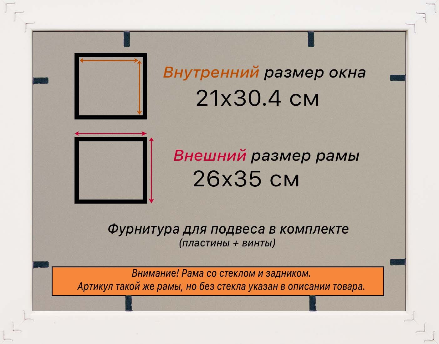 Пластиковая рама 21x30 со стеклом и задником Пластиковая рама со стеклом и задником изготовлена из безопасного и экологически чистого первичного полистирола высшей категории. Производитель: “ВсеПодрамники”. Для удобства установки к стандартному размеру добавлено 4 мм (по 2 мм с каждой стороны), чтобы ваше изделие легко поместилось в раму. 1. Основные характеристики: - Размеры рамки: 21x30 (по размеру помещаемого изображения) - Габариты изделия: 26.0x35.0 см. - Цвет: золотистый - Профиль: классический - Сечение рамы: 30x16 мм - Ширина четверти: 7 мм - Высота четверти: 10 мм 2. Комплектация: - Стекло 2мм (обычное) - Задник - Подвесная пластина – 2 шт. - Винты - Прижимы для фиксации задника 3. Назначение: - Подходит для оформления: • Картин, включая картины по номерам • Алмазных мозаик и вышивок крестом • Постеров, фотографий, икон • Паспарту, зеркал • Вышивки бисером и алмазной мозаики • Медалей, орденов, спортивных наград • Старинных часов, ключей, монет или украшений - Используется как настенная или настольная фоторамка (нет подставки) 4. Преимущества: - Универсальность: квадратные и прямоугольные форматы, размеры от 10х10 до 100х100 см - Удобство: можно повесить горизонтально или вертикально - Широкий выбор: разные профили, расцветки, с опцией со стеклом или без - Идеальный подарок: для мамы, папы, бабушки, дедушки, друзей, коллег на день рождения, Новый год, 8 марта, 23 февраля, свадьбу, новоселье или любой другой праздник 5. Применение в интерьере: - Украшение дома: подходит для изображений цветов, живописи, портретов, натюрмортов, городских пейзажей, природы - Идеально для алмазной вышивки, мозаики, фотографий или постера 6. Производство: - Страна: Россия, Санкт-Петербург - Качество: высококачественные материалы с вниманием к деталям