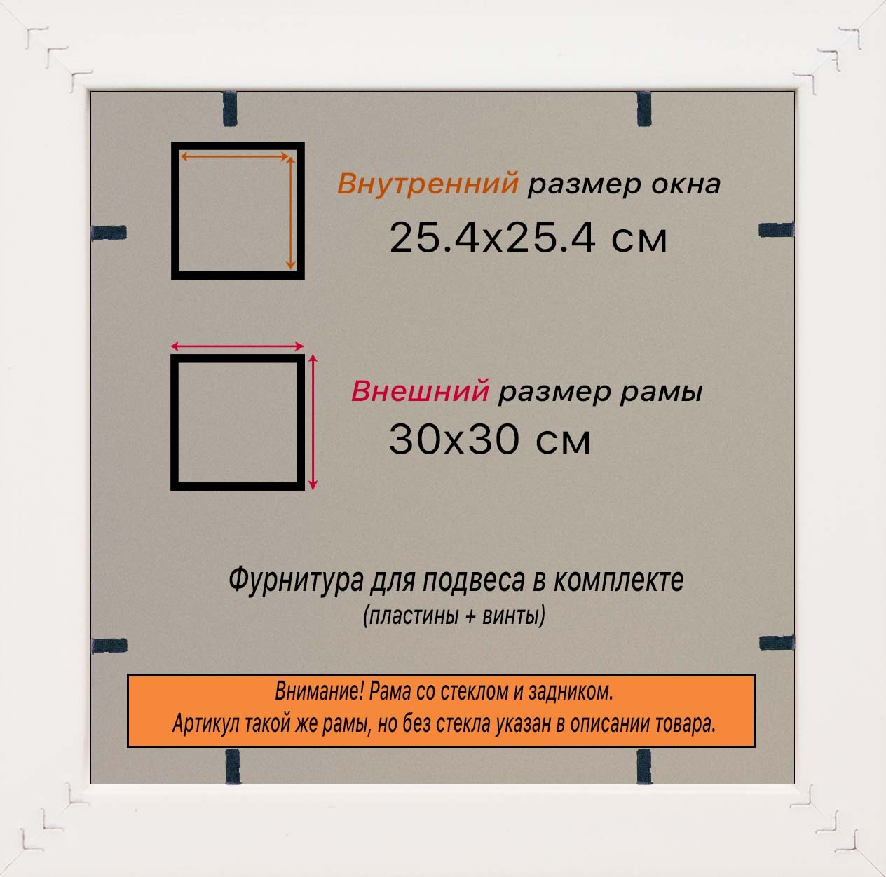 Пластиковая рама 25x25 со стеклом и задником Пластиковая рама со стеклом и задником изготовлена из безопасного и экологически чистого первичного полистирола высшей категории. Производитель: “ВсеПодрамники”. Для удобства установки к стандартному размеру добавлено 4 мм (по 2 мм с каждой стороны), чтобы ваше изделие легко поместилось в раму. 1. Основные характеристики: - Размеры рамки: 25x25 (по размеру помещаемого изображения) - Габариты изделия: 30.0x30.0 см. - Цвет: зеленый - Профиль: классический - Сечение рамы: 30x16 мм - Ширина четверти: 7 мм - Высота четверти: 10 мм 2. Комплектация: - Стекло 2мм (обычное) - Задник - Подвесная пластина – 2 шт. - Винты - Прижимы для фиксации задника 3. Назначение: - Подходит для оформления: • Картин, включая картины по номерам • Алмазных мозаик и вышивок крестом • Постеров, фотографий, икон • Паспарту, зеркал • Вышивки бисером и алмазной мозаики • Медалей, орденов, спортивных наград • Старинных часов, ключей, монет или украшений - Используется как настенная или настольная фоторамка (нет подставки) 4. Преимущества: - Универсальность: квадратные и прямоугольные форматы, размеры от 10х10 до 100х100 см - Удобство: можно повесить горизонтально или вертикально - Широкий выбор: разные профили, расцветки, с опцией со стеклом или без - Идеальный подарок: для мамы, папы, бабушки, дедушки, друзей, коллег на день рождения, Новый год, 8 марта, 23 февраля, свадьбу, новоселье или любой другой праздник 5. Применение в интерьере: - Украшение дома: подходит для изображений цветов, живописи, портретов, натюрмортов, городских пейзажей, природы - Идеально для алмазной вышивки, мозаики, фотографий или постера 6. Производство: - Страна: Россия, Санкт-Петербург - Качество: высококачественные материалы с вниманием к деталям