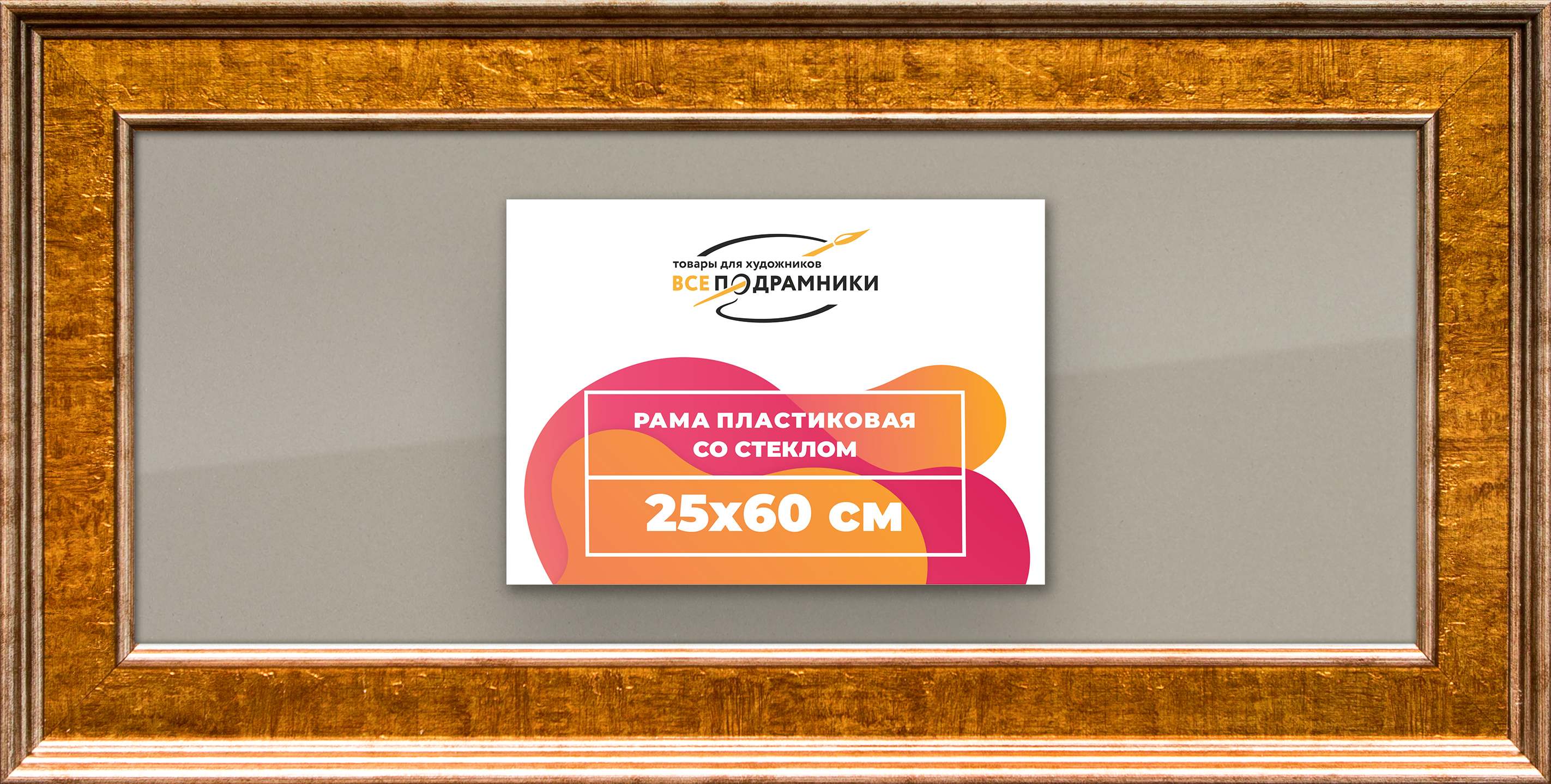 Пластиковая рама 25x60 со стеклом и задником Пластиковая рама со стеклом и задником изготовлена из безопасного и экологически чистого первичного полистирола высшей категории. Производитель: “ВсеПодрамники”. Для удобства установки к стандартному размеру добавлено 4 мм (по 2 мм с каждой стороны), чтобы ваше изделие легко поместилось в раму. 1. Основные характеристики: - Размеры рамки: 25x60 (по размеру помещаемого изображения) - Габариты изделия: 34.0x69.0 см. - Цвет: золотистый - Профиль: классический - Сечение рамы: 50x30 мм - Ширина четверти: 7 мм - Высота четверти: 10 мм 2. Комплектация: - Стекло 2мм (обычное) - Задник - Подвесная пластина – 2 шт. - Винты - Прижимы для фиксации задника 3. Назначение: - Подходит для оформления: • Картин, включая картины по номерам • Алмазных мозаик и вышивок крестом • Постеров, фотографий, икон • Паспарту, зеркал • Вышивки бисером и алмазной мозаики • Медалей, орденов, спортивных наград • Старинных часов, ключей, монет или украшений - Используется как настенная или настольная фоторамка (нет подставки) 4. Преимущества: - Универсальность: квадратные и прямоугольные форматы, размеры от 10х10 до 100х100 см - Удобство: можно повесить горизонтально или вертикально - Широкий выбор: разные профили, расцветки, с опцией со стеклом или без - Идеальный подарок: для мамы, папы, бабушки, дедушки, друзей, коллег на день рождения, Новый год, 8 марта, 23 февраля, свадьбу, новоселье или любой другой праздник 5. Применение в интерьере: - Украшение дома: подходит для изображений цветов, живописи, портретов, натюрмортов, городских пейзажей, природы - Идеально для алмазной вышивки, мозаики, фотографий или постера 6. Производство: - Страна: Россия, Санкт-Петербург - Качество: высококачественные материалы с вниманием к деталям