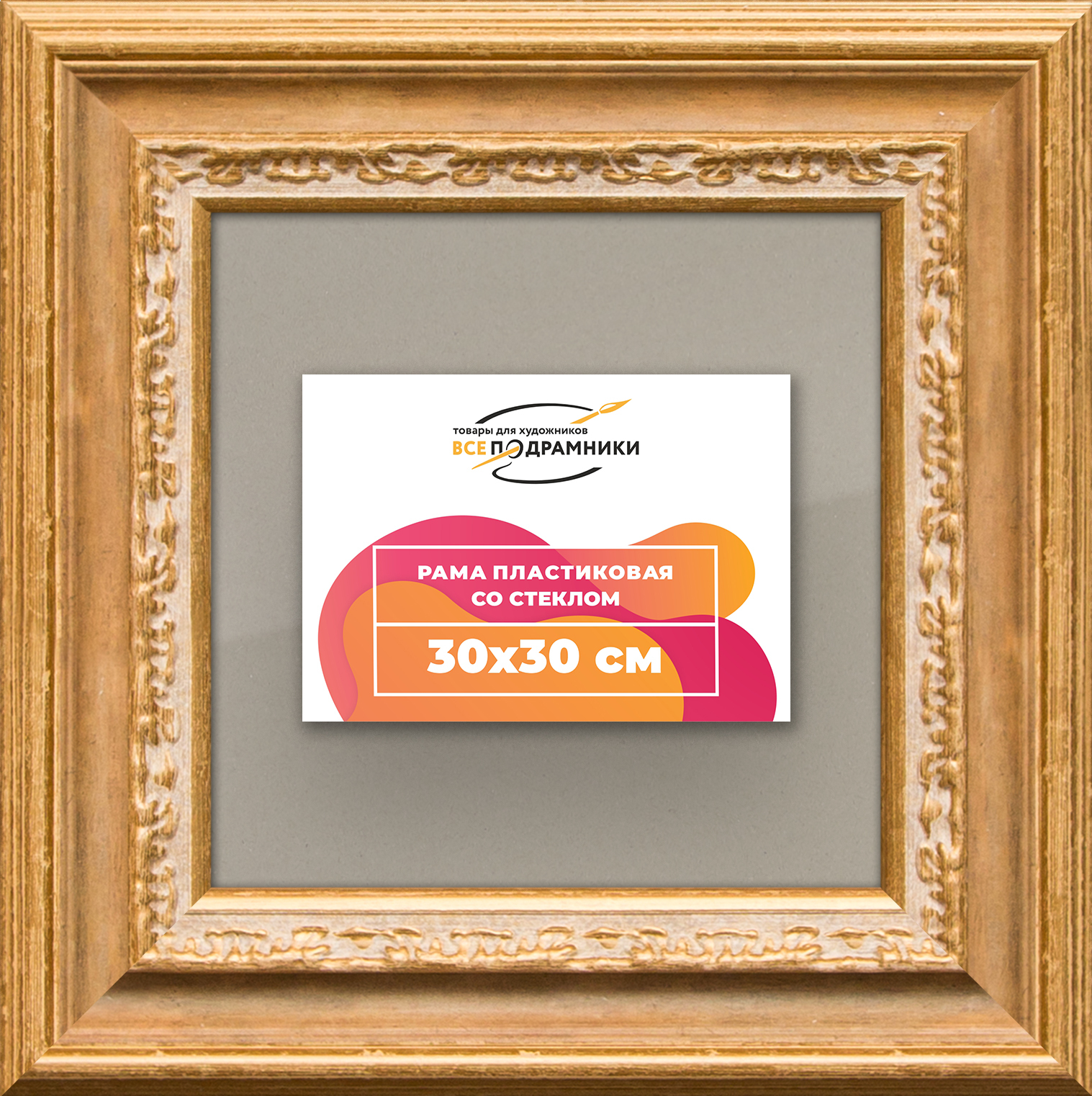 Пластиковая рама 30x30 со стеклом и задником Пластиковая рама со стеклом и задником изготовлена из безопасного и экологически чистого первичного полистирола высшей категории. Производитель: “ВсеПодрамники”. Для удобства установки к стандартному размеру добавлено 4 мм (по 2 мм с каждой стороны), чтобы ваше изделие легко поместилось в раму. 1. Основные характеристики: - Размеры рамки: 30x30 (по размеру помещаемого изображения) - Габариты изделия: 39.6x39.6 см. - Цвет: бежевый - Профиль: классический - Сечение рамы: 53x32 мм - Ширина четверти: 7 мм - Высота четверти: 10 мм 2. Комплектация: - Стекло 2мм (обычное) - Задник - Подвесная пластина – 2 шт. - Винты - Прижимы для фиксации задника 3. Назначение: - Подходит для оформления: • Картин, включая картины по номерам • Алмазных мозаик и вышивок крестом • Постеров, фотографий, икон • Паспарту, зеркал • Вышивки бисером и алмазной мозаики • Медалей, орденов, спортивных наград • Старинных часов, ключей, монет или украшений - Используется как настенная или настольная фоторамка (нет подставки) 4. Преимущества: - Универсальность: квадратные и прямоугольные форматы, размеры от 10х10 до 100х100 см - Удобство: можно повесить горизонтально или вертикально - Широкий выбор: разные профили, расцветки, с опцией со стеклом или без - Идеальный подарок: для мамы, папы, бабушки, дедушки, друзей, коллег на день рождения, Новый год, 8 марта, 23 февраля, свадьбу, новоселье или любой другой праздник 5. Применение в интерьере: - Украшение дома: подходит для изображений цветов, живописи, портретов, натюрмортов, городских пейзажей, природы - Идеально для алмазной вышивки, мозаики, фотографий или постера 6. Производство: - Страна: Россия, Санкт-Петербург - Качество: высококачественные материалы с вниманием к деталям