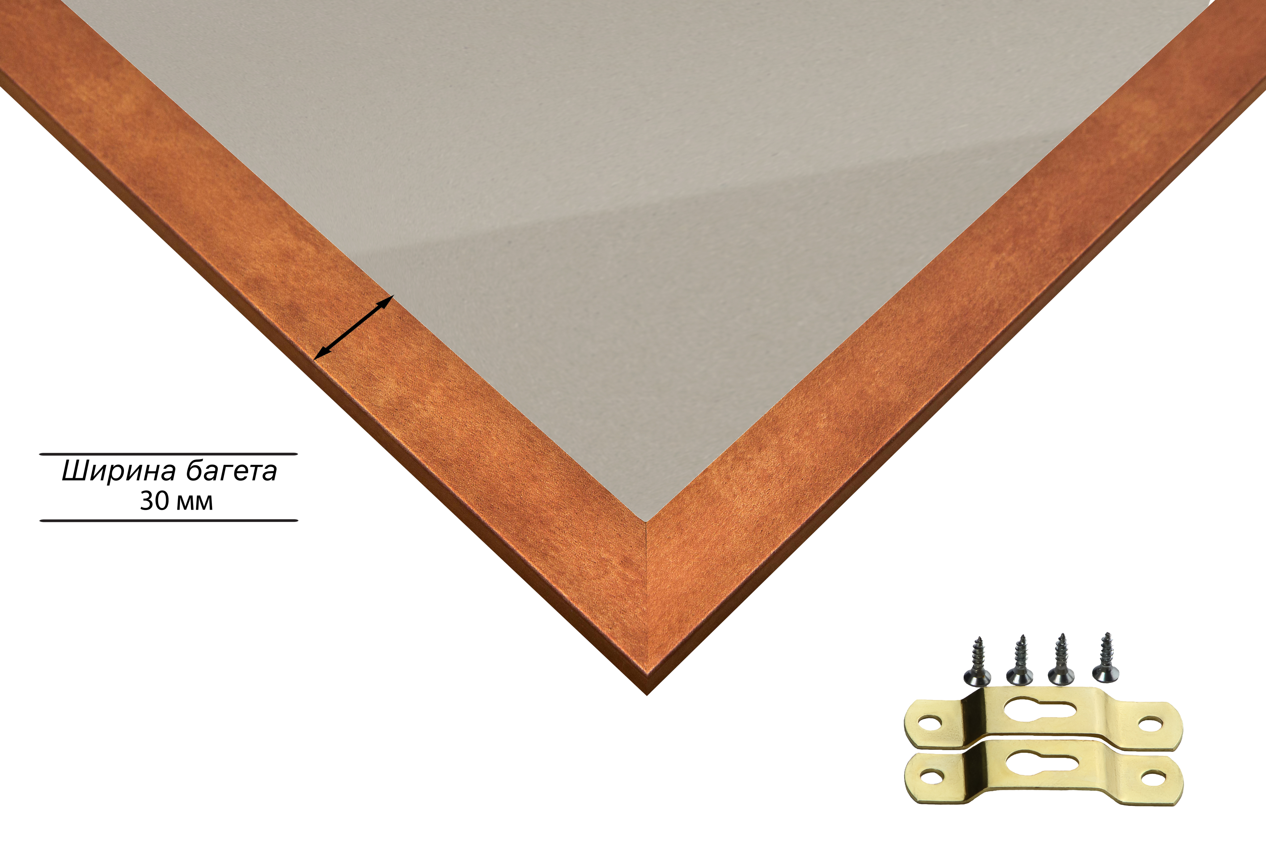 Пластиковая рама 35x55 со стеклом и задником Пластиковая рама со стеклом и задником изготовлена из безопасного и экологически чистого первичного полистирола высшей категории. Производитель: “ВсеПодрамники”. Для удобства установки к стандартному размеру добавлено 4 мм (по 2 мм с каждой стороны), чтобы ваше изделие легко поместилось в раму. 1. Основные характеристики: - Размеры рамки: 35x55 (по размеру помещаемого изображения) - Габариты изделия: 40.0x60.0 см. - Цвет: медь - Профиль: классический - Сечение рамы: 30x16 мм - Ширина четверти: 7 мм - Высота четверти: 10 мм 2. Комплектация: - Стекло 2мм (обычное) - Задник - Подвесная пластина – 2 шт. - Винты - Прижимы для фиксации задника 3. Назначение: - Подходит для оформления: • Картин, включая картины по номерам • Алмазных мозаик и вышивок крестом • Постеров, фотографий, икон • Паспарту, зеркал • Вышивки бисером и алмазной мозаики • Медалей, орденов, спортивных наград • Старинных часов, ключей, монет или украшений - Используется как настенная или настольная фоторамка (нет подставки) 4. Преимущества: - Универсальность: квадратные и прямоугольные форматы, размеры от 10х10 до 100х100 см - Удобство: можно повесить горизонтально или вертикально - Широкий выбор: разные профили, расцветки, с опцией со стеклом или без - Идеальный подарок: для мамы, папы, бабушки, дедушки, друзей, коллег на день рождения, Новый год, 8 марта, 23 февраля, свадьбу, новоселье или любой другой праздник 5. Применение в интерьере: - Украшение дома: подходит для изображений цветов, живописи, портретов, натюрмортов, городских пейзажей, природы - Идеально для алмазной вышивки, мозаики, фотографий или постера 6. Производство: - Страна: Россия, Санкт-Петербург - Качество: высококачественные материалы с вниманием к деталям