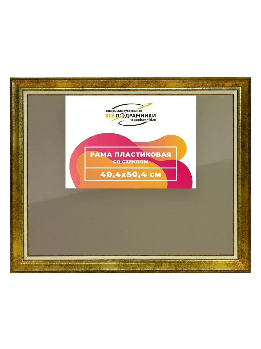 Пластиковая рама 40x50 со стеклом и задником Пластиковая рама со стеклом и задником изготовлена из безопасного и экологически чистого первичного полистирола высшей категории. Производитель: “ВсеПодрамники”. Для удобства установки к стандартному размеру добавлено 4 мм (по 2 мм с каждой стороны), чтобы ваше изделие легко поместилось в раму. 1. Основные характеристики: - Размеры рамки: 40x50 (по размеру помещаемого изображения) - Габариты изделия: 47.8x57.8 см. - Цвет: золотистый - Профиль: классический - Сечение рамы: 44x25 мм - Ширина четверти: 7 мм - Высота четверти: 10 мм 2. Комплектация: - Стекло 2мм (обычное) - Задник - Подвесная пластина – 2 шт. - Винты - Прижимы для фиксации задника 3. Назначение: - Подходит для оформления: • Картин, включая картины по номерам • Алмазных мозаик и вышивок крестом • Постеров, фотографий, икон • Паспарту, зеркал • Вышивки бисером и алмазной мозаики • Медалей, орденов, спортивных наград • Старинных часов, ключей, монет или украшений - Используется как настенная или настольная фоторамка (нет подставки) 4. Преимущества: - Универсальность: квадратные и прямоугольные форматы, размеры от 10х10 до 100х100 см - Удобство: можно повесить горизонтально или вертикально - Широкий выбор: разные профили, расцветки, с опцией со стеклом или без - Идеальный подарок: для мамы, папы, бабушки, дедушки, друзей, коллег на день рождения, Новый год, 8 марта, 23 февраля, свадьбу, новоселье или любой другой праздник 5. Применение в интерьере: - Украшение дома: подходит для изображений цветов, живописи, портретов, натюрмортов, городских пейзажей, природы - Идеально для алмазной вышивки, мозаики, фотографий или постера 6. Производство: - Страна: Россия, Санкт-Петербург - Качество: высококачественные материалы с вниманием к деталям