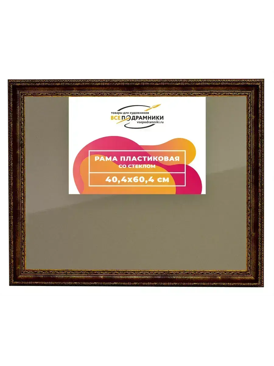 Пластиковая рама 40x60 со стеклом и задником Пластиковая рама со стеклом и задником изготовлена из безопасного и экологически чистого первичного полистирола высшей категории. Производитель: “ВсеПодрамники”. Для удобства установки к стандартному размеру добавлено 4 мм (по 2 мм с каждой стороны), чтобы ваше изделие легко поместилось в раму. 1. Основные характеристики: - Размеры рамки: 40x60 (по размеру помещаемого изображения) - Габариты изделия: 46.8x66.8 см. - Цвет: коричневый - Профиль: классический - Сечение рамы: 39x29 мм - Ширина четверти: 7 мм - Высота четверти: 10 мм 2. Комплектация: - Стекло 2мм (обычное) - Задник - Подвесная пластина – 2 шт. - Винты - Прижимы для фиксации задника 3. Назначение: - Подходит для оформления: • Картин, включая картины по номерам • Алмазных мозаик и вышивок крестом • Постеров, фотографий, икон • Паспарту, зеркал • Вышивки бисером и алмазной мозаики • Медалей, орденов, спортивных наград • Старинных часов, ключей, монет или украшений - Используется как настенная или настольная фоторамка (нет подставки) 4. Преимущества: - Универсальность: квадратные и прямоугольные форматы, размеры от 10х10 до 100х100 см - Удобство: можно повесить горизонтально или вертикально - Широкий выбор: разные профили, расцветки, с опцией со стеклом или без - Идеальный подарок: для мамы, папы, бабушки, дедушки, друзей, коллег на день рождения, Новый год, 8 марта, 23 февраля, свадьбу, новоселье или любой другой праздник 5. Применение в интерьере: - Украшение дома: подходит для изображений цветов, живописи, портретов, натюрмортов, городских пейзажей, природы - Идеально для алмазной вышивки, мозаики, фотографий или постера 6. Производство: - Страна: Россия, Санкт-Петербург - Качество: высококачественные материалы с вниманием к деталям