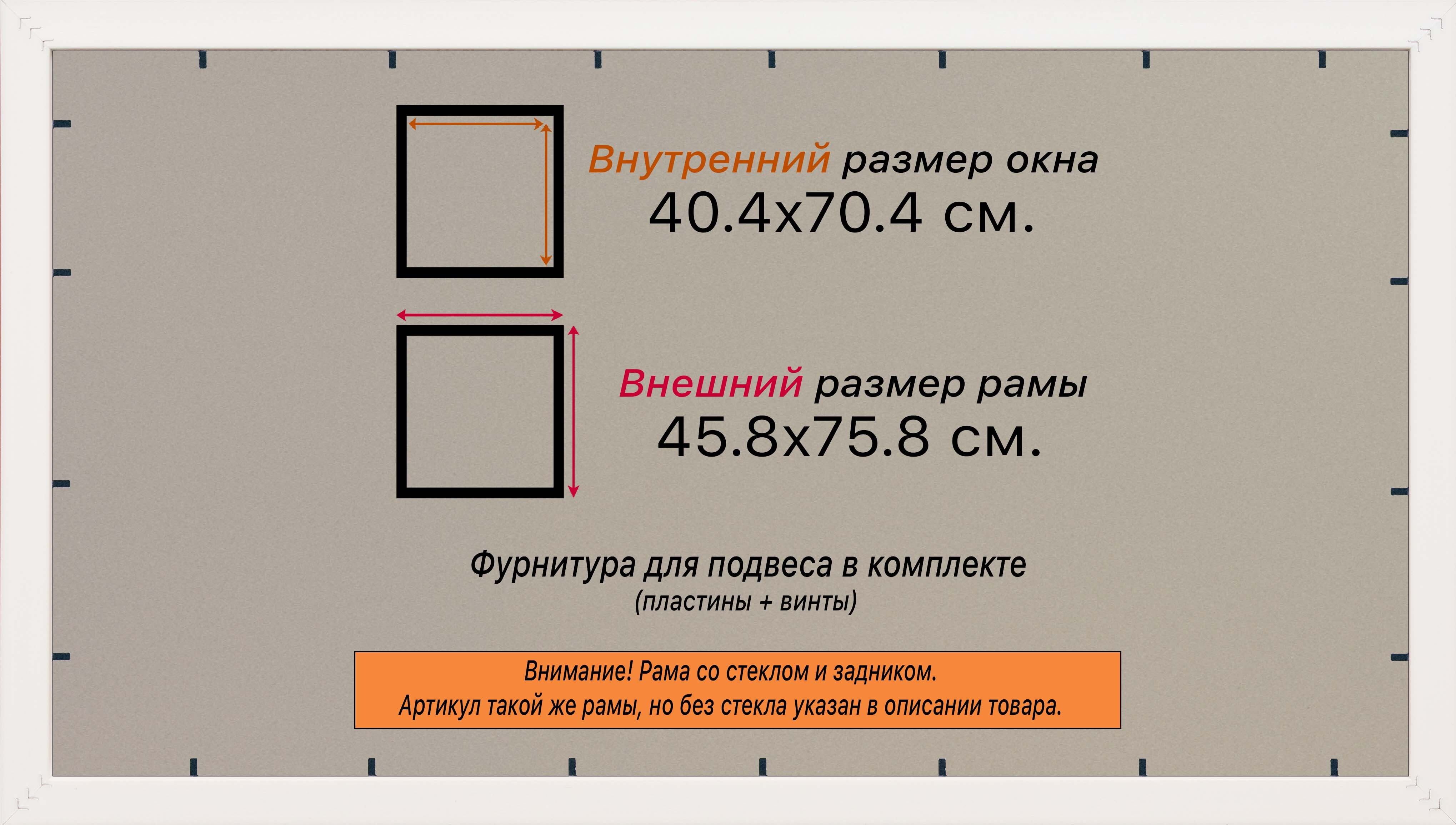 Пластиковая рама 40x70 со стеклом и задником Пластиковая рама со стеклом и задником изготовлена из безопасного и экологически чистого первичного полистирола высшей категории. Производитель: “ВсеПодрамники”. Для удобства установки к стандартному размеру добавлено 4 мм (по 2 мм с каждой стороны), чтобы ваше изделие легко поместилось в раму. 1. Основные характеристики: - Размеры рамки: 40x70 (по размеру помещаемого изображения) - Габариты изделия: 45.8x75.8 см. - Цвет: кремовый - Профиль: классический - Сечение рамы: 34x24 мм - Ширина четверти: 7 мм - Высота четверти: 10 мм 2. Комплектация: - Стекло 2мм (обычное) - Задник - Подвесная пластина – 2 шт. - Винты - Прижимы для фиксации задника 3. Назначение: - Подходит для оформления: • Картин, включая картины по номерам • Алмазных мозаик и вышивок крестом • Постеров, фотографий, икон • Паспарту, зеркал • Вышивки бисером и алмазной мозаики • Медалей, орденов, спортивных наград • Старинных часов, ключей, монет или украшений - Используется как настенная или настольная фоторамка (нет подставки) 4. Преимущества: - Универсальность: квадратные и прямоугольные форматы, размеры от 10х10 до 100х100 см - Удобство: можно повесить горизонтально или вертикально - Широкий выбор: разные профили, расцветки, с опцией со стеклом или без - Идеальный подарок: для мамы, папы, бабушки, дедушки, друзей, коллег на день рождения, Новый год, 8 марта, 23 февраля, свадьбу, новоселье или любой другой праздник 5. Применение в интерьере: - Украшение дома: подходит для изображений цветов, живописи, портретов, натюрмортов, городских пейзажей, природы - Идеально для алмазной вышивки, мозаики, фотографий или постера 6. Производство: - Страна: Россия, Санкт-Петербург - Качество: высококачественные материалы с вниманием к деталям