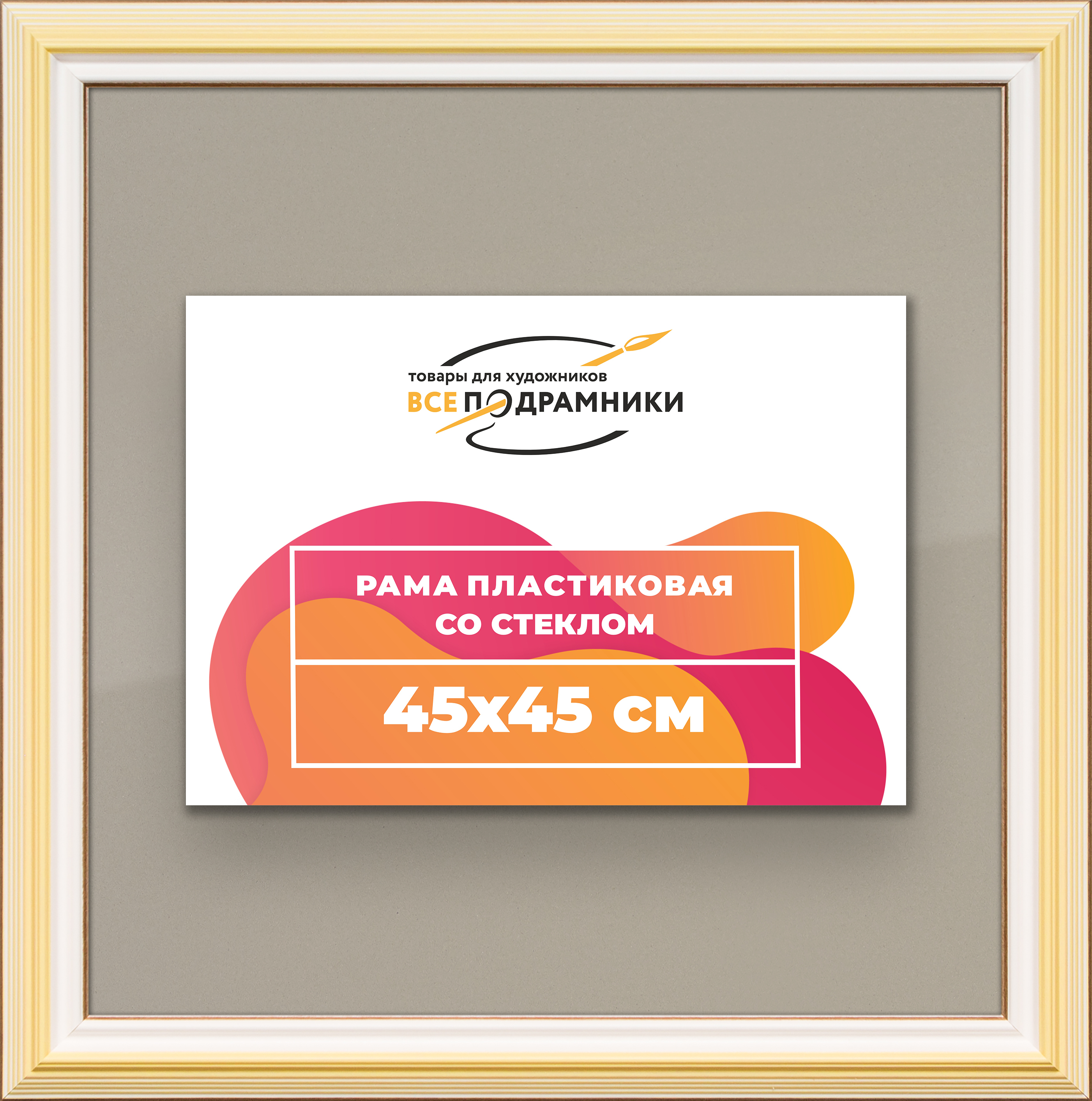 Пластиковая рама 45x45 со стеклом и задником Пластиковая рама со стеклом и задником изготовлена из безопасного и экологически чистого первичного полистирола высшей категории. Производитель: “ВсеПодрамники”. Для удобства установки к стандартному размеру добавлено 4 мм (по 2 мм с каждой стороны), чтобы ваше изделие легко поместилось в раму. 1. Основные характеристики: - Размеры рамки: 45x45 (по размеру помещаемого изображения) - Габариты изделия: 51.8x51.8 см. - Цвет: желтый - Профиль: классический - Сечение рамы: 39x22 мм - Ширина четверти: 7 мм - Высота четверти: 10 мм 2. Комплектация: - Стекло 2мм (обычное) - Задник - Подвесная пластина – 2 шт. - Винты - Прижимы для фиксации задника 3. Назначение: - Подходит для оформления: • Картин, включая картины по номерам • Алмазных мозаик и вышивок крестом • Постеров, фотографий, икон • Паспарту, зеркал • Вышивки бисером и алмазной мозаики • Медалей, орденов, спортивных наград • Старинных часов, ключей, монет или украшений - Используется как настенная или настольная фоторамка (нет подставки) 4. Преимущества: - Универсальность: квадратные и прямоугольные форматы, размеры от 10х10 до 100х100 см - Удобство: можно повесить горизонтально или вертикально - Широкий выбор: разные профили, расцветки, с опцией со стеклом или без - Идеальный подарок: для мамы, папы, бабушки, дедушки, друзей, коллег на день рождения, Новый год, 8 марта, 23 февраля, свадьбу, новоселье или любой другой праздник 5. Применение в интерьере: - Украшение дома: подходит для изображений цветов, живописи, портретов, натюрмортов, городских пейзажей, природы - Идеально для алмазной вышивки, мозаики, фотографий или постера 6. Производство: - Страна: Россия, Санкт-Петербург - Качество: высококачественные материалы с вниманием к деталям