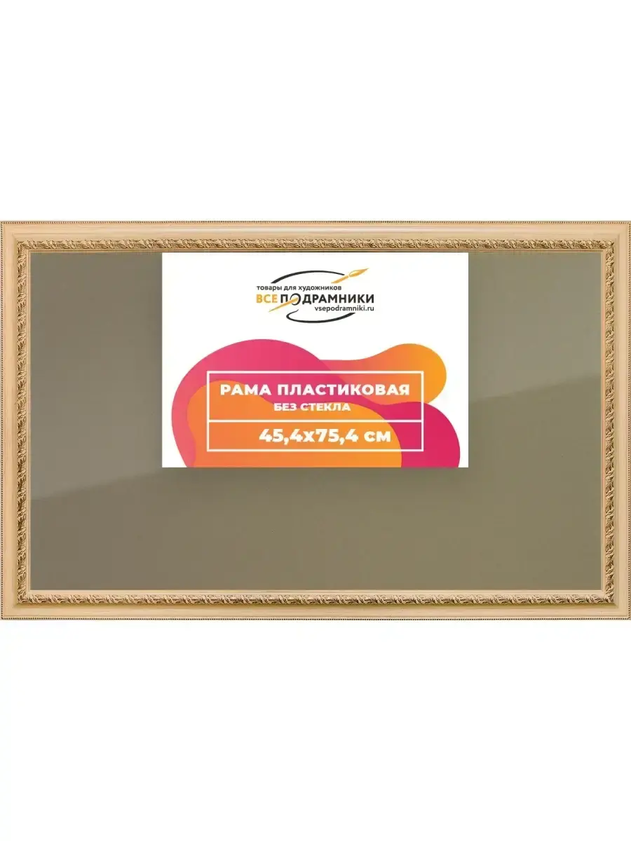 Пластиковая рама 45x75 со стеклом и задником Пластиковая рама со стеклом и задником изготовлена из безопасного и экологически чистого первичного полистирола высшей категории. Производитель: “ВсеПодрамники”. Для удобства установки к стандартному размеру добавлено 4 мм (по 2 мм с каждой стороны), чтобы ваше изделие легко поместилось в раму. 1. Основные характеристики: - Размеры рамки: 45x75 (по размеру помещаемого изображения) - Габариты изделия: 53.6x83.6 см. - Цвет: кремовый - Профиль: классический - Сечение рамы: 48x27 мм - Ширина четверти: 7 мм - Высота четверти: 10 мм 2. Комплектация: - Стекло 2мм (обычное) - Задник - Подвесная пластина – 2 шт. - Винты - Прижимы для фиксации задника 3. Назначение: - Подходит для оформления: • Картин, включая картины по номерам • Алмазных мозаик и вышивок крестом • Постеров, фотографий, икон • Паспарту, зеркал • Вышивки бисером и алмазной мозаики • Медалей, орденов, спортивных наград • Старинных часов, ключей, монет или украшений - Используется как настенная или настольная фоторамка (нет подставки) 4. Преимущества: - Универсальность: квадратные и прямоугольные форматы, размеры от 10х10 до 100х100 см - Удобство: можно повесить горизонтально или вертикально - Широкий выбор: разные профили, расцветки, с опцией со стеклом или без - Идеальный подарок: для мамы, папы, бабушки, дедушки, друзей, коллег на день рождения, Новый год, 8 марта, 23 февраля, свадьбу, новоселье или любой другой праздник 5. Применение в интерьере: - Украшение дома: подходит для изображений цветов, живописи, портретов, натюрмортов, городских пейзажей, природы - Идеально для алмазной вышивки, мозаики, фотографий или постера 6. Производство: - Страна: Россия, Санкт-Петербург - Качество: высококачественные материалы с вниманием к деталям