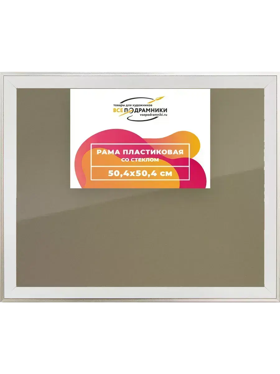Пластиковая рама 50x50 со стеклом и задником Пластиковая рама со стеклом и задником изготовлена из безопасного и экологически чистого первичного полистирола высшей категории. Производитель: “ВсеПодрамники”. Для удобства установки к стандартному размеру добавлено 4 мм (по 2 мм с каждой стороны), чтобы ваше изделие легко поместилось в раму. 1. Основные характеристики: - Размеры рамки: 50x50 (по размеру помещаемого изображения) - Габариты изделия: 56.0x56.0 см. - Цвет: белый - Профиль: классический - Сечение рамы: 35x15 мм - Ширина четверти: 7 мм - Высота четверти: 10 мм 2. Комплектация: - Стекло 2мм (обычное) - Задник - Подвесная пластина – 2 шт. - Винты - Прижимы для фиксации задника 3. Назначение: - Подходит для оформления: • Картин, включая картины по номерам • Алмазных мозаик и вышивок крестом • Постеров, фотографий, икон • Паспарту, зеркал • Вышивки бисером и алмазной мозаики • Медалей, орденов, спортивных наград • Старинных часов, ключей, монет или украшений - Используется как настенная или настольная фоторамка (нет подставки) 4. Преимущества: - Универсальность: квадратные и прямоугольные форматы, размеры от 10х10 до 100х100 см - Удобство: можно повесить горизонтально или вертикально - Широкий выбор: разные профили, расцветки, с опцией со стеклом или без - Идеальный подарок: для мамы, папы, бабушки, дедушки, друзей, коллег на день рождения, Новый год, 8 марта, 23 февраля, свадьбу, новоселье или любой другой праздник 5. Применение в интерьере: - Украшение дома: подходит для изображений цветов, живописи, портретов, натюрмортов, городских пейзажей, природы - Идеально для алмазной вышивки, мозаики, фотографий или постера 6. Производство: - Страна: Россия, Санкт-Петербург - Качество: высококачественные материалы с вниманием к деталям