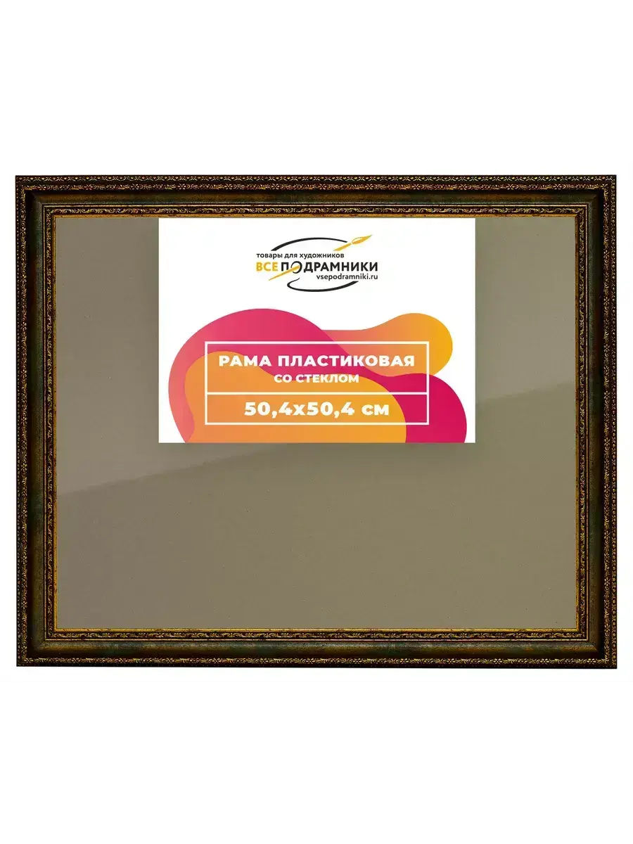 Пластиковая рама 50x50 со стеклом и задником Пластиковая рама со стеклом и задником изготовлена из безопасного и экологически чистого первичного полистирола высшей категории. Производитель: “ВсеПодрамники”. Для удобства установки к стандартному размеру добавлено 4 мм (по 2 мм с каждой стороны), чтобы ваше изделие легко поместилось в раму. 1. Основные характеристики: - Размеры рамки: 50x50 (по размеру помещаемого изображения) - Габариты изделия: 56.8x56.8 см. - Цвет: зеленый - Профиль: классический - Сечение рамы: 39x29 мм - Ширина четверти: 7 мм - Высота четверти: 10 мм 2. Комплектация: - Стекло 2мм (обычное) - Задник - Подвесная пластина – 2 шт. - Винты - Прижимы для фиксации задника 3. Назначение: - Подходит для оформления: • Картин, включая картины по номерам • Алмазных мозаик и вышивок крестом • Постеров, фотографий, икон • Паспарту, зеркал • Вышивки бисером и алмазной мозаики • Медалей, орденов, спортивных наград • Старинных часов, ключей, монет или украшений - Используется как настенная или настольная фоторамка (нет подставки) 4. Преимущества: - Универсальность: квадратные и прямоугольные форматы, размеры от 10х10 до 100х100 см - Удобство: можно повесить горизонтально или вертикально - Широкий выбор: разные профили, расцветки, с опцией со стеклом или без - Идеальный подарок: для мамы, папы, бабушки, дедушки, друзей, коллег на день рождения, Новый год, 8 марта, 23 февраля, свадьбу, новоселье или любой другой праздник 5. Применение в интерьере: - Украшение дома: подходит для изображений цветов, живописи, портретов, натюрмортов, городских пейзажей, природы - Идеально для алмазной вышивки, мозаики, фотографий или постера 6. Производство: - Страна: Россия, Санкт-Петербург - Качество: высококачественные материалы с вниманием к деталям