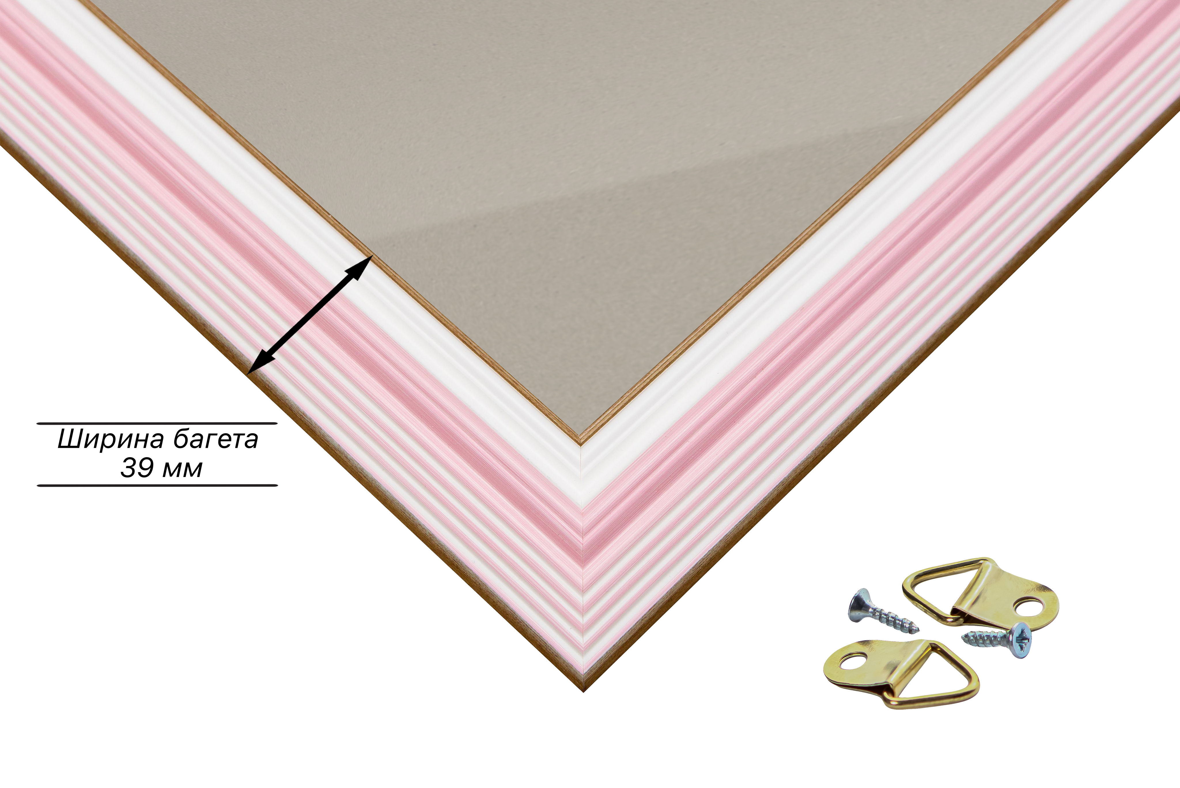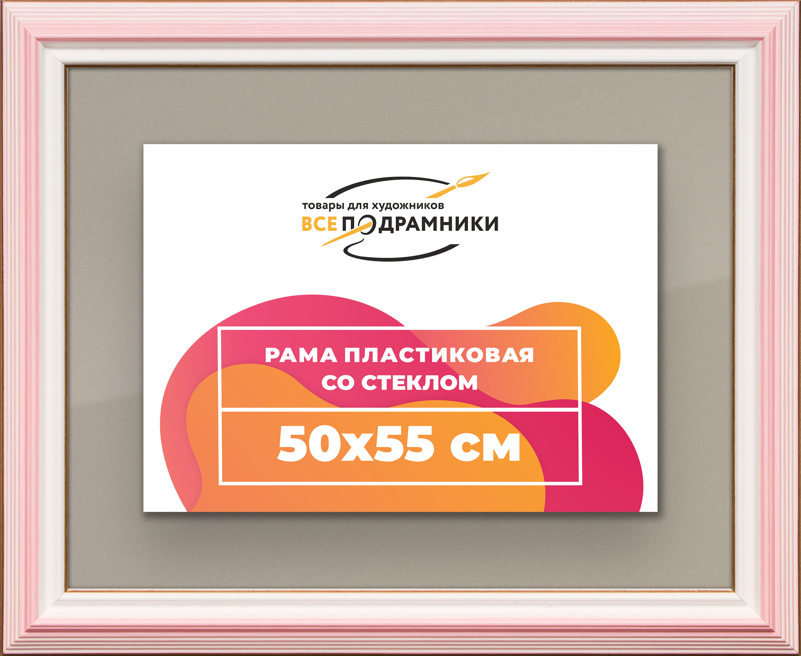 Пластиковая рама 50x55 со стеклом и задником Пластиковая рама со стеклом и задником изготовлена из безопасного и экологически чистого первичного полистирола высшей категории. Производитель: “ВсеПодрамники”. Для удобства установки к стандартному размеру добавлено 4 мм (по 2 мм с каждой стороны), чтобы ваше изделие легко поместилось в раму. 1. Основные характеристики: - Размеры рамки: 50x55 (по размеру помещаемого изображения) - Габариты изделия: 56.8x61.8 см. - Цвет: светло-розовый - Профиль: классический - Сечение рамы: 39x22 мм - Ширина четверти: 7 мм - Высота четверти: 10 мм 2. Комплектация: - Стекло 2мм (обычное) - Задник - Подвесная пластина – 2 шт. - Винты - Прижимы для фиксации задника 3. Назначение: - Подходит для оформления: • Картин, включая картины по номерам • Алмазных мозаик и вышивок крестом • Постеров, фотографий, икон • Паспарту, зеркал • Вышивки бисером и алмазной мозаики • Медалей, орденов, спортивных наград • Старинных часов, ключей, монет или украшений - Используется как настенная или настольная фоторамка (нет подставки) 4. Преимущества: - Универсальность: квадратные и прямоугольные форматы, размеры от 10х10 до 100х100 см - Удобство: можно повесить горизонтально или вертикально - Широкий выбор: разные профили, расцветки, с опцией со стеклом или без - Идеальный подарок: для мамы, папы, бабушки, дедушки, друзей, коллег на день рождения, Новый год, 8 марта, 23 февраля, свадьбу, новоселье или любой другой праздник 5. Применение в интерьере: - Украшение дома: подходит для изображений цветов, живописи, портретов, натюрмортов, городских пейзажей, природы - Идеально для алмазной вышивки, мозаики, фотографий или постера 6. Производство: - Страна: Россия, Санкт-Петербург - Качество: высококачественные материалы с вниманием к деталям