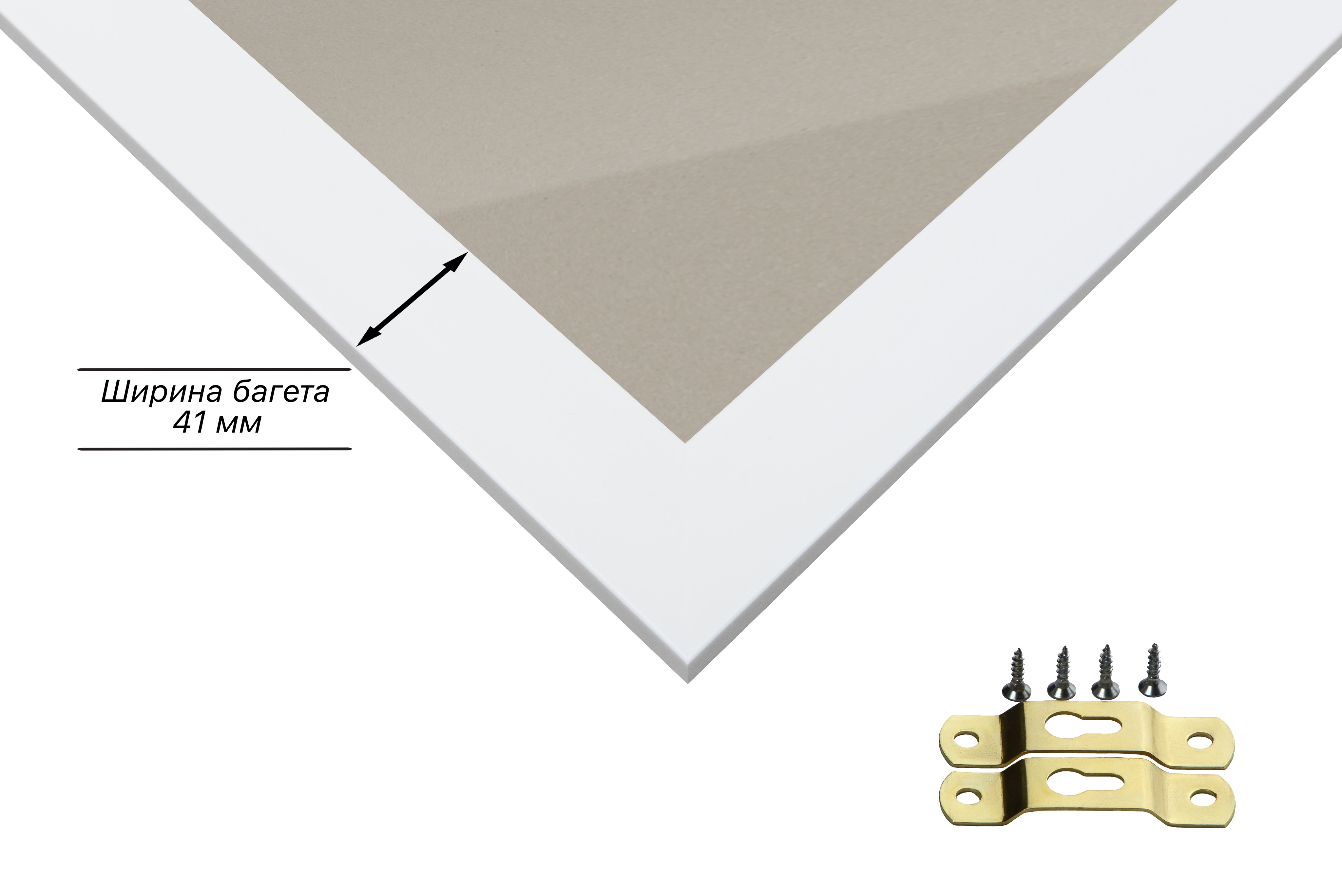 Пластиковая рама 55x80 со стеклом и задником Пластиковая рама со стеклом и задником изготовлена из безопасного и экологически чистого первичного полистирола высшей категории. Производитель: “ВсеПодрамники”. Для удобства установки к стандартному размеру добавлено 4 мм (по 2 мм с каждой стороны), чтобы ваше изделие легко поместилось в раму. 1. Основные характеристики: - Размеры рамки: 55x80 (по размеру помещаемого изображения) - Габариты изделия: 62.2x87.2 см. - Цвет: супер белый - Профиль: классический - Сечение рамы: 41x15 мм - Ширина четверти: 7 мм - Высота четверти: 10 мм 2. Комплектация: - Стекло 2мм (обычное) - Задник - Подвесная пластина – 2 шт. - Винты - Прижимы для фиксации задника 3. Назначение: - Подходит для оформления: • Картин, включая картины по номерам • Алмазных мозаик и вышивок крестом • Постеров, фотографий, икон • Паспарту, зеркал • Вышивки бисером и алмазной мозаики • Медалей, орденов, спортивных наград • Старинных часов, ключей, монет или украшений - Используется как настенная или настольная фоторамка (нет подставки) 4. Преимущества: - Универсальность: квадратные и прямоугольные форматы, размеры от 10х10 до 100х100 см - Удобство: можно повесить горизонтально или вертикально - Широкий выбор: разные профили, расцветки, с опцией со стеклом или без - Идеальный подарок: для мамы, папы, бабушки, дедушки, друзей, коллег на день рождения, Новый год, 8 марта, 23 февраля, свадьбу, новоселье или любой другой праздник 5. Применение в интерьере: - Украшение дома: подходит для изображений цветов, живописи, портретов, натюрмортов, городских пейзажей, природы - Идеально для алмазной вышивки, мозаики, фотографий или постера 6. Производство: - Страна: Россия, Санкт-Петербург - Качество: высококачественные материалы с вниманием к деталям