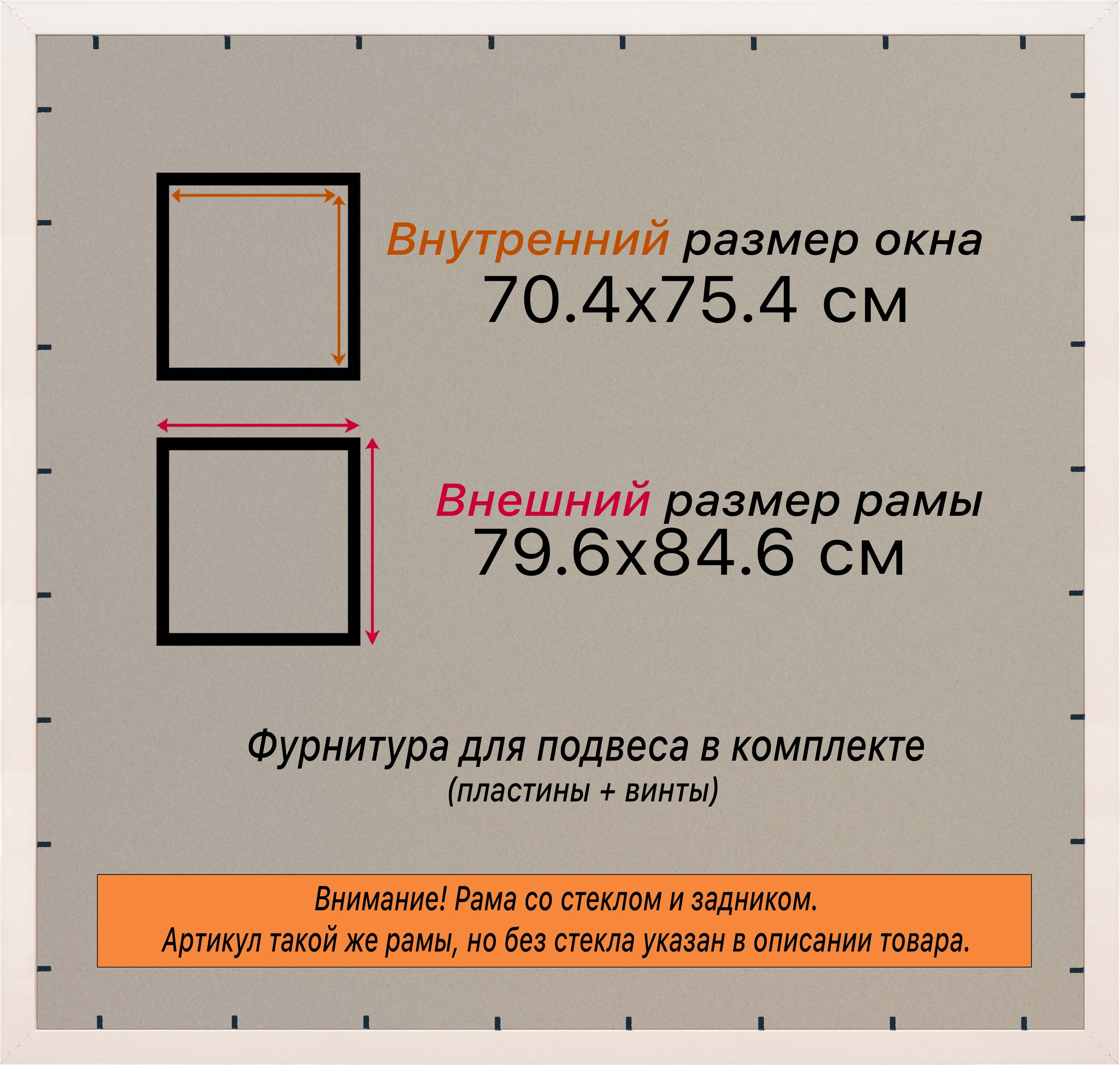 Пластиковая рама 70x75 со стеклом и задником Пластиковая рама со стеклом и задником изготовлена из безопасного и экологически чистого первичного полистирола высшей категории. Производитель: “ВсеПодрамники”. Для удобства установки к стандартному размеру добавлено 4 мм (по 2 мм с каждой стороны), чтобы ваше изделие легко поместилось в раму. 1. Основные характеристики: - Размеры рамки: 70x75 (по размеру помещаемого изображения) - Габариты изделия: 79.6x84.6 см. - Цвет: зеленый - Профиль: классический - Сечение рамы: 53x32 мм - Ширина четверти: 7 мм - Высота четверти: 10 мм 2. Комплектация: - Стекло 2мм (обычное) - Задник - Подвесная пластина – 2 шт. - Винты - Прижимы для фиксации задника 3. Назначение: - Подходит для оформления: • Картин, включая картины по номерам • Алмазных мозаик и вышивок крестом • Постеров, фотографий, икон • Паспарту, зеркал • Вышивки бисером и алмазной мозаики • Медалей, орденов, спортивных наград • Старинных часов, ключей, монет или украшений - Используется как настенная или настольная фоторамка (нет подставки) 4. Преимущества: - Универсальность: квадратные и прямоугольные форматы, размеры от 10х10 до 100х100 см - Удобство: можно повесить горизонтально или вертикально - Широкий выбор: разные профили, расцветки, с опцией со стеклом или без - Идеальный подарок: для мамы, папы, бабушки, дедушки, друзей, коллег на день рождения, Новый год, 8 марта, 23 февраля, свадьбу, новоселье или любой другой праздник 5. Применение в интерьере: - Украшение дома: подходит для изображений цветов, живописи, портретов, натюрмортов, городских пейзажей, природы - Идеально для алмазной вышивки, мозаики, фотографий или постера 6. Производство: - Страна: Россия, Санкт-Петербург - Качество: высококачественные материалы с вниманием к деталям
