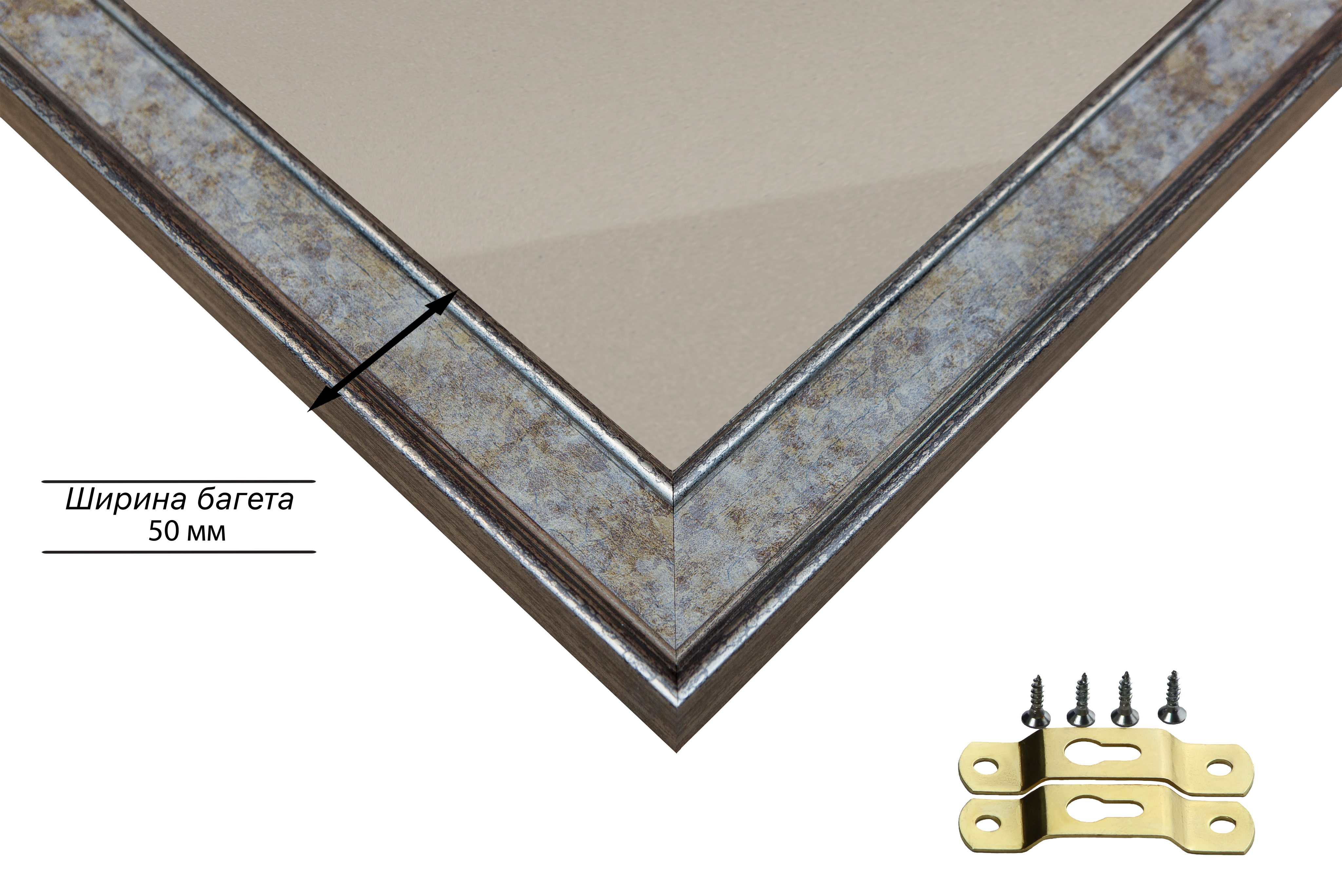 Пластиковая рама 70x80 со стеклом и задником Пластиковая рама со стеклом и задником изготовлена из безопасного и экологически чистого первичного полистирола высшей категории. Производитель: “ВсеПодрамники”. Для удобства установки к стандартному размеру добавлено 4 мм (по 2 мм с каждой стороны), чтобы ваше изделие легко поместилось в раму. 1. Основные характеристики: - Размеры рамки: 70x80 (по размеру помещаемого изображения) - Габариты изделия: 79.0x89.0 см. - Цвет: серебро - Профиль: классический - Сечение рамы: 50x30 мм - Ширина четверти: 7 мм - Высота четверти: 10 мм 2. Комплектация: - Стекло 2мм (обычное) - Задник - Подвесная пластина – 2 шт. - Винты - Прижимы для фиксации задника 3. Назначение: - Подходит для оформления: • Картин, включая картины по номерам • Алмазных мозаик и вышивок крестом • Постеров, фотографий, икон • Паспарту, зеркал • Вышивки бисером и алмазной мозаики • Медалей, орденов, спортивных наград • Старинных часов, ключей, монет или украшений - Используется как настенная или настольная фоторамка (нет подставки) 4. Преимущества: - Универсальность: квадратные и прямоугольные форматы, размеры от 10х10 до 100х100 см - Удобство: можно повесить горизонтально или вертикально - Широкий выбор: разные профили, расцветки, с опцией со стеклом или без - Идеальный подарок: для мамы, папы, бабушки, дедушки, друзей, коллег на день рождения, Новый год, 8 марта, 23 февраля, свадьбу, новоселье или любой другой праздник 5. Применение в интерьере: - Украшение дома: подходит для изображений цветов, живописи, портретов, натюрмортов, городских пейзажей, природы - Идеально для алмазной вышивки, мозаики, фотографий или постера 6. Производство: - Страна: Россия, Санкт-Петербург - Качество: высококачественные материалы с вниманием к деталям