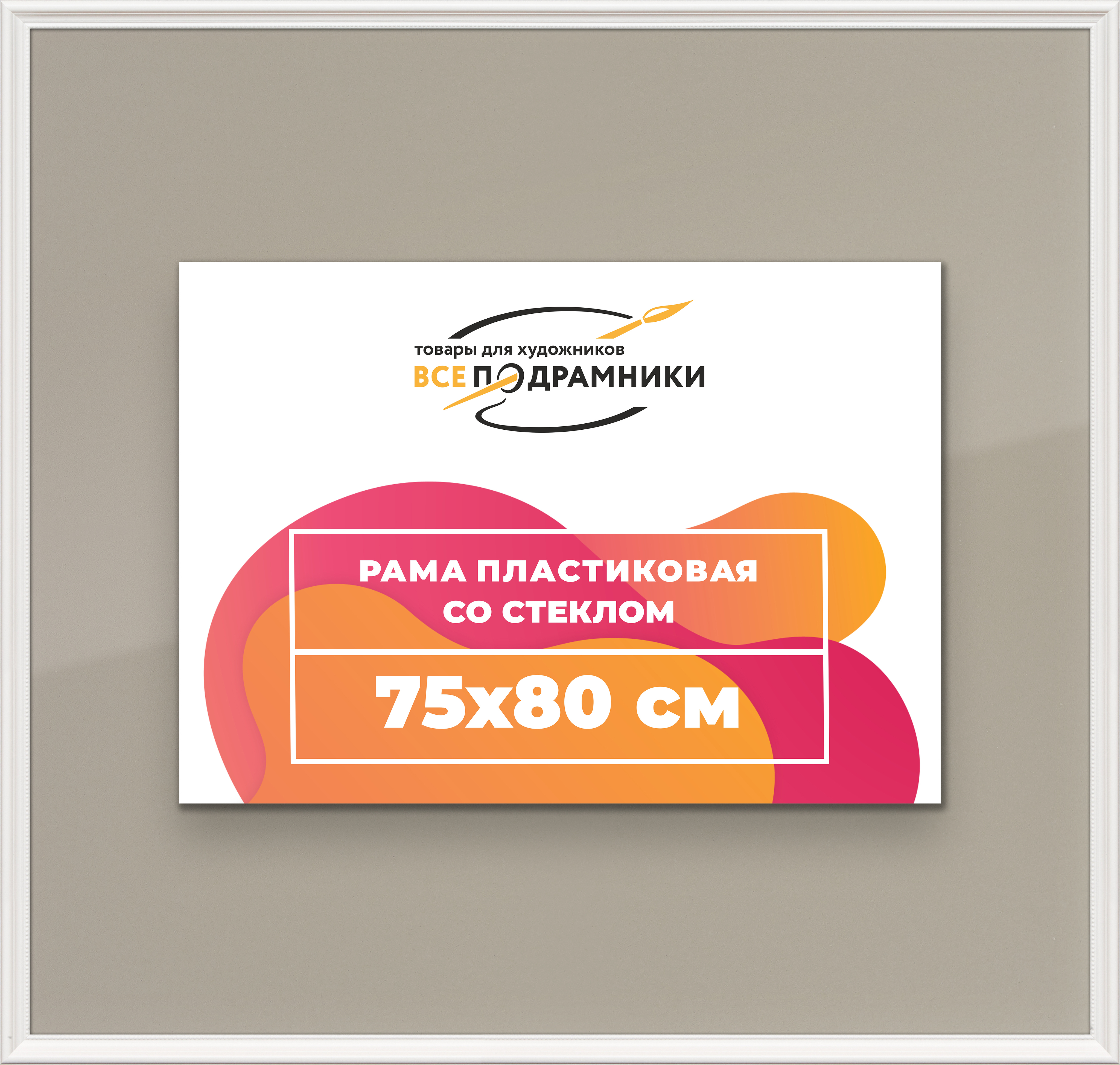 Пластиковая рама 75x80 со стеклом и задником Пластиковая рама со стеклом и задником изготовлена из безопасного и экологически чистого первичного полистирола высшей категории. Производитель: “ВсеПодрамники”. Для удобства установки к стандартному размеру добавлено 4 мм (по 2 мм с каждой стороны), чтобы ваше изделие легко поместилось в раму. 1. Основные характеристики: - Размеры рамки: 75x80 (по размеру помещаемого изображения) - Габариты изделия: 77.8x82.8 см. - Цвет: белый - Профиль: классический - Сечение рамы: 19x20 мм - Ширина четверти: 7 мм - Высота четверти: 10 мм 2. Комплектация: - Стекло 2мм (обычное) - Задник - Подвесная пластина – 2 шт. - Винты - Прижимы для фиксации задника 3. Назначение: - Подходит для оформления: • Картин, включая картины по номерам • Алмазных мозаик и вышивок крестом • Постеров, фотографий, икон • Паспарту, зеркал • Вышивки бисером и алмазной мозаики • Медалей, орденов, спортивных наград • Старинных часов, ключей, монет или украшений - Используется как настенная или настольная фоторамка (нет подставки) 4. Преимущества: - Универсальность: квадратные и прямоугольные форматы, размеры от 10х10 до 100х100 см - Удобство: можно повесить горизонтально или вертикально - Широкий выбор: разные профили, расцветки, с опцией со стеклом или без - Идеальный подарок: для мамы, папы, бабушки, дедушки, друзей, коллег на день рождения, Новый год, 8 марта, 23 февраля, свадьбу, новоселье или любой другой праздник 5. Применение в интерьере: - Украшение дома: подходит для изображений цветов, живописи, портретов, натюрмортов, городских пейзажей, природы - Идеально для алмазной вышивки, мозаики, фотографий или постера 6. Производство: - Страна: Россия, Санкт-Петербург - Качество: высококачественные материалы с вниманием к деталям