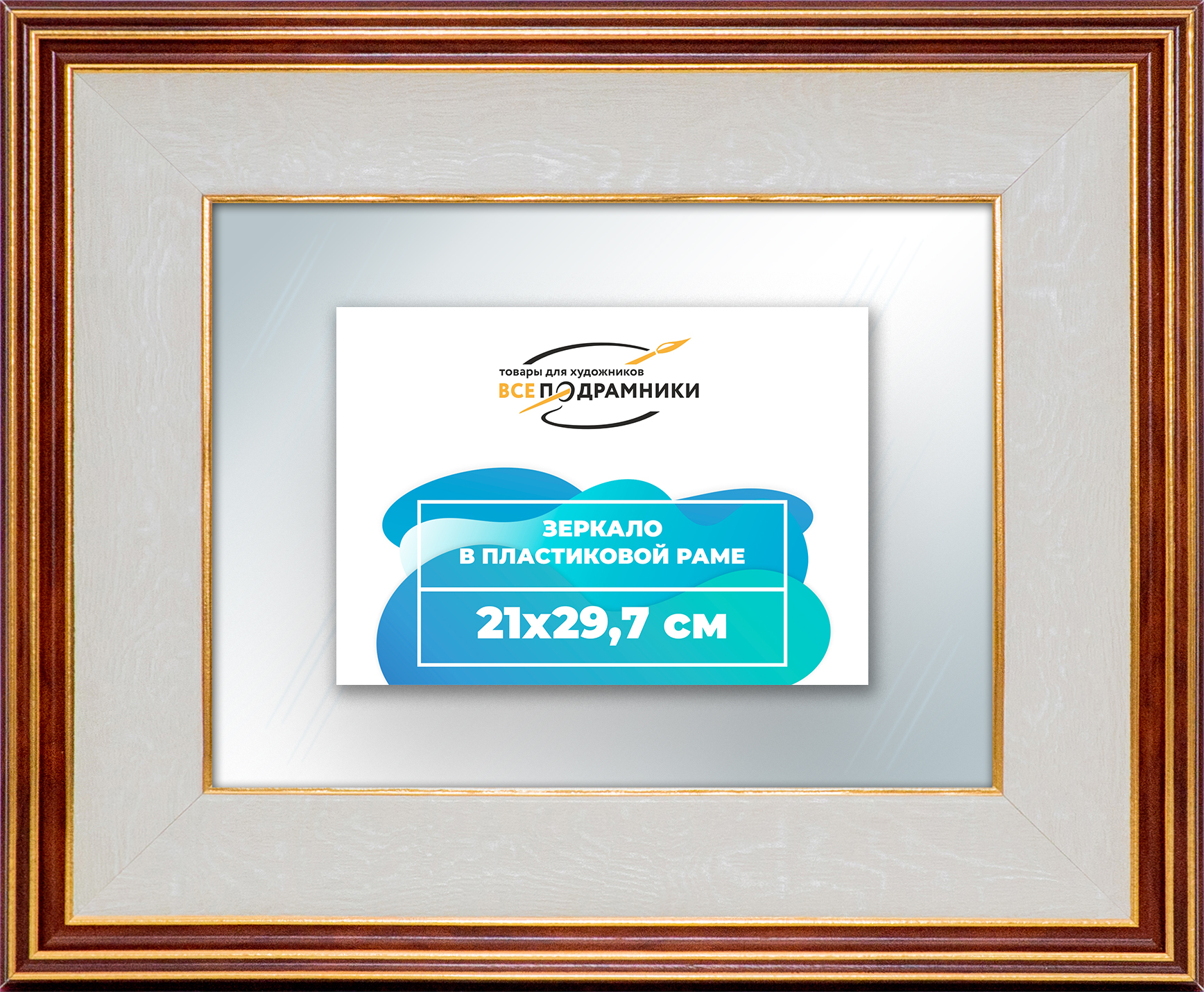 Наше зеркало настенное в раме — идеальный выбор для создания уюта и функциональности. Изготовлено из экологически чистого первичного полистирола высшей категории. Противоосколочная пленка на задней стороне защищает от разлета осколков. Каждое зеркало в раме тщательно очищено — никаких отпечатков, разводов или пыли. Ручная сборка гарантирует качество и внимание к деталям. Подходит для прихожей, ванной, спальни, офиса или как зеркало напольное в полный рост. Технические характеристики * Внешний размер в раме: 21x29.7 см. * Размер зеркального полотна без рамы: 10.4x19.1 см. * Сечение рамы: 53x23 мм. * Цвет рамы: бежевый. * Профиль рамы: классический. * Форма: Прямоугольная. * Толщина зеркала: 4 мм. Комплектация * Зеркало в пластиковой раме. * Подвесная пластина – 2 шт. * Винты и фурнитура для крепления. * Все для быстрой установки в комплекте. Преимущества зеркала * Экологичность и безопасность: Рама из полистирола без вредных веществ + противоосколочная пленка. * Долговечность: Полотно толщиной 4 мм для четкого отражения и прочности. * Универсальность: Прямоугольные и квадратные форматы, множество размеров от 10x10 до 100x200 см. * Удобство: Возможность повесить горизонтально или вертикально. * Широкий выбор: Разные профили и цвета рам. * Идеальный подарок: Для мамы, папы, друзей, коллег на день рождения, Новый год, 8 марта, 23 февраля, свадьбу, новоселье. Где использовать зеркало * Зеркало в прихожую: Для проверки образа перед выходом. * Зеркало для ванной: Устойчиво к влаге. * Зеркало в гостиную или спальню: Декоративный акцент, расширяющий пространство. * Зеркало в офис: Для комфортной и стильной атмосферы. * Зеркало напольное в полный рост: Идеально для примерки одежды. * Зеркало декоративное впишется в любой интерьер — от классики до лофта. Производство * Страна: Россия, Санкт-Петербург. * Качество: Высококачественные материалы, ручная сборка, строгие стандарты. Размеры и варианты Широкий выбор зеркал настенных и напольных: прямоугольные и квадратные, множество размеров от 10x10 до 100x200 см, разные профили и цвета рам. Напишите нам в чат, и мы поможем подобрать зеркало, раму и изготовим любой размер по вашим пожеланиям. Найдите свое идеальное зеркало для интерьера.