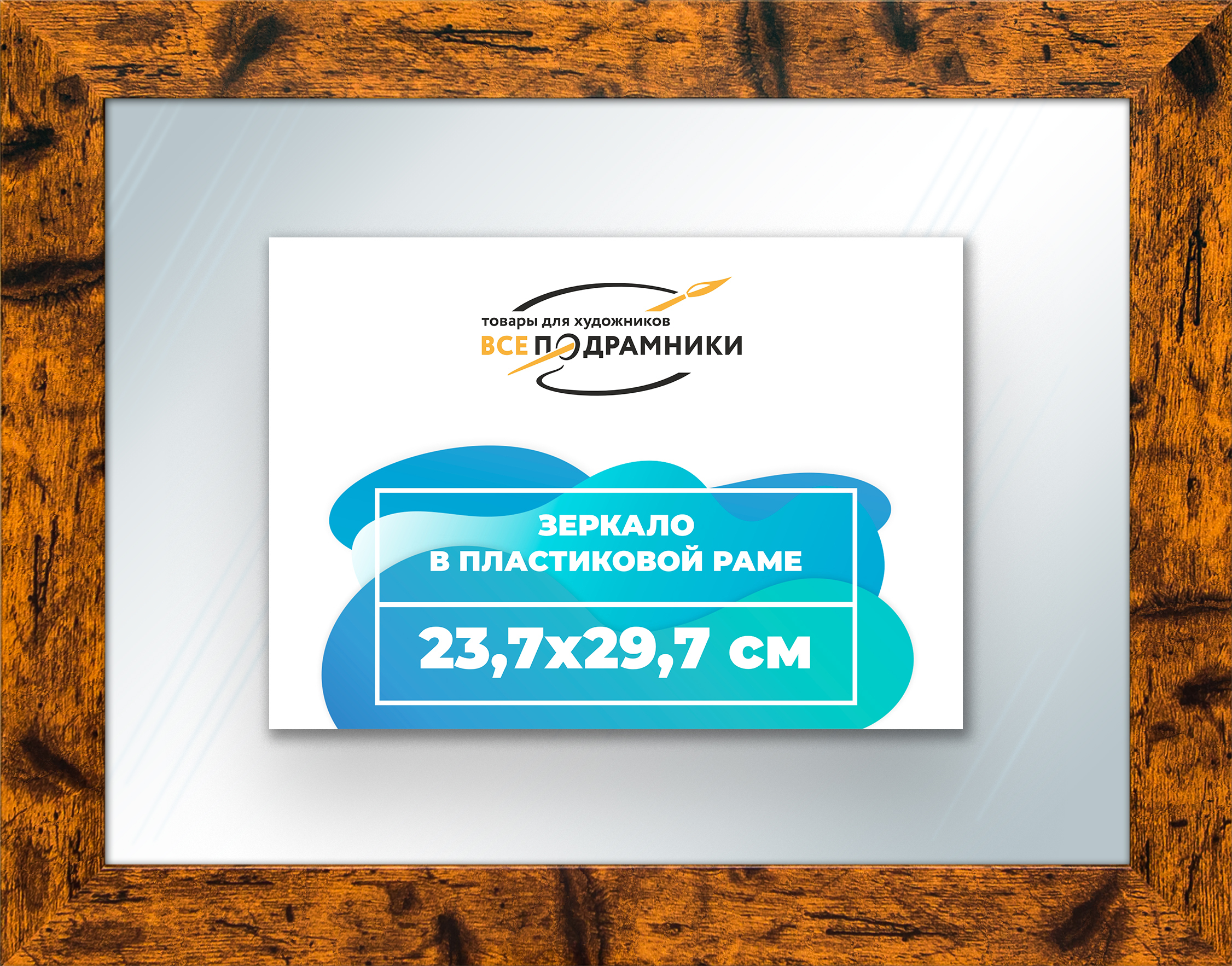Наше зеркало настенное в раме — идеальный выбор для создания уюта и функциональности. Изготовлено из экологически чистого первичного полистирола высшей категории. Противоосколочная пленка на задней стороне защищает от разлета осколков. Каждое зеркало в раме тщательно очищено — никаких отпечатков, разводов или пыли. Ручная сборка гарантирует качество и внимание к деталям. Подходит для прихожей, ванной, спальни, офиса или как зеркало напольное в полный рост. Технические характеристики * Внешний размер в раме: 23.7x29.7 см. * Размер зеркального полотна без рамы: 17.7x23.7 см. * Сечение рамы: 30x16 мм. * Цвет рамы: коричневый. * Профиль рамы: классический. * Форма: Прямоугольная. * Толщина зеркала: 4 мм. Комплектация * Зеркало в пластиковой раме. * Подвесная пластина – 2 шт. * Винты и фурнитура для крепления. * Все для быстрой установки в комплекте. Преимущества зеркала * Экологичность и безопасность: Рама из полистирола без вредных веществ + противоосколочная пленка. * Долговечность: Полотно толщиной 4 мм для четкого отражения и прочности. * Универсальность: Прямоугольные и квадратные форматы, множество размеров от 10x10 до 100x200 см. * Удобство: Возможность повесить горизонтально или вертикально. * Широкий выбор: Разные профили и цвета рам. * Идеальный подарок: Для мамы, папы, друзей, коллег на день рождения, Новый год, 8 марта, 23 февраля, свадьбу, новоселье. Где использовать зеркало * Зеркало в прихожую: Для проверки образа перед выходом. * Зеркало для ванной: Устойчиво к влаге. * Зеркало в гостиную или спальню: Декоративный акцент, расширяющий пространство. * Зеркало в офис: Для комфортной и стильной атмосферы. * Зеркало напольное в полный рост: Идеально для примерки одежды. * Зеркало декоративное впишется в любой интерьер — от классики до лофта. Производство * Страна: Россия, Санкт-Петербург. * Качество: Высококачественные материалы, ручная сборка, строгие стандарты. Размеры и варианты Широкий выбор зеркал настенных и напольных: прямоугольные и квадратные, множество размеров от 10x10 до 100x200 см, разные профили и цвета рам. Напишите нам в чат, и мы поможем подобрать зеркало, раму и изготовим любой размер по вашим пожеланиям. Найдите свое идеальное зеркало для интерьера.