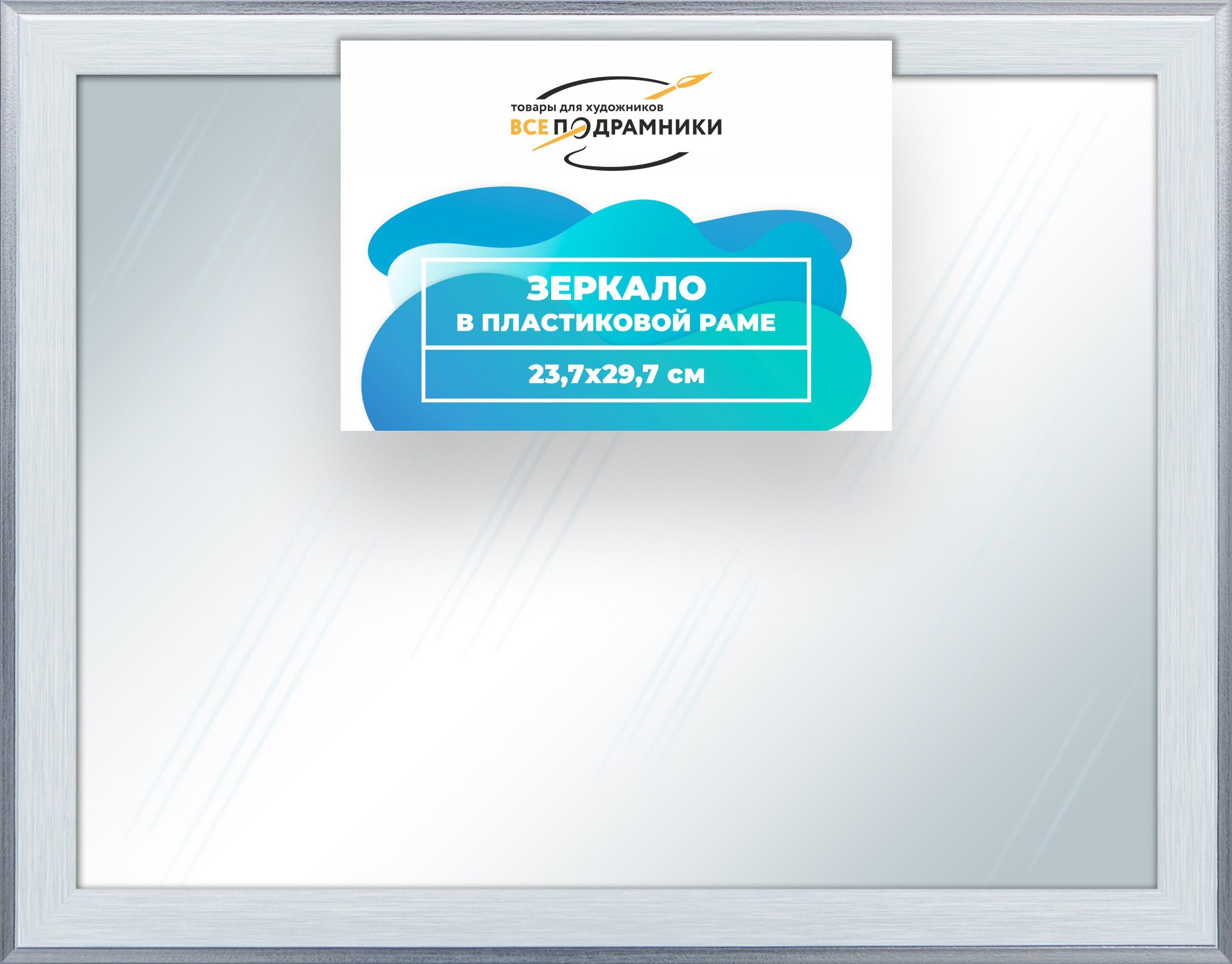 Наше зеркало настенное в раме — идеальный выбор для создания уюта и функциональности. Изготовлено из экологически чистого первичного полистирола высшей категории. Противоосколочная пленка на задней стороне защищает от разлета осколков. Каждое зеркало в раме тщательно очищено — никаких отпечатков, разводов или пыли. Ручная сборка гарантирует качество и внимание к деталям. Подходит для прихожей, ванной, спальни, офиса или как зеркало напольное в полный рост. Технические характеристики * Внешний размер в раме: 23.7x29.7 см. * Размер зеркального полотна без рамы: 16.7x22.7 см. * Сечение рамы: 35x15 мм. * Цвет рамы: серый. * Профиль рамы: классический. * Форма: Прямоугольная. * Толщина зеркала: 4 мм. Комплектация * Зеркало в пластиковой раме. * Подвесная пластина – 2 шт. * Винты и фурнитура для крепления. * Все для быстрой установки в комплекте. Преимущества зеркала * Экологичность и безопасность: Рама из полистирола без вредных веществ + противоосколочная пленка. * Долговечность: Полотно толщиной 4 мм для четкого отражения и прочности. * Универсальность: Прямоугольные и квадратные форматы, множество размеров от 10x10 до 100x200 см. * Удобство: Возможность повесить горизонтально или вертикально. * Широкий выбор: Разные профили и цвета рам. * Идеальный подарок: Для мамы, папы, друзей, коллег на день рождения, Новый год, 8 марта, 23 февраля, свадьбу, новоселье. Где использовать зеркало * Зеркало в прихожую: Для проверки образа перед выходом. * Зеркало для ванной: Устойчиво к влаге. * Зеркало в гостиную или спальню: Декоративный акцент, расширяющий пространство. * Зеркало в офис: Для комфортной и стильной атмосферы. * Зеркало напольное в полный рост: Идеально для примерки одежды. * Зеркало декоративное впишется в любой интерьер — от классики до лофта. Производство * Страна: Россия, Санкт-Петербург. * Качество: Высококачественные материалы, ручная сборка, строгие стандарты. Размеры и варианты Широкий выбор зеркал настенных и напольных: прямоугольные и квадратные, множество размеров от 10x10 до 100x200 см, разные профили и цвета рам. Напишите нам в чат, и мы поможем подобрать зеркало, раму и изготовим любой размер по вашим пожеланиям. Найдите свое идеальное зеркало для интерьера.