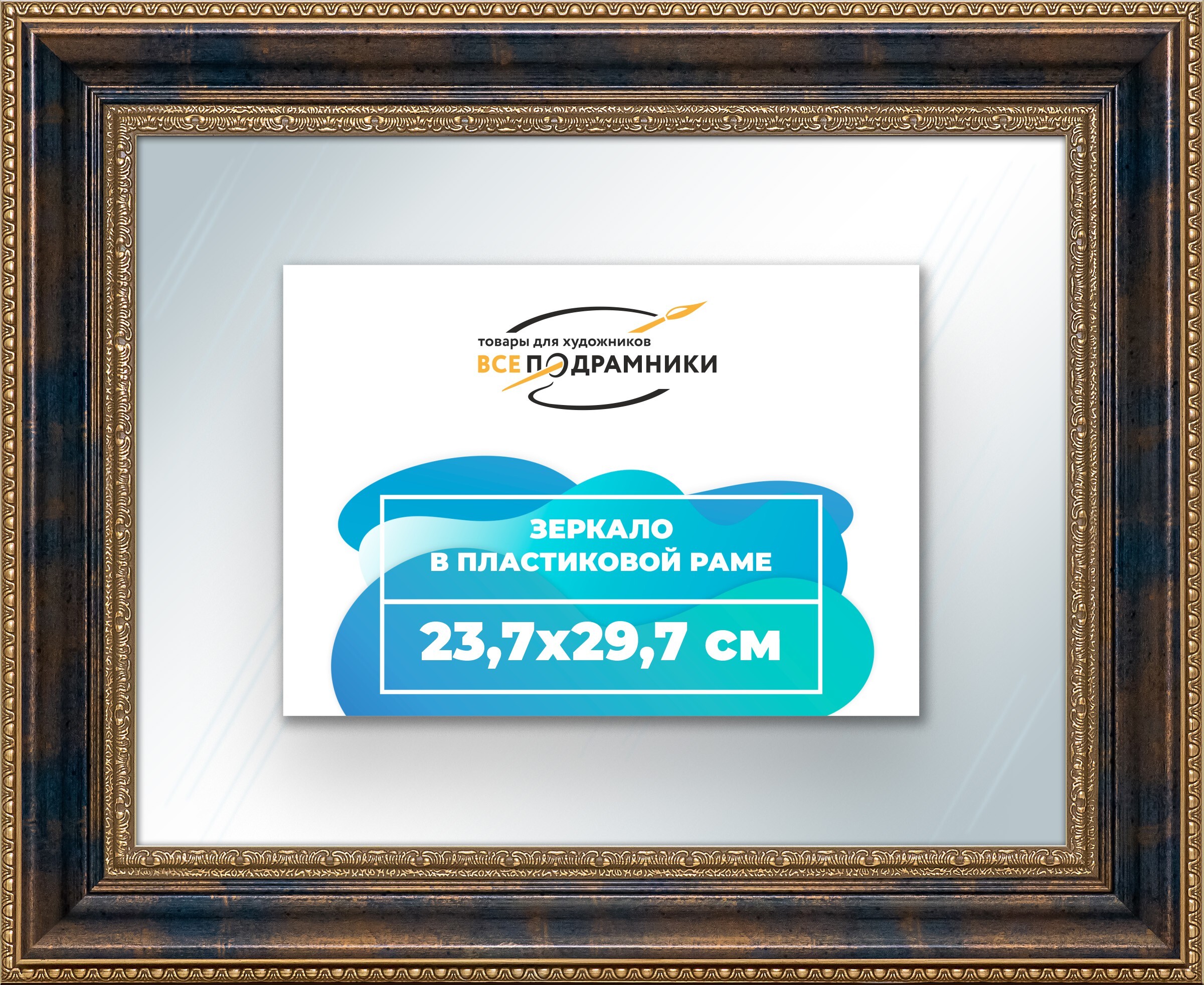 Наше зеркало настенное в раме — идеальный выбор для создания уюта и функциональности. Изготовлено из экологически чистого первичного полистирола высшей категории. Противоосколочная пленка на задней стороне защищает от разлета осколков. Каждое зеркало в раме тщательно очищено — никаких отпечатков, разводов или пыли. Ручная сборка гарантирует качество и внимание к деталям. Подходит для прихожей, ванной, спальни, офиса или как зеркало напольное в полный рост. Технические характеристики * Внешний размер в раме: 23.7x29.7 см. * Размер зеркального полотна без рамы: 12.3x18.3 см. * Сечение рамы: 57x26 мм. * Цвет рамы: синий. * Профиль рамы: классический. * Форма: Прямоугольная. * Толщина зеркала: 4 мм. Комплектация * Зеркало в пластиковой раме. * Подвесная пластина – 2 шт. * Винты и фурнитура для крепления. * Все для быстрой установки в комплекте. Преимущества зеркала * Экологичность и безопасность: Рама из полистирола без вредных веществ + противоосколочная пленка. * Долговечность: Полотно толщиной 4 мм для четкого отражения и прочности. * Универсальность: Прямоугольные и квадратные форматы, множество размеров от 10x10 до 100x200 см. * Удобство: Возможность повесить горизонтально или вертикально. * Широкий выбор: Разные профили и цвета рам. * Идеальный подарок: Для мамы, папы, друзей, коллег на день рождения, Новый год, 8 марта, 23 февраля, свадьбу, новоселье. Где использовать зеркало * Зеркало в прихожую: Для проверки образа перед выходом. * Зеркало для ванной: Устойчиво к влаге. * Зеркало в гостиную или спальню: Декоративный акцент, расширяющий пространство. * Зеркало в офис: Для комфортной и стильной атмосферы. * Зеркало напольное в полный рост: Идеально для примерки одежды. * Зеркало декоративное впишется в любой интерьер — от классики до лофта. Производство * Страна: Россия, Санкт-Петербург. * Качество: Высококачественные материалы, ручная сборка, строгие стандарты. Размеры и варианты Широкий выбор зеркал настенных и напольных: прямоугольные и квадратные, множество размеров от 10x10 до 100x200 см, разные профили и цвета рам. Напишите нам в чат, и мы поможем подобрать зеркало, раму и изготовим любой размер по вашим пожеланиям. Найдите свое идеальное зеркало для интерьера.